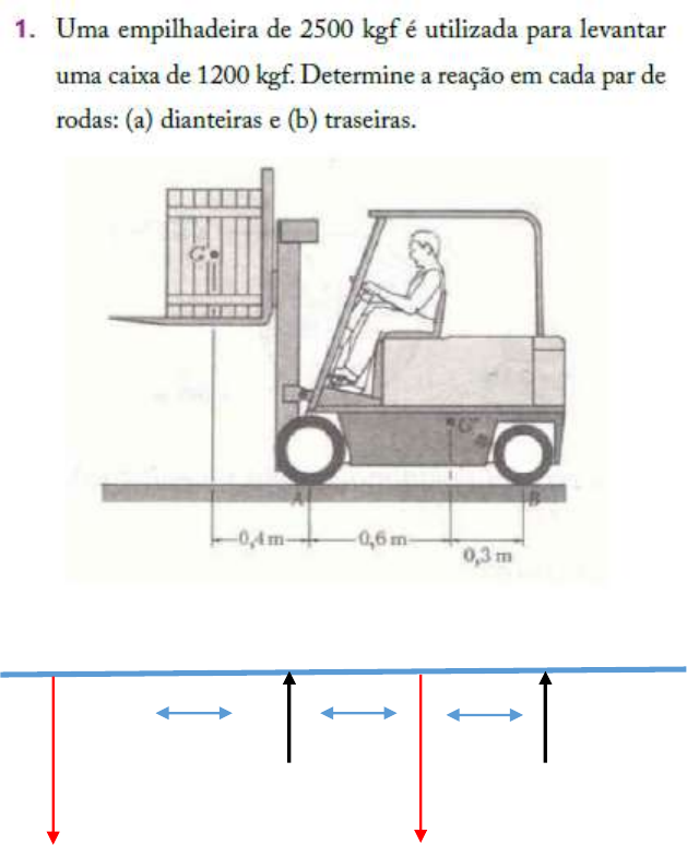 <p>GABARITO EXERCÍCIOS PÁGINA 40 EBOOK</p><p>Pelo diagrama de corpo livre podemos entender da seguinte maneira:</p><p>Pela massa da caixa, conseguimos determinar Pcx = 1200.9,81 = 11772N</p><p>Pela massa da empilhadeira, conseguimos determinar Pg = 2500.9,81 = 24525N</p><p>Calculando os momentos no ponto B entendendo que Soma(MB) = 0, temos:</p><p>11772.1,3 – RA.0,9 + 24525.0,3 = 0 --- RA = 25179N</p><p>Seguindo o mesmo procedimento para o ponto A entendendo que Soma (MA) = 0 temos:</p><p>11772.0,4 – 24525.0,6 - RB.0,9 = 0 --- RB = 11118N</p><p>Pcx Pg</p><p>RA RB</p><p>d1 d2 d3</p><p>A distância horizontal “d” entre a massa G e o ponto B pode ser entendida</p><p>por:</p><p>d = 550.cos60° - 250.sen60° --- d = 58,49</p><p>Entendendo que Soma(MB) = 0, temos:</p><p>900.58,49 – P.450 = 0 --- P = 116,98N</p><p>Entendendo que Soma(Fy) = 0, temos:</p><p>2.B + 116,98 – 900 = 0 --- B = 391,51N</p><p>550</p><p>450 250</p><p>900N</p><p>d</p><p>60°</p><p>P</p><p>B</p><p>Entendendo que Soma(MK) = 0, temos:</p><p>20.5,4 + 2.3,4 – 2.H.2,5+ 45.0,5 = 0 ---</p><p>H = 27,46kN</p><p>Entendendo que Soma(MH) = 0, temos:</p><p>20.2,9 + 2.0,9 - 45.2 + 2.K.2,5+ = 0 ---</p><p>K = 6,04kN</p><p>Entendendo que Soma(MB) = 0, temos:</p><p>20.2,6 + 2.0,6 – 20.0,4 - RC.0,7 = 0 ---</p><p>RC = 64,6kN</p><p>Entendendo que Soma(Fy) = 0, temos:</p><p>RB – 20 - 2 - 20 - 64,57 = 0 ---</p><p>RB = 106,6kN</p><p>P</p><p>RH RK</p><p>d2 d3 d4</p><p>Pg</p><p>d1</p><p>d5 d6 d7</p><p>PT</p><p>RB</p><p>RE RC</p><p>Para o caso (a):</p><p>Entendendo que Soma(MA) = 0, temos: RB.2 - 2.3 - 2.1,5 = 0 --- RB = 4,5kN</p><p>Entendendo que Soma(Fy) = 0, temos: RAy + 2 + 2 = 0 --- RAy = -4kN</p><p>Entendendo que Soma(Fx) = 0, temos: RAx - 6 + 4,5 = 0 --- RAx = 1,5kN</p><p>Calculando RA por Pitágoras, temos: RA = RAIZ(-4² + 1,5²) --- RA = 4,27kN --- tan(a) = 1,5/4 --- a = 20,56°</p><p>Para o caso (b):</p><p>Entendendo que Soma(MB) = 0, temos: - RA.2 + 6.2 - 2.3 - 2.1,5 = 0 --- RA = 1,5kN</p><p>Entendendo que Soma(Fx) = 0, temos: RBx + 2 + 2 = 0 --- RBy = -4kN</p><p>Entendendo que Soma(Fy) = 0, temos: RBy - 6 + 1,5 = 0 --- RAx = 4,5kN</p><p>Calculando RA por Pitágoras, temos: RB = RAIZ(-4² + 4,5²) --- RB = 6,02kN --- tan(a) = 4,5/4 --- b = 48,37°</p><p>Entendendo que Soma(MC) = 0, temos:</p><p>3000.7,2.cos45° + 1250.3. cos45° - 25000.2,1 + 2.RD.3,6 = 0 --- RD = 4802,1N</p><p>Entendendo que Soma(Fy) = 0, temos:</p><p>2.C + 2.4802,1 – 3000 – 1250 - 25000 = 0 --- RC = 9822,9N</p><p>Pcx</p><p>RC RD</p><p>Pt d2 d1</p><p>Pg</p><p>a</p><p>d3</p><p>d4</p><p>Para ângulo a = 0</p><p>Entendendo que Soma(MA) = 0, temos: RB.0,3 - 250.0,15 = 0 --- RB = 125N</p><p>Entendendo que Soma(Fx) = 0, temos: RAx = 0</p><p>Entendendo que Soma(Fy) = 0, temos: Ray – 250 + 125 = 0 --- RAy = 125N</p><p>Para ângulo a = 90</p><p>Entendendo que Soma(MA) = 0, temos: RB.0,2 - 250.0,15 = 0 --- RB = 187,5N</p><p>Entendendo que Soma(Fx) = 0, temos: - Rax + 187,5 = 0 --- RAy = 187,5N</p><p>Entendendo que Soma(Fy) = 0, temos: RAy = 0</p><p>Para ângulo a = 30</p><p>Entendendo que Soma(MA) = 0, temos: RB.sen30°0,2 + RB.cos30°0,3 - 250.0,15 = 0 --- RB = 104,22N</p><p>Entendendo que Soma(Fx) = 0, temos: - Rax + 104,22.sen30° = 0 --- RAy = 52,11N</p><p>Entendendo que Soma(Fy) = 0, temos: - Ray + 104,22.cos30° - 250 = 0 --- RAy = 159,74N</p><p>Calculando RA por Pitágoras, temos: RA = RAIZ(52,11² + 159,74²) --- RA = 168,02N</p>