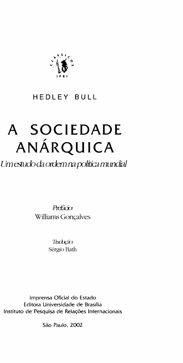 <p>I P R I</p><p>HEOLEY BULL</p><p>A SOCIEDADE</p><p>~</p><p>ANARQUICA</p><p>Um estudoda oJdemna[XJiítica tmuxlal</p><p>PIefJcio:</p><p>Williams Gonçalves</p><p>Tmduçlo:</p><p>Sérgio Bath</p><p>Imprensa Oficial do Estado</p><p>Editora Universidade de Brasilla</p><p>Instituto de Pesquisa de Relações Internacionais</p><p>São Paulo, 2002</p><p>Copyright © The Estate of Hedley Buli</p><p>Título Original: 771e Arxuchics:Soôety</p><p>Publicado originalmente em 1977</p><p>Tradução de Sérgio Bath</p><p>Direitos © desta edição:</p><p>Editora Universidade de Brasília</p><p>SCS Q. 02 bloco C n". 78, 2". andar</p><p>70300-S00 Brasília, DF</p><p>A presente edicào foi feita em forma cooperativa da Editora Universidade de Brasília com o</p><p>Instituto de Pesquisa de Relações Internacionais OPRI/FUNAG) e a Imprensa Oficial do Es</p><p>tado de Sâo Paulo. Todos os direitos reservados conforme a lei. Nenhuma parte' desta publica</p><p>(;ào poderá ser armazenada ou reproduzida por qualquer meio sem autorizacào por escrito da</p><p>Editora I lniversidade de Brasília.</p><p>Equi[x:témiGt</p><p>EIITI Sxro (Planejamento editorial)</p><p>ISABELA SOAIH:S (Assistente)</p><p>AIHTON LlrCARINIIO (Revisão)</p><p>Fotolitos, impressão e acabamento:</p><p>IMPRENSA OFICIAL DO ESTADO DE SÃO PAULO</p><p>Dados Internacionais de Catalogação na Publicação (CIP)</p><p>(Câmara Brasileira do Livro, SP, Brasil)</p><p>Buli, Heddley</p><p>A sociedade anárquica / Heddley Buli: Prefácio de</p><p>WiJliams Gonçalves: Trad. Sérgio Bath ( la. ediçao) Brasília:</p><p>Editora 1Iniversidade de Brasília, Instituto de Pesquisa de Relaçôt:s</p><p>Internacionais: São Paulo: Imprensa Oficial do Estado de São Paulo, 2002</p><p>XXVIII. 361 p .. 23 em - (Clássicos IPRI, '))</p><p>ISBN: H')-230-063')-4 (Editora da UnB)</p><p>ISBN: H').7060.0H9-') (Imprensa Oficial do Estado)</p><p>I - Relações Internacionais; I. título lI. série.</p><p>CDLJ - 327</p><p>Índices para catálogo sistemático:</p><p>SUMÁRIO</p><p>PRI'~h\C10 AEDI(~ÀO BRi\SILEIRA Xl</p><p>PRI·yACI() D() AUT()R XXVII</p><p>INTR(H)ll(À() 1</p><p>CAPíTULO I: () conceito de ordem na política mundial............ 7</p><p>C;\PíTlTL() lI: Há uma ordem na política mundial? 31</p><p>Cxi-mlLO III: Como a ordem é mantida na política mundial? ..... 65</p><p>C,\PíTllJ.() IV: Ordem iersss justiça na política internacional......... 91</p><p>C;\píTI1LO V: () equilíbrio de poder e a ordem internacional........ 117</p><p>C;\PÍTI1LO VI: O direito internacional e a ordem internacional .... 147</p><p>CAPÍTULO VII: A diplomacia e a ordem internacional.............. 187</p><p>CAPíTLIJ,O VIII: A guerra e a ordem internacional.................... 211</p><p>C;\pín1J.() IX: As grandes potências e a ordem internacional ...... 229</p><p>CAPíTUL<) X: Alternativas para o sistema de</p><p>estados contemporâneo 263</p><p>C;\PÍTULO XI: O sistema de estados estará em declínio? 289</p><p>Ci\PÍTllU) XII: () sistema de estados estará obsoleto? 317</p><p>CAPÍTULO XIII: Como reformar o sistema de estados? 333</p><p>C()N(:I>US()I':S 357</p><p>ÍNl)IC]': RI'::\flSSIV() 359</p><p>C 1\ P í T l' L () I I I</p><p>COMO A ORDEM É MANTIDA</p><p>NA POLÍTICA MUNDIAL?</p><p>EXPLlC;\:'.IOS o que se entende por ordem na política mundial e mos</p><p>tramos que, em certa medida, ela existe no moderno sistema de esta</p><p>dos. A questão para a qual nos voltamos agora é: de que forma é</p><p>mantida essa ordem?</p><p>Tem-se argurncnrado que em todas as sociedades a ordem é</p><p>uma forma de conduta que sustenta os objetivos primários ou elemen</p><p>tares da vida social. Neste sentido a ordem é mantida por um senso de</p><p>interesses comuns nesses objetivos elementares ou primários, por re</p><p>gras que prescrevem a forma de conduta que os sustentam e por insti</p><p>tuiçôes que tornam essas regras efetivas.</p><p>Em qualquer sociedade a manutenção da ordem pressupõe que</p><p>haja entre os seus membros (ou pelo menos entre os seus membros</p><p>politicamente ativos) uma percepção de interesses comuns nos objeti</p><p>vos elementares da vida social. Assim, a vulnerabilidade humana à vio</p><p>lência e a inclinação a recorrer a acôes violentas levam os homens à</p><p>noção de que há um interesse comum na limitação da violência. i\</p><p>interdependência entre os homens no que se refere às necessidades</p><p>materiais leva-os a perceber que há um interesse comum em garantir</p><p>que os acordos sejam respeitados. /\ abundância limitada e as limitações</p><p>do altruísmo levam-nos a reconhecer que há interesse comum em tornar</p><p>a posse estável. Este senso de interesses comuns pode ser conseqüência</p><p>do medo, e pode derivar de um cálculo racional de que as limitações</p><p>necessárias para sustentar os objetivos elementares da vida social preci</p><p>66 HI':DLI':Y BULl.</p><p>sam ser recíprocas. Em alguns casos, pode expressar a capacidade dos</p><p>indivíduos ou grupos interessados em identificar-se mutuamente, para</p><p>tratar os seus interesses recíprocos como fins em si mesmos, e não ape</p><p>nas como meios para um fim; em outras palavras, pode expressar um</p><p>sentimento de valores comuns, em lugar de interesses comuns.</p><p>Este sentimento de que há interesses comuns na realização dos</p><p>objetivos elementares da vida social pode ser vago e, em si mesmo, não</p><p>proporciona uma orientação precisa sobre o tipo de conduta consisten</p><p>te com tais objetivos e quais os comportamentos que não são coerentes</p><p>com a meta visada. São as regras que contribuem para esse tipo de o</p><p>rientação. Regras são princípios gerais imperativos que autorizam ou</p><p>obrigam determinadas classes de pessoas ou de grupos a se comporta</p><p>rem de um modo prescrito. Em qualquer sociedade a ordem é mantida</p><p>não só pelo senso de interesses comuns de criar ordem ou em evitar a</p><p>desordem