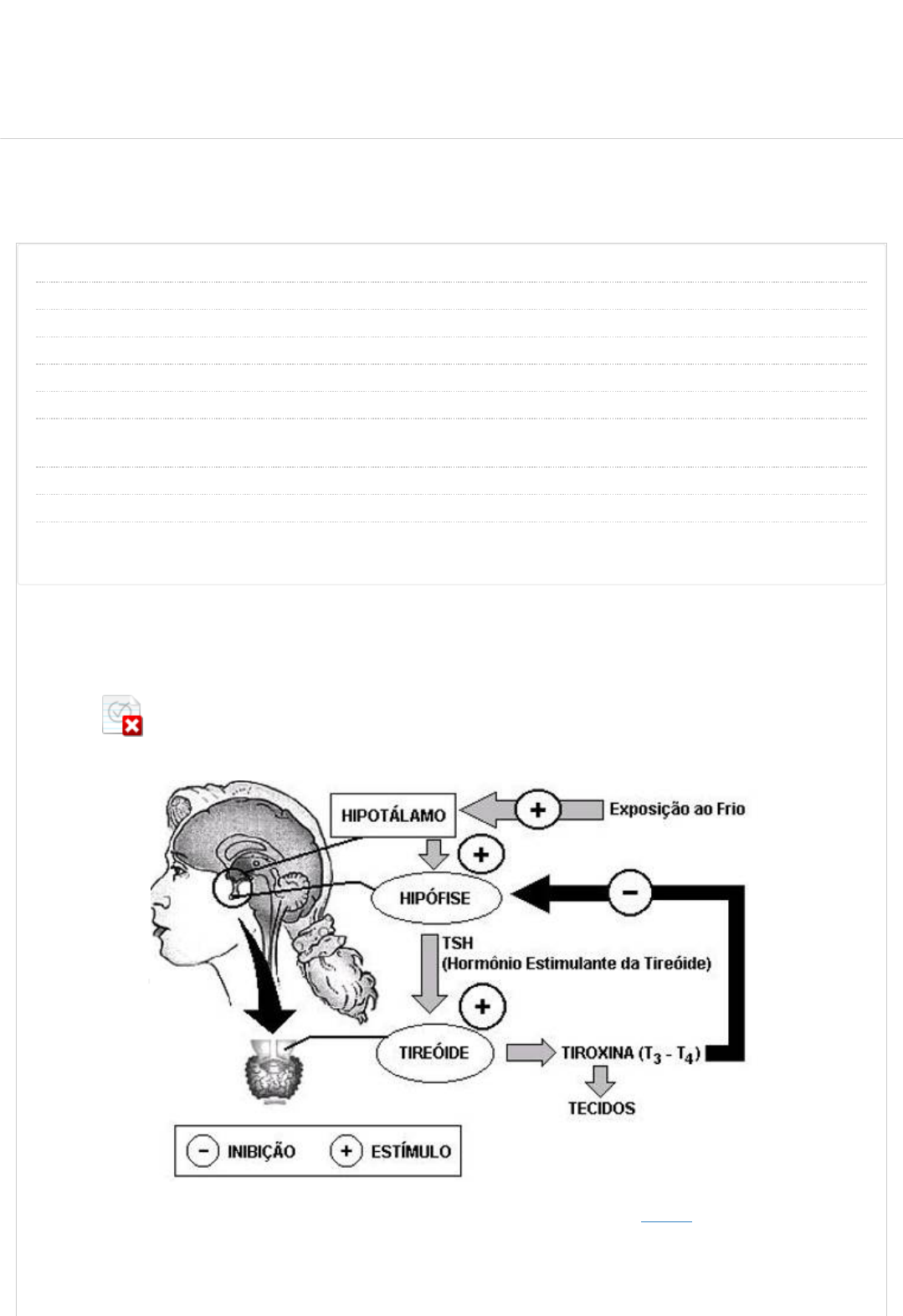 <p>Revisar envio do teste: ATIVIDADE TELEAULA III</p><p>FISIOLOGIA DO SISTEMA REGULADOR 7476-60_44701_R_F1_20241 CONTEÚDO</p><p>Usuário agnes.federigh @aluno.unip.br</p><p>Curso FISIOLOGIA DO SISTEMA REGULADOR</p><p>Teste ATIVIDADE TELEAULA III</p><p>Iniciado 09/05/24 11:57</p><p>Enviado 09/05/24 11:59</p><p>Status Completada</p><p>Resultado da</p><p>tentativa</p><p>0 em 0 pontos</p><p>Tempo decorrido 2 minutos</p><p>Autoteste O aluno responde e o resultado do aluno não é visível ao professor.</p><p>Resultados exibidos Todas as respostas, Respostas enviadas, Respostas corretas, Comentários, Perguntas</p><p>respondidas incorretamente</p><p>Pergunta 1</p><p>O sistema endócrino, assim como o nervoso, ajusta e integra as atividades dos vários</p><p>sistemas corporais, de acordo com os ambientes externo e interno. O esquema a seguir</p><p>representa um processo de regulação endócrina por fatores internos e externos ao</p><p>organismo.</p><p>De acordo com o esquema e seus conhecimentos, é correto a�rmar, exceto:</p><p>UNIP EAD BIBLIOTECAS MURAL DO ALUNO TUTORIAISCONTEÚDOS ACADÊMICOS</p><p>0 em 0 pontos</p><p>29/05/2024, 13:05 Revisar envio do teste: ATIVIDADE TELEAULA III – ...</p><p>https://ava.ead.unip.br/webapps/assessment/review/review.jsp?attempt_id=_104705956_1&course_id=_330073_1&content_id=_3789777_1&out… 1/4</p><p>http://company.blackboard.com/</p><p>https://ava.ead.unip.br/webapps/blackboard/execute/courseMain?course_id=_330073_1</p><p>https://ava.ead.unip.br/webapps/blackboard/content/listContent.jsp?course_id=_330073_1&content_id=_3787739_1&mode=reset</p><p>https://ava.ead.unip.br/webapps/portal/execute/tabs/tabAction?tab_tab_group_id=_10_1</p><p>https://ava.ead.unip.br/webapps/portal/execute/tabs/tabAction?tab_tab_group_id=_27_1</p><p>https://ava.ead.unip.br/webapps/portal/execute/tabs/tabAction?tab_tab_group_id=_47_1</p><p>https://ava.ead.unip.br/webapps/portal/execute/tabs/tabAction?tab_tab_group_id=_29_1</p><p>https://ava.ead.unip.br/webapps/portal/execute/tabs/tabAction?tab_tab_group_id=_25_1</p><p>https://ava.ead.unip.br/webapps/login/?action=logout</p><p>Resposta</p><p>Selecionada:</p><p>a.</p><p>Respostas: a.</p><p>b.</p><p>c.</p><p>d.</p><p>e.</p><p>O estímulo e a inibição da glândula hipó�se atuam coordenadamente</p><p>opondo-se a grandes variações na concentração plasmática de tiroxina</p><p>em indivíduos normais.</p><p>O estímulo e a inibição da glândula hipó�se atuam coordenadamente</p><p>opondo-se a grandes variações na concentração plasmática de tiroxina</p><p>em indivíduos normais.</p><p>Tiroxina pode atuar como hormônio que contribui para nos adaptarmos</p><p>ao frio.</p><p>A redução nos níveis de TSH é sempre indicador de hipotireoidismo,</p><p>enquanto o aumento de tiroxina indica hipertireoidismo.</p><p>A carência nutricional de iodo pode determinar a redução na produção</p><p>de tiroxina e o aumento de volume da tireoide.</p><p>O T3 é formado em menor quantidade e exerce quase os mesmos</p><p>efeitos que o T4, porém sua ação é várias vezes mais rápida.</p><p>Pergunta 2</p><p>Resposta</p><p>Selecionada:</p><p>a.</p><p>Respostas: a.</p><p>b.</p><p>c.</p><p>d.</p><p>e.</p><p>Uma pessoa apresenta o seguinte quadro de sintomas: eliminação de grande volume de</p><p>urina, sede e desidratação. Exames clínicos revelaram alteração hormonal, tratando-se de:</p><p>Aumento do hormônio aldosterona, produzido pela adrenal, que levou</p><p>a um aumento na reabsorção de água pelos rins.</p><p>Aumento do hormônio aldosterona, produzido pela adrenal, que levou</p><p>a um aumento na reabsorção de água pelos rins.</p><p>Diminuição do hormônio aldosterona, produzido pela hipó�se, que</p><p>levou a um aumento na reabsorção de água pelos rins.</p><p>Aumento do hormônio antidiurético, produzido pela adrenal, que</p><p>levou a uma diminuição na reabsorção de água pelos rins.</p><p>Diminuição do hormônio antidiurético, produzido pela hipó�se, que</p><p>levou a uma diminuição na reabsorção de água pelos rins.</p><p>Aumento do hormônio antidiurético, produzido pela hipó�se, que</p><p>levou a uma diminuição na reabsorção de água pelos rins.</p><p>0 em 0 pontos</p><p>29/05/2024, 13:05 Revisar envio do teste: ATIVIDADE TELEAULA III – ...</p><p>https://ava.ead.unip.br/webapps/assessment/review/review.jsp?attempt_id=_104705956_1&course_id=_330073_1&content_id=_3789777_1&out… 2/4</p><p>Pergunta 3</p><p>Resposta</p><p>Selecionada:</p><p>a.</p><p>Respostas: a.</p><p>b.</p><p>c.</p><p>d.</p><p>e.</p><p>Sabemos que no ciclo ovulatório da mulher há uma interação entre hormônios da hipó�se</p><p>e hormônios do próprio folículo ovariano. A hipó�se inicialmente produz o hormônio A que</p><p>estimula a produção do hormônio B pelo folículo. Após a ovulação, forma-se o corpo lúteo</p><p>por estímulo do hormônio C da hipó�se. O corpo lúteo secreta, então, o hormônio D.</p><p>Os hormônios A, B, C e D são, respectivamente:</p><p>Progesterona – hormônio folículo estimulante – hormônio</p><p>luteinizante – estrógeno.</p><p>Progesterona – hormônio folículo estimulante – hormônio</p><p>luteinizante – estrógeno.</p><p>Hormônio folículo estimulante – progesterona – estrógeno –</p><p>hormônio luteinizante.</p><p>Hormônio folículo estimulante – estrógeno – hormônio luteinizante –</p><p>progesterona.</p><p>Estrógeno – progesterona – hormônio folículo estimulante –</p><p>hormônio luteinizante.</p><p>Hormônio folículo estimulante – estrógeno – progesterona –</p><p>hormônio luteinizante.</p><p>Pergunta 4</p><p>Resposta</p><p>Selecionada:</p><p>c.</p><p>Respostas: a.</p><p>b.</p><p>c.</p><p>Os hormônios são mensageiros químicos produzidos por glândulas endócrinas ou células</p><p>isoladas, liberados para a corrente sanguínea, atuando sobre órgãos a distância,</p><p>estimulando ou inibindo as funções 