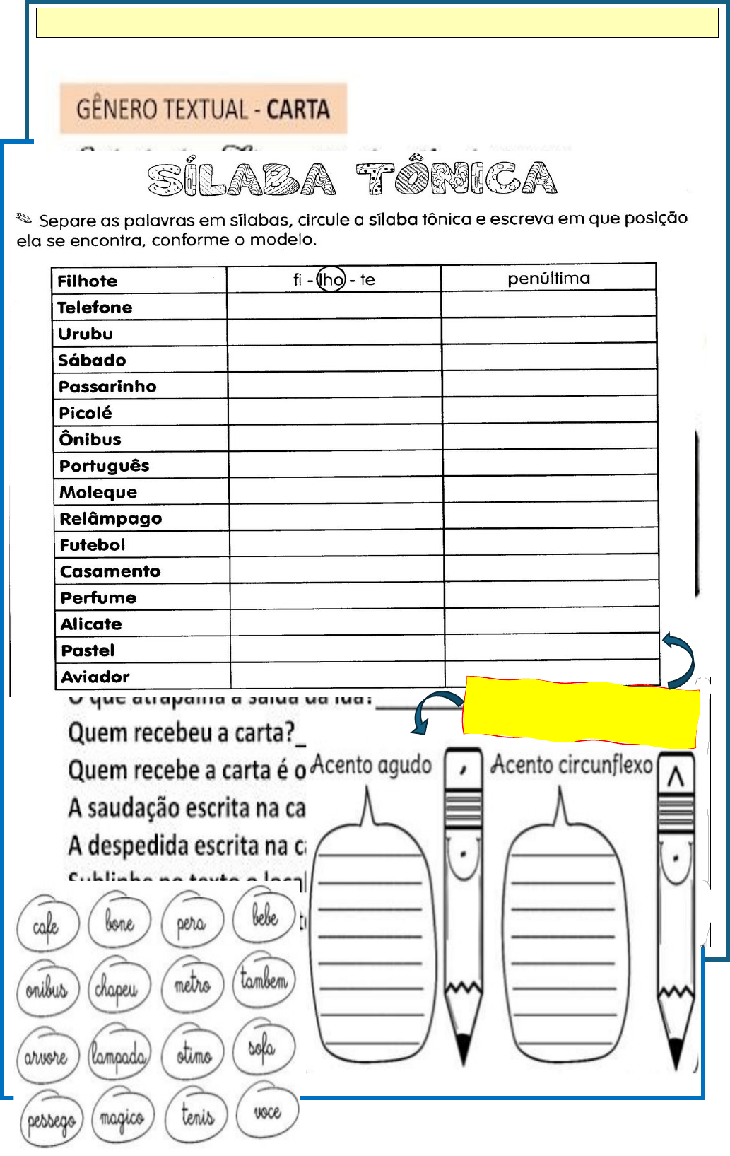 <p>ESTUDAR PARA A PROVA</p><p>ATIVIDADES DE REVISÃO PARA A AVALIAÇÃO – LÍNGUA PORTUGUESA – 3° BIMESTRE</p><p>ESTUDE AS PALAVRAS DESSES EXERCÍCIOS PARA O DITADO</p><p>- Acentue as palavras e separe de acordo com o acento:</p><p>ATIVIDADES DE REVISÃO PARA A AVALIAÇÃO – MATEMÁTICA – 2° BIMESTRE</p><p>1 – Complete as sequências:</p><p>0</p><p>4</p><p>16</p><p>32</p><p>6</p><p>24</p><p>30</p><p>8</p><p>24</p><p>40</p><p>48</p><p>45</p><p>54</p><p>63</p><p>- Decomposição e composição dos números:</p><p>DECOMPOSIÇÃO</p><p>COMPOSIÇÃO</p><p>POR EXTENSO</p><p>20 + 8</p><p>28</p><p>VINTE E OITO</p><p>56</p><p>184</p><p>249</p><p>367</p><p>408</p><p>523</p><p>671</p><p>700 + 30</p><p>800 + 10 + 2</p><p>900 + 90 + 9</p><p>900 + 53</p><p>900 + 6</p><p>- Quantos litros tem em cada caso:</p><p>image20.wmf</p><p>image3.jpeg</p><p>image4.png</p><p>image5.png</p><p>image6.jpeg</p><p>image7.jpeg</p><p>image8.png</p><p>image9.png</p><p>image1.png</p><p>image2.png</p><p>image1.jpeg</p><p>image2.wmf</p>