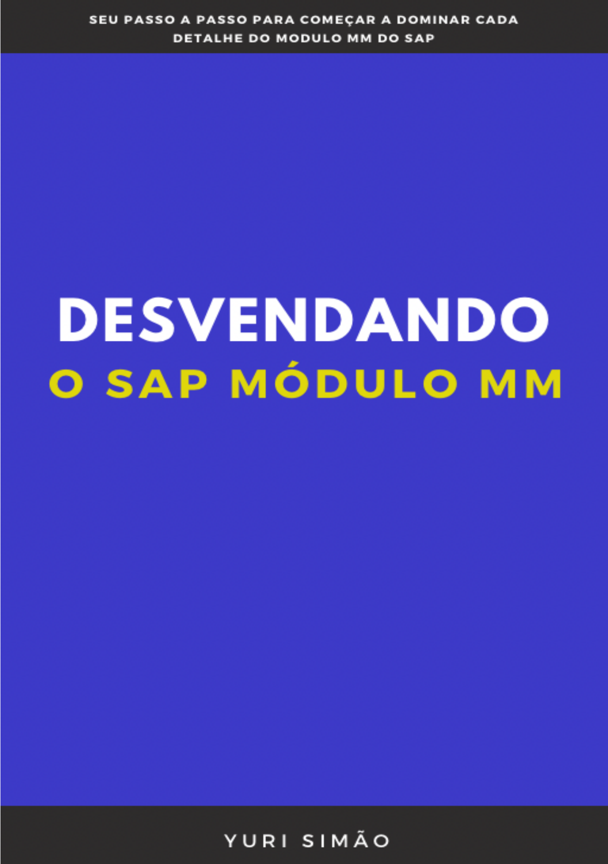 <p>1</p><p>2</p><p>Desvendando</p><p>O SAP Módulo MM</p><p>Yuri Simão</p><p>3</p><p>Capítulo 01 - Iniciando a nossa jornada.</p><p>Mas o que é SAP?</p><p>SAP - Systems, Analysis, and Program Development (Sistemas,</p><p>Aplicativos e Produtos para Processamento de Dados) é uma empresa</p><p>de software alemã fundada em 1972.</p><p>Originalmente conhecida pela liderança em software de planejamento de</p><p>recursos corporativos (ERP), a SAP evoluiu para se tornar líder de</p><p>mercado em software de aplicativos corporativos de ponta a ponta, banco</p><p>de dados, análise, tecnologias inteligentes e gerenciamento de</p><p>experiências. Uma empresa de nuvem de ponta com 200 milhões de</p><p>usuários em todo o mundo, a SAP ajuda empresas de todos os tamanhos</p><p>e em todos os setores a operar de forma lucrativa, adaptar-se</p><p>continuamente e alcançar seu propósito. SAP é uma marca registrada</p><p>pela proprietária.</p><p>A SAP possui mais de 440.000 clientes em todo o mundo, ajudando estes</p><p>a trabalhar juntos de forma mais eficiente e usar insights de negócios de</p><p>forma mais eficaz já que as soluções SAP abrangem todas as áreas da</p><p>empresa.</p><p>Possui mais de 30.000 funcionários ao redor do mundo e a sua sede é</p><p>composta de um grupo de 22 prédios. Quase 10 mil funcionários</p><p>trabalham no setor de desenvolvimento. Além da matriz em Waldorf, a</p><p>4</p><p>SAP desenvolve seus produtos em mais três cidades alemãs: Berlim,</p><p>Karlsruhe, e Saarbrücken.</p><p>Alguns dos clientes SAP no Brasil</p><p>A SAP possui clientes espalhados em 120 países do mundo nos mais</p><p>diversos ramos de negócios.</p><p>Dentre os principais clientes em solo brasileiro temos:</p><p>✅ Anglo American.</p><p>✅ CBMM.</p><p>✅ Petrobras.</p><p>✅ Arcelor Mittal.</p><p>✅ Suzano.</p><p>✅ Volkswagen.</p><p>✅ Vale.</p><p>✅ Mosaic Fertilizantes.</p><p>✅ Wise up.</p><p>✅ Galvani.</p><p>✅ Kinross Gold.</p><p>✅ Bunge.</p><p>✅ Ambev, dentre outras grandes empresas.</p><p>5</p><p>É importante salientar que a SAP não possui apenas soluções para</p><p>grandes empresas. Seu portfólio de soluções é capaz de atender desde</p><p>micro a empresas de grande porte. A solução mais utilizada em solo</p><p>nacional é o SAP ECC.</p><p>Como a solução ECC do SAP se divide?</p><p>A solução ECC SAP R/3 se divide em chamados módulos conforme a</p><p>figura abaixo:</p><p>Figura 01 – Estrutura de módulos do SAP ECC</p><p>Cada um desses módulos representam e englobam áreas estratégicas</p><p>de uma empresa como: RH, atividades logísticas, finanças e</p><p>contabilidade, produção, gestão de manutenção (módulo PM),</p><p>departamento pessoal, vendas, dentre outros processos.</p><p>Os módulos funcionais do SAP (ECC) são categorizados em 3 grandes</p><p>áreas:</p><p>6</p><p>1. Logística</p><p>Sales and Distribution (SD) - Vendas e Distribuição</p><p>Material Management (MM) - Gestão ou controle de Materiais</p><p>Warehouse Management (WM) - Expedição ou Armazém</p><p>Production Planning (PP) - Planejamento de Produção</p><p>Plant Maintenance (PM) – Gestão de Manutenção</p><p>General Logistics (LO) - Logística Geral</p><p>Quality Management (QM) - Controle de Qualidade</p><p>2. Finanças (Financial)</p><p>Financial Accounting (FI) - Contabilidade Financeira</p><p>Controlling (CO) - Controladoria</p><p>Enterprise Controlling (EC) - Controle de Custos</p><p>Investment Management (IM) - Gestão de Investimentos</p><p>Treasury (TR) - Caixa ou Tesouraria</p><p>3. Recursos Humanos (RH)</p><p>Personnel Administration (PA) - Administração de Pessoal</p><p>Personnel Development (PD) - Desenvolvimento de Pessoal</p><p>7</p><p>Capítulo 02 – O que é módulo MM do SAP</p><p>O que é o módulo MM?</p><p>Conforme explicado no capítulo anterior, a soluça ECC do SAP é</p><p>composto por módulos que abrangem cada uma das áreas funcionais de</p><p>uma empresa.</p><p>O módulo Administração de materiais (MM) está totalmente integrado</p><p>com os outros módulos do SAP.</p><p>Ele suporta todas as fases de administração de materiais:</p><p>• Planejamento e controle de materiais.</p><p>• Compras.</p><p>• Recebimento de mercadorias.</p><p>• Administração de estoque e verificação de faturas.</p><p>8</p><p>Composição do módulo MM</p><p>O módulo MM é composto por vários processos que podem ser divididos</p><p>da seguinte maneira:</p><p>• MM-PUR / Compras:</p><p>Este componente é responsável pelo suprimento externo de materiais e</p><p>serviços.</p><p>Através dele é possível a determinação de fontes de suprimento para</p><p>uma necessidade identificada no sistema.</p><p>Com este componente é possível uma boa comunicação entre todos os</p><p>que participam do processo de</p><p>suprimento para o correto funcionamento de Compras</p><p>• MM-SRV / Serviços:</p><p>Este componente fornece uma síntese da funcionalidade, mostra como a</p><p>9</p><p>Administração de serviços MM está integrada na aplicação Compras</p><p>dentro do módulo Administração de materiais e indica as interfaces para</p><p>outras aplicações.</p><p>• MM-IM / Administração de materiais:</p><p>Este componente é responsável pela administração do estoque de</p><p>materiais por quantidade e valor. O planejamento, entrada e</p><p>documentação de todos os movimentos de mercadorias são realizadas</p><p>neste componente. Através dele é possível efetuar o inventário físico.</p><p>• MM-IV / Revisão de faturas:</p><p>Este processo situa-se no final da cadeia logística. É na Revisão de</p><p>faturas (Logística) que as faturas recebidas são revistas em termos de</p><p>conteúdo, preços e aritmética.</p><p>Quando a fatura é lançada, seus dados são gravados no sistema. O</p><p>sistema atualiza os dados gravados nos documentos de faturamento em</p><p>administração de materiais e contabilidade financeira.</p><