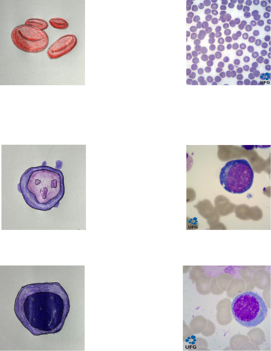 <p>SÉRIE VERMELHA</p><p>ERITRÓCITO/HEMÁCIA</p><p>PERCUSORES ERITROCITÁRIOS</p><p>PROERITROBLASTO</p><p>ERITROBLASTO BASÓFILO</p><p>O eritrócito/hemácia apresenta</p><p>forma discóide e bicôncava,</p><p>com tamanho de 7 a 8</p><p>micrômetros de diâmetro. Ele é</p><p>rico em hemoglobina, tem como</p><p>função transportar oxigênio O2</p><p>e dióxido de carbono CO2.</p><p>O proeritroblasto é uma célula</p><p>arredondada de 14 a 19</p><p>micrômetros, com núcleo</p><p>grande, cromatina fina e</p><p>nucléolo evidente. O</p><p>citoplasma é basofílico e</p><p>homogêneo, sem granulações.</p><p>O eritroblasto basófilo é</p><p>arredondado, com tamanho de</p><p>12 a 17 micrômetros. O núcleo</p><p>é grande, com cromatina</p><p>condensada e nucléolo</p><p>ausente. O citoplasma é</p><p>intensamente basofílico, sem</p><p>granulações ou inclusões.</p><p>ERITROBLASTO POLICROMÁTICO</p><p>ERITROBLASTO ORTOCROMÁTICO</p><p>RETICULÓCITO</p><p>O eritroblasto policromático é</p><p>arredondado, com tamanho de</p><p>10 a 12 micrômetros. O núcleo</p><p>tem cromatina densa e</p><p>irregular, sem nucléolo. O</p><p>citoplasma apresenta</p><p>coloração mista, com áreas</p><p>basofílicas e acidofílicas, sem</p><p>granulações.</p><p>O eritroblasto ortocromático é</p><p>arredondado, com tamanho de</p><p>8 a 10 micrômetros. O núcleo é</p><p>pequeno, com cromatina muito</p><p>condensada e sem nucléolo. O</p><p>citoplasma é</p><p>predominantemente acidofílico,</p><p>sem granulações ou inclusões.</p><p>O reticulócito é uma célula</p><p>arredondada, com tamanho de</p><p>8 a 10 micrômetros. Ele não</p><p>possui núcleo. O citoplasma é</p><p>ligeiramente basofílico, com</p><p>presença de retículos de RNA,</p><p>mas sem granulações ou</p><p>inclusões evidentes.</p>