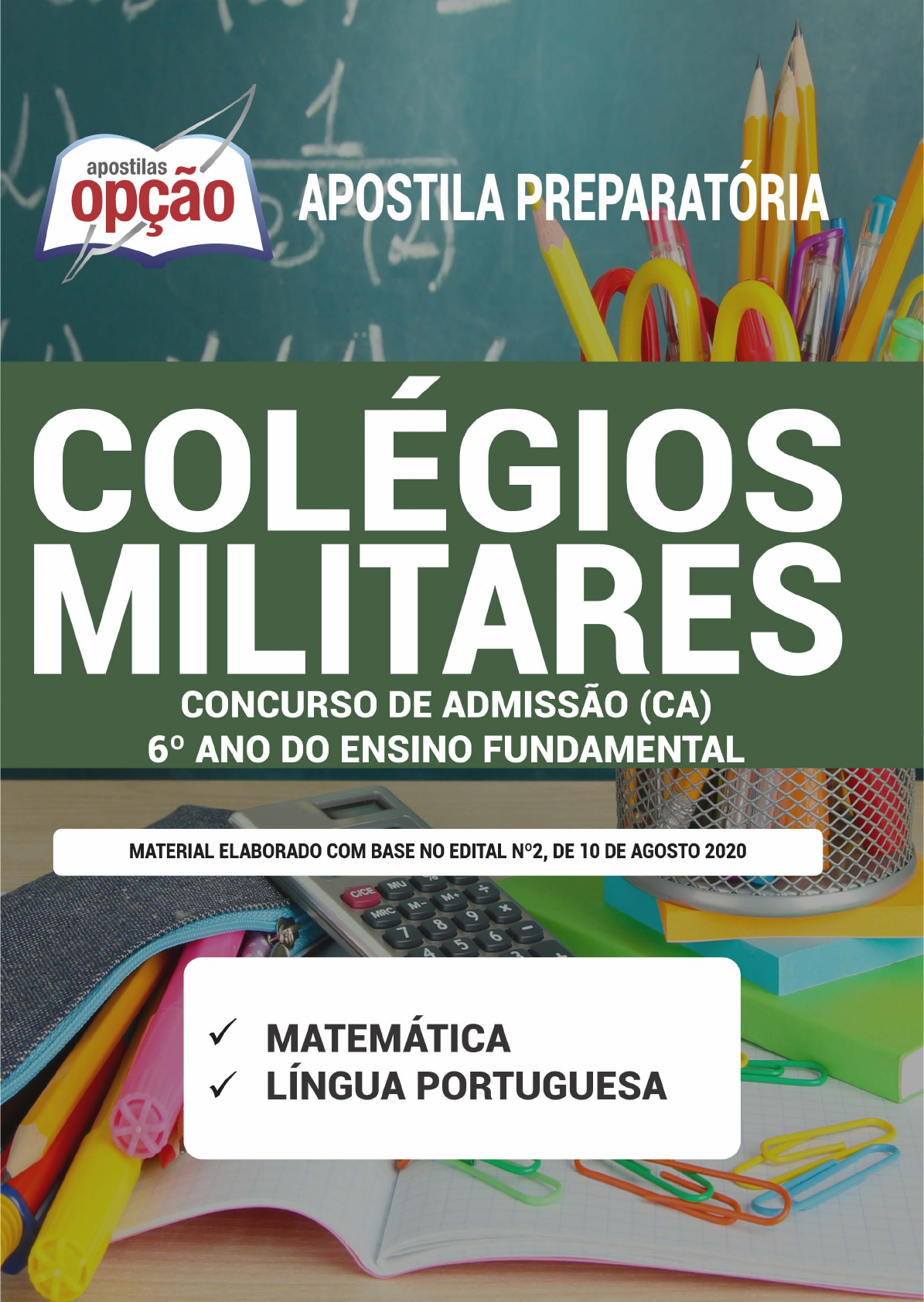 <p>COLÉGIOS MILITARES (CM)</p><p>CORPO DE BOMBEIROS MILITAR DO ESTADO DE ALAGOAS</p><p>Concurso de Admissão (CA)</p><p>6º ano do Ensino Fundamental</p><p>A APOSTILA PREPARATÓRIA É ELABORADA</p><p>ANTES DA PUBLICAÇÃO DO EDITAL OFICIAL COM BASE NO EDITAL</p><p>ANTERIOR, PARA QUE O ALUNO ANTECIPE SEUS ESTUDOS.</p><p>OP-009MA-21</p><p>CÓD: 7908403504558</p><p>• A Opção não está vinculada às organizadoras de Concurso Público. A aquisição do material não garante sua inscrição ou ingresso na</p><p>carreira pública,</p><p>• Sua apostila aborda os tópicos do Edital de forma prática e esquematizada,</p><p>• Alterações e Retificações após a divulgação do Edital estarão disponíveis em Nosso Site na Versão Digital,</p><p>• Dúvidas sobre matérias podem ser enviadas através do site: www.apostilasopção.com.br/contatos.php, com retorno do professor</p><p>no prazo de até 05 dias úteis.,</p><p>• É proibida a reprodução total ou parcial desta apostila, de acordo com o Artigo 184 do Código Penal.</p><p>Apostilas Opção, a Opção certa para a sua realização.</p><p>ÍNDICE</p><p>Matemática</p><p>1. Números e Operações: Sistema de numeração indo-arábico. Classes e ordens de um número natural. Adição, subtração, multiplicação</p><p>e divisão de números naturais. Expressões numéricas envolvendo números naturais. Múltiplos e divisores. Mínimo Múltiplo Comum</p><p>(MMC). Máximo Divisor Comum (MDC). Escrita, comparação e ordenação de frações e de números decimais. Frações equivalentes.</p><p>Relação entre representações fracionária e decimal de um mesmo número. Adição, subtração, multiplicação e divisão de frações e de</p><p>números decimais. . . . . . . . . . . . . . . . . . . . . . . . . . . . . . . . . . . . . . . . . . . . . . . . . . . . . . . . . . . . . . . . . . . . . . . . . . . . . . . . . . . . . . . . . . . . . 01</p><p>2. Expressões numéricas envolvendo frações e números decimais</p><p>3. Porcentagem . . . . . . . . . . . . . . . . . . . . . . . . . . . . . . . . . . . . . . . . . . . . . . . . . . . . . . . . . . . . . . . . . . . . . . . . . . . . . . . . . . . . . . . . . . . . . . . . . 10</p><p>4. Sistema de numeração romano. . . . . . . . . . . . . . . . . . . . . . . . . . . . . . . . . . . . . . . . . . . . . . . . . . . . . . . . . . . . . . . . . . . . . . . . . . . . . . . . . . 12</p><p>5. Espaço e Forma: Figuras geométricas e seus elementos. Classificação de polígonos. Perímetro e área de figuras planas. Classificação</p><p>de sólidos geométricos. Planificação de sólidos geométricos. Vistas de um objeto tridimensional. Volume de paralelepípedos . . . 12</p><p>6. Grandezas e Medidas: Medidas de comprimento, superfície, volume, capacidade, massa e tempo. Múltiplos e submúltiplos de uni-</p><p>dades de medida. Transformação de unidades de medida . . . . . . . . . . . . . . . . . . . . . . . . . . . . . . . . . . . . . . . . . . . . . . . . . . . . . . . . . . . . 19</p><p>7. Sistema monetário brasileiro. . . . . . . . . . . . . . . . . . . . . . . . . . . . . . . . . . . . . . . . . . . . . . . . . . . . . . . . . . . . . . . . . . . . . . . . . . . . . . . . . . . . 21</p><p>8. Tratamento da Informação: Interpretação de informações em tabelas e em gráficos. Organização de informações em tabelas e em</p><p>gráficos . . . . . . . . . . . . . . . . . . . . . . . . . . . . . . . . . . . . . . . . . . . . . . . . . . . . . . . . . . . . . . . . . . . . . . . . . . . . . . . . . . . . . . . . . . . . . . . . . . . . . 23</p><p>9. Média aritmética. . . . . . . . . . . . . . . . . . . . . . . . . . . . . . . . . . . . . . . . . . . . . . . . . . . . . . . . . . . . . . . . . . . . . . . . . . . . . . . . . . . . . . . . . . . . . . 25</p><p>10. Probabilidade . . . . . . . . . . . . . . . . . . . . . . . . . . . . . . . . . . . . . . . . . . . . . . . . . . . . . . . . . . . . . . . . . . . . . . . . . . . . . . . . . . . . . . . . . . . . . . . . 27</p><p>Língua Portuguesa</p><p>1. Gêneros textuais e conceitos: localizar informações explícitas em um texto. Inferir o sentido de uma palavra a partir do contexto em</p><p>que foi empregada. Inferir o sentido de uma expressão a partir do contexto em que foi empregada. Inferir uma informação implícita</p><p>em um texto. Identificar os elementos de um texto (narrador /foco narrativo). Implicações do Suporte, do Gênero e/ou do Enunciador</p><p>na Compreensão do Texto. Interpretar texto com auxílio de material gráfico diverso (propagandas, quadrinho, foto, etc.). Identificar</p><p>a finalidade de textos de diferentes gêneros. Coerência e Coesão no Processamento do Texto. Estabelecer relações entre partes de</p><p>um texto, identificando repetições ou substituições que contribuem para a continuidade de um texto. Estabelecer relação causa/</p><p>consequência entre partes e elementos do texto. Estabelecer relações lógico discursivas presentes no texto, marcadas por elementos</p><p>coesivos. Relação entre Textos Reconhecer diferentes formas de tratar uma informação na comparação de textos que tratam do mes-</p><p>mo tema, em função das condições em que ele foi produzido e daquelas em que será recebido . . . . . . . . . . . . . . . . . . . . . . . . . . . . 01</p><p>2. Relação entre Recursos Expressivos e Efeitos de Sentido. Identificar efeitos de ironia ou humor em textos variados . . . . . . . . . . . . 10</p><p>3. Identificar o efeito de sentido decorrente do uso da vírgula . . . . . . . . . . . . . . . . . . . . . . . . . . . . . . . . . . . . . . . . . . . . . . . . . . . . . . . . . . 01</p><p>4. Identificar o efeito de sentido do uso da sinonímia/antonímia . . . . . . . . . . . . . . . . . . . . . . . . . . . . . . . . . . . . . . . . . . . . . . . . . . . . . . . . 12</p><p>5. Identificar o efeito de sentido decorrente do uso de outros sinais de pontuação ou outra
