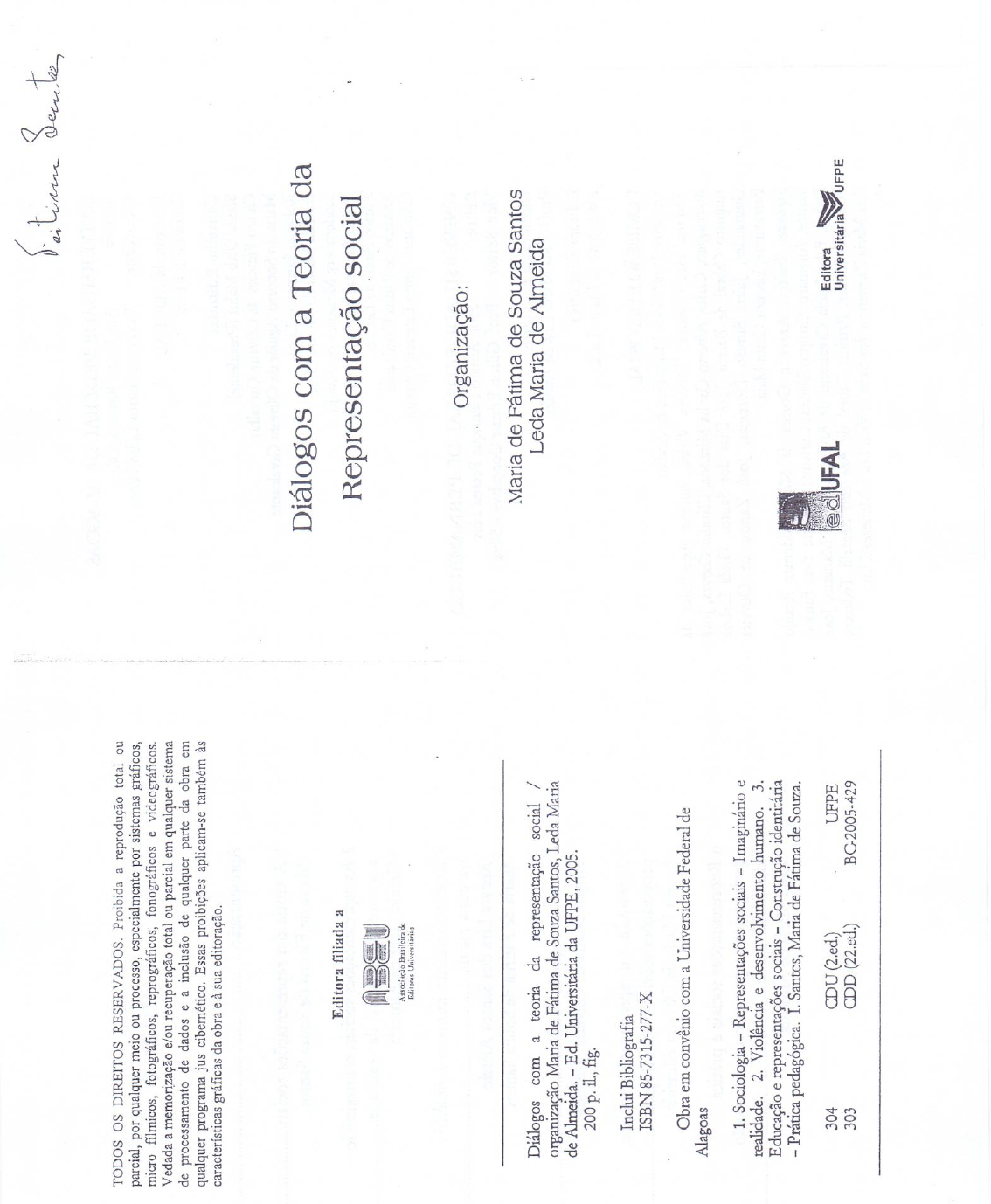 <p>TODOS os DIREITOS RESERVADOS. Proibida a reprodução total ou parcial, por qualquer meio ou processo, especialmente por sistemas gráficos, micro fotográficos, reprográficos, fonográficos e videográficos. Vedada a memorização e/ou recuperação total ou parcial em qualquer sistema de processamento de dados e a inclusão de qualquer parte da obra em qualquer programa jus cibernético. Essas proibições aplicam-se também às características gráficas da obra e à sua editoração. Diálogos com a Teoria da Editora filiada a Representação social Associação Brasileira de Editoras Organização: Maria de Fátima de Souza Santos Diálogos com a teoria da representação social / Leda Maria de Almeida organização Maria de Fátima de Souza Santos, Leda Maria de Almeida. - Ed. Universitária da UFPE, 2005. 200 p. il., fig. Inclui Bibliografia ISBN 85-7315-277-X Obra em convênio com a Universidade Federal de Alagoas 1. Sociologia - Representações sociais - Imaginário e realidade. 2. Violência e desenvolvimento humano. 3. Educação e representações sociais - Construção identitária - Prática pedagógica. I. Santos, Maria de Fátima de 304 CDU (2.ed.) UFPE ed UFAL Editora Universitária UFPE 303 CDD (22.ed.) BC-2005-429</p><p>UNIVERSIDADE FEDERAL DE ALAGOAS Reitora Ana Dayse Rezende Dórea Vice-reitor Eurico de Barros Filho Sumário Diretora da EDUFAL Sheila Diab Maluf Conselho Editorial Sheila Diab Maluf (Presidente) Apresentação 9 Cicero Péricles de Oliveira Carvalho Maria do Socorro Aguiar de Oliveira Cavalcante 1 A teoria das representações sociais 13 Roberto Sarmento Lima Maria de Fátima de Souza Santos Iracilda Maria de Moura Lima Lindemberg Medeiros de Araújo Flávio Antônio Miranda de Souza 2 As representações sociais, imaginário Eurico Pinto de Lemos e a construção social da realidade 39 Antonio de Pádua Cavalcante Geraldo José de Almeida Cristiane Cyrino Estevão Oliveira 3 Desenvolvimento humano e violência UNIVERSIDADE FEDERAL DE PERNAMBUCO na zona rural 77 Reitor Prof. Amaro Henrique Pessoa Lins Renata Lira dos Santos Aléssio Vice-Reitor Prof. Gilson Edmar Gonçalves e Silva Maria de Fátima de Souza Santos Diretora da EDUFPE Gilda Maria Lins de Araújo 4 A era da cognição social 99 Editora Executiva Angela Maria de Oliveira Almeida Maria José de Matos Luna COMISSÃO EDITORIAL 5 A pesquisa em representações sociais: proposições teórico-metodológicas 117 Maria Lins de Araújo Angela Maria de Oliveira Almeida Titulares: Anco Márcio Tenório Vieira, Aurélio Agostinho da Boaviagem, Carlos Alberto Cunha Miranda, Cláudio Cuevas, José Augusto Cabral de Barros, José Dias dos Santos, Gilda Lisboa 6 Representações sociais e prática Jairo Simião Dornelas, José Zanon de Oliveira pedagógica no processo de construção Passavante, Leonor Costa Maia. identitária 161 Suplentes: Izaltina Azevedo Gomes de Mello, Aldemar Araújo Leda Maria de Almeida Santos, Anamaria Campos Torres, Christine Paulette Yves Rufino Dabat, Elba Lúcia Cavalcanti de Gorki Mariano, José Policarpo Júnior, Patrícia Cabral de Azevedo Restelli Tedesco, Rita Maria Zorzenon dos Santos, Vera Lúcia Menezes Lima.</p><p>Apresentação Este livro nasceu de um encontro em sala de aula. A relação que se constrói entre as pessoas no contexto acadêmico pode ser uma relação de ensino-aprendizagem, passageira, superficial, pragmática. Ela pode ser tam- bém rica em afeto, troca de conhecimento, aprendizagem mútua, respeito e construção coletiva. Foi exatamente no contexto de um curso de pós-gradu- ação, em uma turma que se debruçava sobre a teoria das representações sociais buscando compreender seus conceitos, apreender a perspectiva de sujeito e sociedade subjacentes a eles que surgiu a idéia deste livro. Naquele momento surgiam as dúvidas, esbarrávamos nos conceitos e preconceitos sobre a pers- pectiva teórica das representações sociais, seu uso adequado ou não para compreender determinados Passamos muitas horas em uma discussão que partia das concepções sobre ciência, realidade, conhecimento verdadeiro, senso comum, conceitos teóricos da Teoria das Representações Sociais, métodos e técnicas possíveis em função dos pressupostos teóricos e dos objetos de pesquisa envolvidos. Discutíamos sobre as decisões que quotidianamente somos obrigados a tomar durante o processo de construção do conhecimento Havia uma diversidade de for mação que, longe de ser um empecilho, tor nou rica a discussão, estreitou os laços e beneficiou a todos. A partir dessa experiência surgiu a idéia de publicar um livro que pudesse ajudar àqueles que se iniciam na Teoria das Representações Sociais. Umlivro concebido para alunos de graduação, de pós-graduação, pesquisa- dores que se iniciam nesta perspectiva teórica. A proposta que nos seduziu foi a de poder apresentar os conceitos básicos da teoria, os métodos de pesquisa utilizados, exemplos de trabalhos</p><p>que pudessem dar ao leitor uma idéia de sua utilização. Talvez, no fundo, cuidado de apresentar os conceitos teóricos ligados à perspectiva metodológica. quiséssemos partilhar com o leitor as horas que passamos nas salas de aula, Ela discute detalhadamente algumas técnicas utilizadas na coleta e análise de o "clima" das nossas discussões, as dificuldades que encontramos e que dados possibilitando ao leitor um primeiro contato com a riqueza de possi- supostamente poderíamos minimizar para o outro. bilidades suscitadas pela proposta de Moscovici. Nesta perspectiva, decidimos que primeiro capítulo seria uma apre- último capítulo discute as representações sociais articuladas com a sentação da Teoria das Representações Nele buscou-se apresentar os prática pedagógica no processo de construção da identidade. Talvez o leitor principais conceitos desta teoria com cuidado de tentar responder a pergun- tas que ouvimos em sala de aula. possa pensar que voltamos ao início! A idé