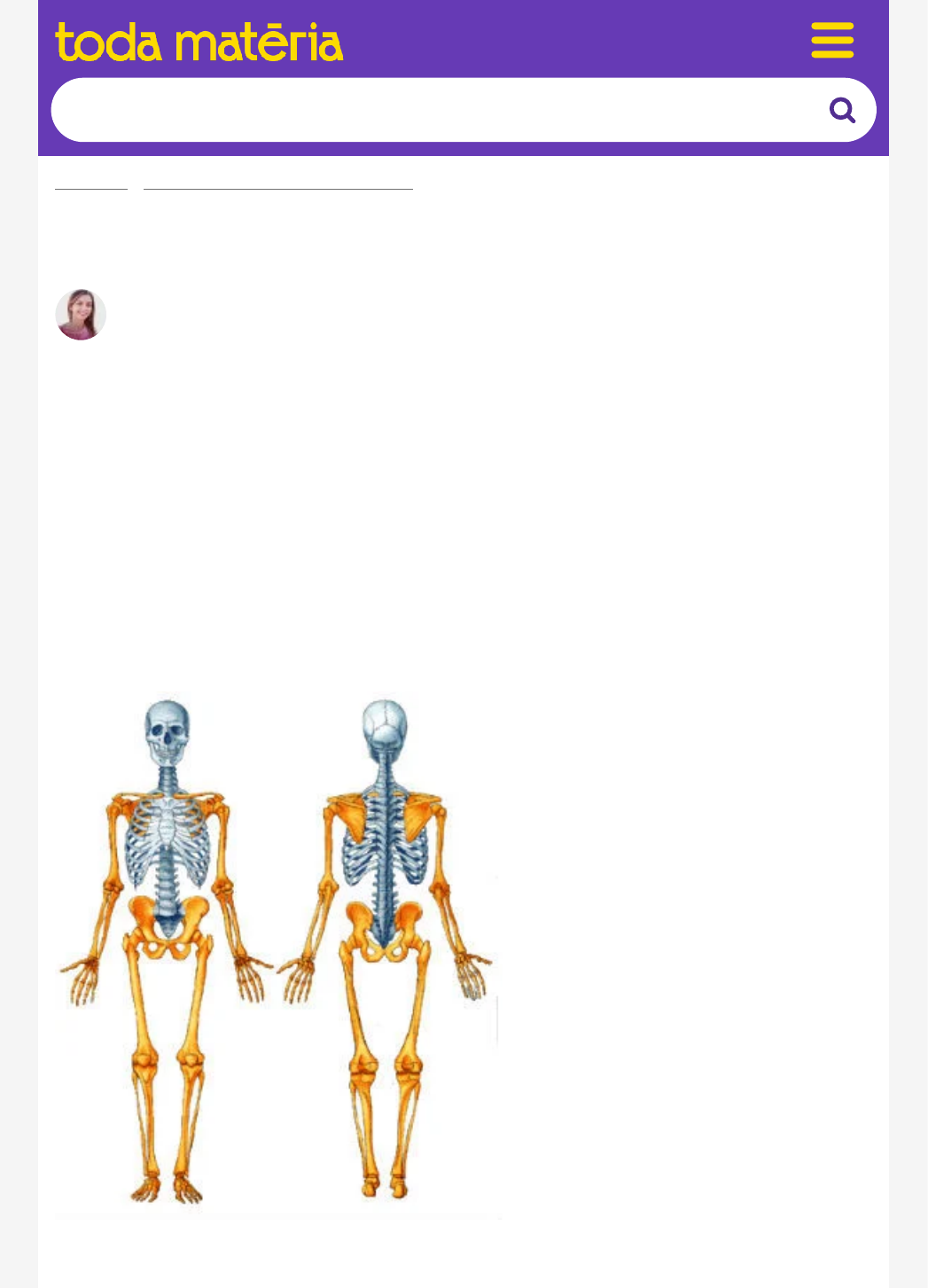 <p>BIOLOGIA › ANATOMIA E FISIOLOGIA HUMANAS</p><p>Esqueleto apendicular</p><p>Lana Magalhães</p><p>Professora de Biologia</p><p>O esqueleto apendicular compreende os ossos dos membros superiores e</p><p>inferiores. Ele é responsável pela movimentação e sustentação do corpo.</p><p>O corpo humano é formado ainda pelo esqueleto axial, constituído pelo</p><p>crânio, caixa torácica e coluna vertebral. Os esqueletos axial e apendicular</p><p>se unem através da cintura pélvica e escapular.</p><p>No total, o esqueleto apendicular é formado por 126 ossos, divididos na</p><p>porção superior e inferior do corpo humano.</p><p>Esqueleto apendicular destacado na cor laranja</p><p>Busque um tema</p><p>01/09/2022 22:04</p><p>Página 1 de 11</p><p>Esqueleto apendicular superior</p><p>Ossos do membro superior do corpo</p><p>O membro superior é formado pelo braço, antebraço, pulso e mão. Os ossos</p><p>dos membros superiores são:</p><p>Clavícula: osso longo em formato de "s".</p><p>Escápula ou omoplata: osso plano de forma triangular.</p><p>Úmero: articula o cotovelo com os ossos do antebraço. É o maior osso</p><p>do membro superior.</p><p>Rádio: osso longo que constitui a porção lateral do antebraço.</p><p>Ulna: osso longo que constitui a porção medial do antebraço.</p><p>Ossos da mão e punho: constituídos por pequenos e maciços ossos</p><p>chamados de carpos, metacarpos e falanges. Ao todo, correspondem a</p><p>01/09/2022 22:04</p><p>Página 2 de 11</p><p>27 ossos que trabalham em conjunto.</p><p>No esqueleto apendicular superior existe ainda a cintura escapular,</p><p>constituída pela clavícula e escápula. A escápula liga-se ao esqueleto axial</p><p>através de músculos.</p><p>Veja também: Ossos do Corpo Humano</p><p>Esqueleto apendicular inferior</p><p>Ossos do membro inferior do corpo</p><p>O membro inferior é formado pela coxa, perna, tornozelo e pé. Eles são</p><p>responsáveis pela sustentação e locomoção do corpo. Os ossos dos</p><p>membros inferiores são:</p><p>Ossos do quadril: representa a fusão de três ossos - ílio, ísquio e púbis.</p><p>Fêmur: osso mais longo do corpo, presente entre a extremidade do</p><p>quadril até o joelho.</p><p>01/09/2022 22:04</p><p>Página 3 de 11</p><p>Patela: osso triangular chato, responsável pela proteção da articulação</p><p>do joelho.</p><p>Tíbia: osso longo localizado entre os pés e joelhos, responsável pela</p><p>sustentação do peso do corpo. É o segundo maior osso do corpo.</p><p>Fíbula: osso longo que faz parte da articulação do joelho e não possui</p><p>função relacionada à sustentação do corpo.</p><p>Ossos do pé e tornozelo: os ossos do pé são divididos em tarsos,</p><p>metatarsos e falanges, somando 26 ossos. O tornozelo é a articulação</p><p>entre o pé e a perna, sendo formado pela tíbia, fíbula, e por um osso do</p><p>pé, o tálus.</p><p>Existe ainda a cintura pélvica, formada pelo osso ilíaco. Ela é responsável</p><p>pela ligação entre os membros inferiores ao tronco, que corresponde a uma</p><p>porção do esqueleto axial.</p><p>Curiosidades</p><p>Osteologia é o nome da ciência que se dedica ao estudo dos ossos;</p><p>A fíbula pode ser usada para enxerto ósseo, ou seja, parte do osso é</p><p>retirado para substituir outro osso perdido. Ela pode ser remodelada</p><p>sem que ocorra prejuízo na sustentação ou locomoção do corpo.</p><p>Aproveite para conferir a nossa videoaula relacionada ao assunto:</p><p>01/09/2022 22:04</p><p>Página 4 de 11</p>
