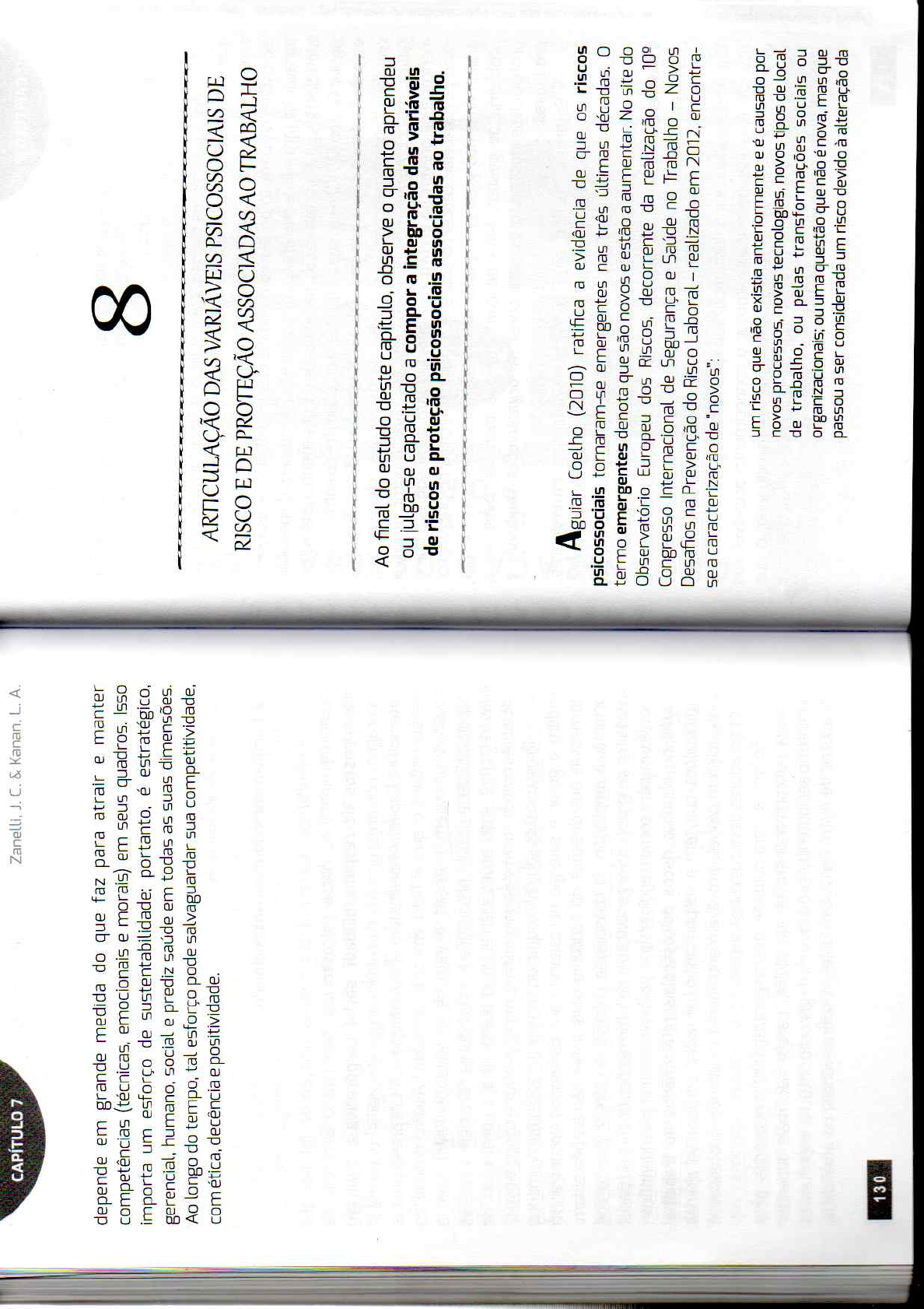 <p>CAPÍTULO 7 Zanelli, J. C. & Kanan, L. A. depende em grande medida do que faz para e manter (técnicas, emocionais e morais) em seus quadros. Isso um esforço de sustentabilidade; portanto, é estratégico, 8 gerencial, humano, social e prediz saúde em todas as suas Ao longo do tempo, tal esforço pode salvaguardar sua competitividade, ética, decência e positividade. ARTICULAÇÃO DAS VARIÁVEIS PSICOSSOCIAIS DE RISCO E DE PROTEÇÃO ASSOCIADAS AO TRABALHO Ao final do estudo deste capítulo, observe o quanto aprendeu ou julga-se capacitado a compor a integração das variáveis de riscos e proteção psicossociais associadas ao trabalho. Aguiar Coelho (2010) ratifica a evidência de que os riscos psicossociais tornaram-se emergentes nas três últimas décadas. termo emergentes denota que são novos e estão a aumentar. No site do Observatório Europeu dos Riscos, decorrente da realização do 10° Congresso Internacional de Segurança e Saúde no Trabalho - Novos Desafios na Prevenção do Risco Laboral - realizado em 2012, encontra- se a caracterização de "novos": um risco que não existia anteriormente e é causado por novos processos, novas tecnologias, novos tipos de local de trabalho, ou pelas transformações sociais ou organizacionais; ou uma questão que não é nova, mas que passou a ser considerada um risco devido à alteração da 130</p><p>we ou '8 <<< / >>> . / N 7 / 3 ep . osues / . / A / op a] n S N S 30 / / N</p><p>CAPÍTULO 8 Zanelli, J. C. & Kanan, L. A. Fatores de risco, proteção psicossocial e trabalho Defendemos até aqui, neste livro, a força das dimensões da recursos de aplicação estão disponíveis, entre outros, em Coelho, \cultura e do poder como fundamentos peculiares de uma Zanelli e Tostes (2016). Além disso, reconhecidos agentes públicos em suas interações humanas/ Como uma construção progressiva e conferem responsabilidades às incentivam e oferecem interminável, os valores centrais os que interessam aos detentores do suporte para as intervenções, como a Agência Europeia para Segurança poder vão sendo instituídos e passam a ser os sustentáculos das e Saúde (European Agency for Safety and Health at Work-EU-OSHA) e o condições saudáveis ou não saudáveis. Tais valores podem ser Instituto Nacional de Segurança e Saúde Ocupacional (National Institute reconhecidos, na prática diária, em características distintivas do que é for Occupational Safety and ético em contraposição ao que não é. Uma organização, ou melhor, os A intervenção psicossocial nos limites e alcances da gestão de seus trabalhadores são tentados pelas contingências diárias aos desvios uma organização, como qualquer intervenção psicossocial em outros éticos. A manutenção dos comportamentos éticos depende da coerência contextos, tem como objetivos identificar, caracterizar (diagnosticar) das práticas, que vai além dos códigos formalmente ou analisar, planejar ações, e situações, dificuldades e seja, depende do quanto efetivamente os valores são interiorizados facilidades nas interações humanas que demandam adequações ou pelos que fazem a construção cotidiana. Disposições ou atitudes fortalecimentos. em grande medida, dos gestores e da favoráveis a a dignidade revelam-se nos comportamentos, ao disponibilidade para investimentos na dimensão organizacional humana. mesmo tempo em que permitem decodificar os valores que lhes dão Os argumentos a favor de tal escolha, em suma, estão nas evidências de origem. São esses valores que orientam a assunção de responsabilidade que construir organizações emocionalmente inteligentes, ou culturas social corporativa, a começar pelo que ocorre dentro da própria saudáveis, é cada vez mais visto como um aos riscos organização. Saúde, segurança, bem-estar e produtividade são psicossociais e demais riscos aos quais se inter-relacionam. Significa construídas psicossocialmente. priorizar a prevenção primária dos riscos de origem psicossocial (BRESÓ Em que pese a pluralidade dos fatores, fenômenos e processos SALANOVA, 2010): "trabalhadores emocionalmente em bem como as consequentes dificuldades de articulá- inteligentes proporcionam relações sociais adequadas e, por isso, los, a representação da Figura 8 é uma tentativa de síntese e integração. ambientes de trabalho e organizações saudáveis" (p. 5). Como uma estratégia organizacional, a prevenção dos riscos e a 8.1 Recursos e práticas psicossociais saudáveis no ambiente de promoção de ações psicossociais saudáveis no ambiente de trabalho trabalho têm proativo, na medida em que antecipam consequências nefastas e, bem além, para coordena a construção de culturas Intervir nos fatores psicossociais relacionados ao trabalho, saudáveis e resilientes. As consequências manifestam-se em como vimos até aqui, é tarefa complexa, porque envolve muitas trabalhadores mais engajados e variáveis. Apesar da profusão de estudos acumulados (mormente nas satisfeitos com o intuito de Como uma estratégia organizacional, línguas inglesa e sobretudo nas décadas recentes, e dos permanecer na organização a prevenção dos riscos e a promoção instrumentos e procedimentos desenvolvidos com a finalidade de equipes mais coesas e de ações psicossociais saudáveis no identificar as características desses fatores, muitas incongruências inovadoras, clientes e usuários ambiente de trabalho têm caráter permanecem. Entretanto, metodologias de aplicação das teorias e satisfeitos. Enfim, como valor proativo 134 135</p><p>CAPÍTULO 8 Zanelli, J. C. & Kanan, L. A. Fatores de risco, proteção psicossocial e trabalho fundamental, o bem-estar das pessoas é tão ou mais importante que o desenvolvem pessoal e profissionalmente os trabalhadores da cumprimento de metas e a produtividade. com implicações para suas vidas, tanto dentro como fora A prevenção dos riscos e a promoção de ações psicossociais do trabalho: 
