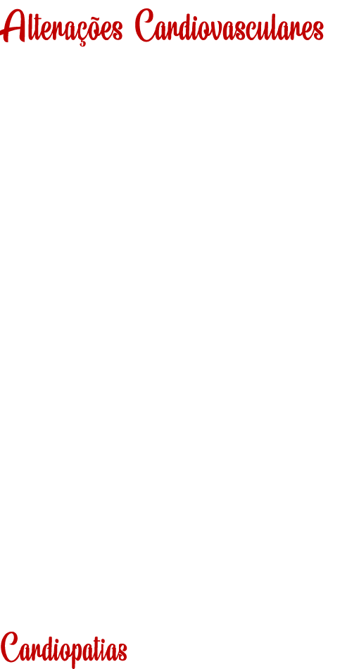 <p>Apesar do avanço tecnológico</p><p>(cineangiocoronariografia,</p><p>revascularização miocárdica,</p><p>ultrassonografia, cintilografia cardíaca</p><p>e cerebral, tomografia</p><p>computadorizada, drogas anti-</p><p>hipertensivas e inotrópicas cardíacas)</p><p>ainda é alto o índice de óbitos</p><p>precoces por doenças</p><p>cardiovasculares.</p><p>O Brasil aparece em 9º lugar na lista</p><p>dos países cuja população morre mais,</p><p>em números absolutos, de doenças</p><p>cardíacas, e é o 6º em AVC.</p><p>Cigarro é o grande vilão nos países</p><p>desenvolvidos.</p><p>Sedentarismo, obesidade, diabetes e</p><p>pressão alta são considerados os</p><p>principais fatores de risco para o</p><p>desenvolvimento de doenças</p><p>cardiovasculares.</p><p>O coração é o responsável pelo</p><p>fornecimento do fluxo de sangue</p><p>oxigenado aos órgãos e tecidos do</p><p>corpo, de modo a atender às</p><p>necessidades metabólicas.</p><p>A contração cardíaca ocorre por meio</p><p>de um estímulo elétrico.</p><p>Classificação das cardiopatias:</p><p>1. Cardiopatia isquêmica;</p><p>2. Cardiopatia hipertensiva;</p><p>3. Miocardiopatias;</p><p>4. Valvopatias;</p><p>5. Pericardites;</p><p>6. Dor pulmonar crônica;</p><p>7. Cardiopatias congênitas;</p><p>8. Doenças da aorta.</p><p>Sintomas:</p><p>Dispneia – sintoma mais frequente da</p><p>insuficiência cardíaca;</p><p>Pode ocorrer em indivíduos normais,</p><p>durante atividade física;</p><p>Na dispneia de origem cardíaca, a</p><p>respiração é rápida e superficial, sem</p><p>conseguir encher os pulmões de ar.</p><p>A dispneia no cardiopata deve-se a:</p><p>→ Aumento do trabalho necessário</p><p>a respiração, diminuição da</p><p>capacidade vital, hiperventilação,</p><p>diminuição da luz dos brônquios,</p><p>hipóxia e retenção de dióxido de</p><p>carbono.</p><p>Dor precordial – principais causas</p><p>são isquemia do miocárdio e</p><p>pericardite;</p><p>A insuficiência da circulação leva a dor</p><p>precordial, também conhecida como</p><p>angina do peito;</p><p>Os pacientes que sofrem desta dor</p><p>são acometidos durante algum esforço</p><p>ou durante as refeições;</p><p>Pacientes relatam dor no tórax e</p><p>sensação de aniquilamento.</p><p>Localização:</p><p>→ Região retroesternal, irradiando</p><p>para braço esquerdo;</p><p>→ Sensação de opressão e</p><p>estrangulamento, e relaciona-se</p><p>com esforço físico.</p><p>Duração:</p><p>→ Geralmente entre 1 e 10</p><p>minutos.</p><p>Dor provocada por infarto no</p><p>Miocárdio:</p><p>→ Semelhante a angina do peito;</p><p>→ Mais prolongada – normalmente</p><p>mais de 30 minutos;</p><p>→ Mais intensa e sem relação com</p><p>esforço físico.</p><p>Palpitações – batimentos cardíacos</p><p>mais sentidos de forma consciente.</p><p>Exemplos: sensação de murro dentro</p><p>da caixa torácica, consciência de</p><p>batimentos extranumerários ou falhos,</p><p>disparos da frequência cardíaca.</p><p>Edema – acúmulo de liquido</p><p>intersticial;</p><p>→ Manifestação mais relevante,</p><p>porém, geralmente de</p><p>observação tardia;</p><p>→ Se instala quando há aumento</p><p>da pressão venosa, e retenção</p><p>de água e sódio;</p><p>→ É precedido por aumento de</p><p>peso (3 a 5 kg);</p><p>→ Pressão aplicada pelo polegar</p><p>deixa depressão nos tecidos –</p><p>cacifo.</p><p>Ascite – sinal de cardiopatia</p><p>avançada;</p><p>→ Acúmulo de líquido no interior da</p><p>cavidade abdominal;</p><p>→ Manifesta-se mais tarde que o</p><p>edema, porém são de mesmo</p><p>mecanismo;</p><p>→ Sintoma comum de doenças</p><p>hepáticas.</p><p>Cianose – coloração azulada da pele</p><p>e mucosas;</p><p>→ Devido a saturação insuficiente</p><p>de sangue arterial em relação ao</p><p>oxigênio ou ao seu consumo</p><p>exagerado nos tecidos periféricos.</p><p>Tipos:</p><p>→ Cianose central – oriunda de</p><p>alteração cardíaca ou pulmonar;</p><p>→ Diagnostico: saturação de</p><p>oxigênio < 85%;</p><p>→ Cianose periférica – saída</p><p>elevada de oxigênio nos tecidos,</p><p>pele fria e mucosas quentes (ex:</p><p>língua) sem cianose.</p><p>Hemoptise – escarro sanguinolento</p><p>por hemorragia da árvore respiratória;</p><p>não tão frequente, exceto nos casos</p><p>de estenose mitral e infarto pulmonar.</p><p>Síncope – perda passageira da</p><p>consciência devido a um fluxo</p><p>inadequado ou à baixa perfusão dos</p><p>tecidos cerebrais;</p><p>Pode ter diversas causas, entre elas</p><p>algumas cardiopatias (rendimento</p><p>cardíaco diminui bruscamente por</p><p>baixa frequência cardíaca).</p><p>• Pulso arterial;</p><p>• Frequência cardíaca;</p><p>• Pressão arterial.</p><p>Pulso arterial</p><p>Sentido durante a palpação de uma</p><p>artéria com a finalidade de determinar</p><p>a frequência cardíaca.</p><p>→ Artéria radial;</p><p>→ Artéria carótida;</p><p>→ Artéria temporal;</p><p>→ Artéria pediosa dorsal.</p><p>Frequência cardíaca:</p><p>Quando regular, pode contar os</p><p>batimentos por 15 segundos e</p><p>multiplicar por 4.</p><p>Quando irregular, recomenda-se</p><p>contar por 30 segundos;</p><p>Frequência de 60 a 100 bpm em</p><p>adultos em repouso.</p><p>→ Bradicardia sinusal – frequência</p><p><60bpm;</p><p>→ Taquicardia sinusal – frequência</p><p>>120 bpm.</p><p>Pressão arterial:</p><p>Mensuração precisa somente com</p><p>cateterismo intra-arterial;</p><p>Para fins clínicos os</p><p>esfigmomanômetro é suficiente.</p><p>Antes de aferir: Paciente deve estar</p><p>confortável e aquecido em ambiente</p><p>calmo; Antes de medir, ficar na mesma</p><p>posição por 5 minutos.</p><p>É uma doença crônica não</p><p>transmissível de natureza multifatorial,</p><p>assintomática (na grande maioria dos</p><p>casos) que compromete</p><p>fundamentalmente o equilíbrio dos</p><p>sistemas vasodilat