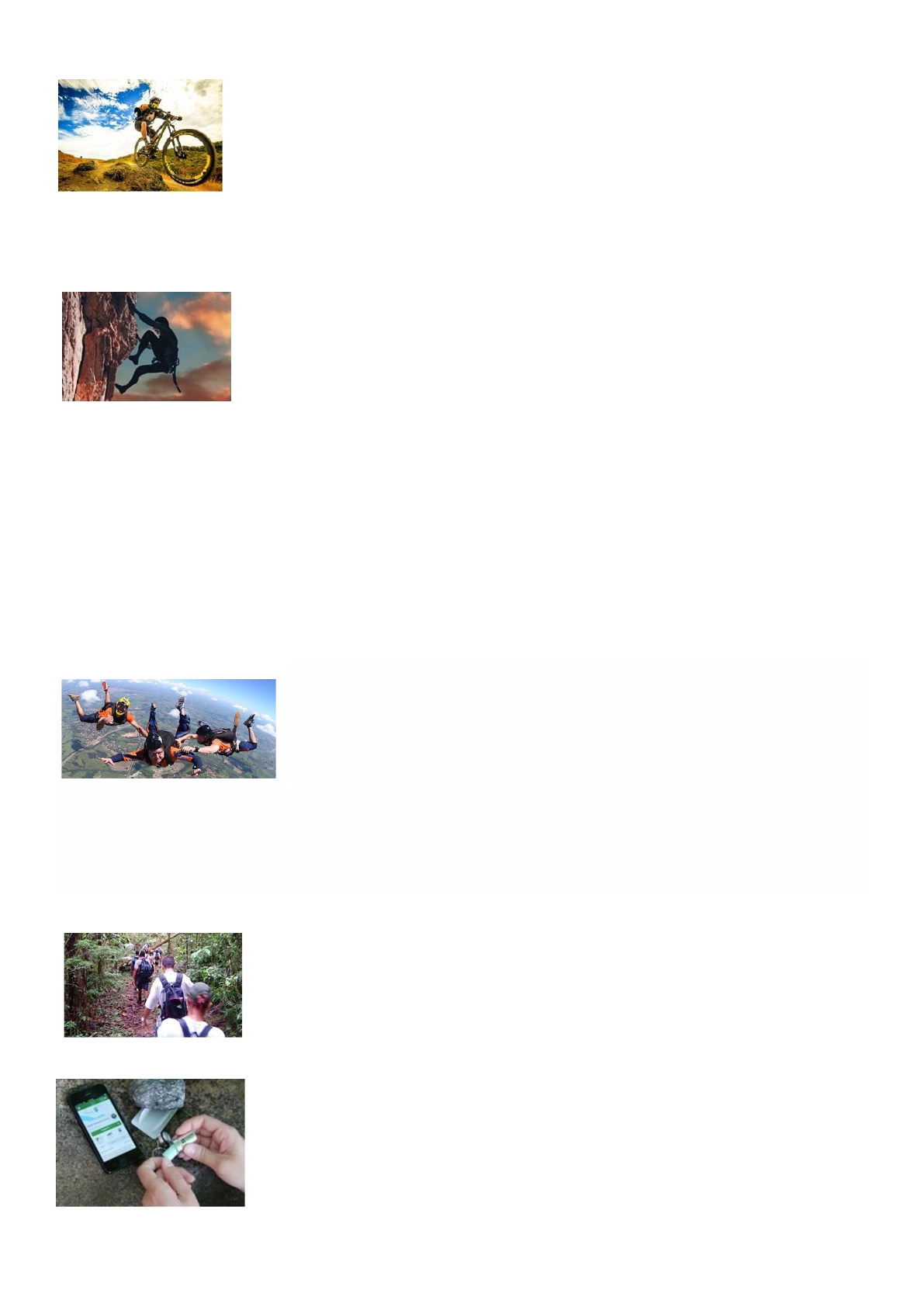 <p>ORIGEM</p><p>A origem dos esportes de aventura surgiu no final da década de 80 e no início da década</p><p>de 90, quando viraram moda os esportes que os adultos praticavam como o paintball, o</p><p>surf, o skydiving, o alpinismo, o paraquedismo, o montanhismo, hang gliding e bungee</p><p>jumping, o montain bike e o trekking. Antes eram esportes praticados por um pequeno</p><p>grupo de pessoas, se tornaram extremamente populares em um curto espaço de tempo, e</p><p>foram ganhando muitos adeptos ao redor de todo o mundo. Uma grande característica</p><p>dessas atividades acaba se tornando semelhante ao ponto de vista de muitas pessoas, que</p><p>é a capacidade desses esportes em causar a aceleração da chamada adrenalina o que acaba proporcionando prazer</p><p>aos praticantes. Já para muitos que praticam esportes de aventura é uma filosofia de vida buscar alternativas para</p><p>desafiar constantemente o corpo e mente.</p><p>DEFININDO ESPORTES DE AVENTURA</p><p>É o conjunto de práticas esportivas, vivenciadas em interação com a natureza, a partir de</p><p>sensações e de emoções, sob condições de incerteza em relação ao meio e de risco</p><p>calculado em resposta aos desafios desses ambientes, quer seja em manifestações</p><p>educacionais, de lazer e de rendimento, sob controle das condições de uso dos</p><p>equipamentos e comprometidas com a sustentabilidade socioambiental.</p><p>DIFERENÇAS ENTRE RADICAIS E DE AVENTURA</p><p>AVENTURA: Realizadas em ambientes naturais (ar, água, neve, gelo e terra), como exploração das possibilidades da</p><p>condição humana.</p><p>RADICAIS: Realizadas em manobras arrojadas e controladas, como superação de habilidades de desafio extremo.</p><p>Esportes de aventura:</p><p>Os termos esporte radical, de aventura ou de ação são usados para designar desportos com maior grau de risco</p><p>físico, dado às condições de altura, velocidade ou outras variantes em que são praticados. Tais desportos são assim</p><p>considerados por oferecerem mais riscos do que os desportos em geral, o que os torna mais emocionantes, já que</p><p>exigem um maior esforço físico e maior controle emocional. No início, eram considerados desportos radicais a prática</p><p>do paraquedismo, snow board e voo livre. Com o tempo, atividades como o tricking, rafting, trekking, cannoying,</p><p>verticália, entre outras, foram incorporadas à lista dos desportos de aventura. Os esportes de aventura também</p><p>podem estar relacionados a desportos na natureza, por envolverem escaladas, trilhas, montanhismo.</p><p>OS RISCOS DOS ESPORTES DE AVENTURA</p><p>No Brasil, existe o registro de acidentes fatais em que atletas ou indivíduos se</p><p>arriscaram na pratica de esportes de aventura ou radicais como rapel, rafting,</p><p>asa-delta, parapente, banana boat e andar de bugue. Imaginem, então, o risco que</p><p>não se corre quando se escala uma montanha ou quando atletas participam de</p><p>competições arriscadas, como é o caso da brasileira Laís Souza, que sofreu</p><p>acidente grave de esqui. Os esportes radicais oferecem ao seu participante, além</p><p>de correr riscos (e principalmente o risco de morte), a emoção da adrenalina</p><p>(hormônio que o organismo libera diante das situações de medo e excitação). Quem pratica, descreve sentimentos</p><p>de liberdade, de emoção, de aventura, de êxtase e de superação de seus limites. Mas limites e cuidados é o que</p><p>requer qualquer atividade física, ainda mais para quem pratica esportes radicais. É importante manter-se ativo, mas</p><p>sempre com cautela. A vida, certamente, vale muito mais a pena ser vivida com muita adrenalina em território certo,</p><p>explorando os nossos limites com respeito e superando a cada obstáculo. Por isso, praticar esportes radicais com</p><p>segurança é fundamental.</p><p>Conheça alguns esportes de aventura:</p><p>Trilha</p><p>É um dos esportes de aventura mais simples e prazerosos que existem. Não exige</p><p>habilidade, e pouquíssimo condicionamento físico. Torna-se cada vez mais desafiador</p><p>quando você encontra trilhas que levam a lugares altos com pequenas subidas mais</p><p>íngremes onde é preciso escalar e forçar um pouco mais os seus limites. Fazer trilha é</p><p>um ótimo exercício de aventura onde o grau de dificuldade muitas vezes é baseado nas</p><p>escolhas do próprio praticante. Não tem muito segredo.</p><p>Geocaching</p><p>Geocaching é brilhante. Trata-se basicamente de uma caça ao tesouro. Com a ajuda de</p><p>um GPS, você busca encontrar um determinado “Cache”, normalmente um</p><p>compartimento resistente a alterações climáticas (ex: tupperware) com um livro de</p><p>registros e alguns objetos deixados para troca (canetas, chaveiros, moedas). Com a</p><p>ajuda de um GPS ou um smartphone que tenha a funcionalidade, você pode encontrar</p><p>um cache próximo, de preferência que não seja urbano. Outra aventura é criar o seu</p><p>próprio Cache, no Geocaching Brasil tem algumas recomendações de como criar um</p><p>Cache para iniciantes. O ponto alto do Geocaching é servir como porta de entrada para</p><p>outras aventuras. Muitos Caches possuem indicativos de que podem ser executados de formas diferentes, como por</p><p>exemplo, utilizando bicicleta, natação ou escalada, não sendo necessário executar a trilha a pé. Se supere e cumpra</p><p>desafio de uma forma diferenciada.</p><p>Montanhismo e rapel</p><p>Montanhismo é a prática de subir montanhas por meio de caminhada ou escalada. Já</p><p>o rapel consiste em utilizar técnicas verticais para vencer obstáculos naturais como</p><p>penhascos e paredões. É muito utilizado por diversas atividades como escaladas e</p><p>corridas de aventura.</p><p>Paraquedismo e parapente</p><p>O paraquedismo é praticado por desportistas que saltam de aeronaves ou lugares</p><p>fixos. Eles usam um paraquedas para diminuir sua velocidade de queda, sendo</p