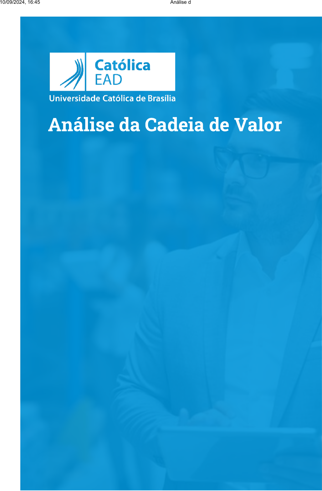 <p>Análise da Cadeia de Valor</p><p>10/09/2024, 16:45 Análise da Cadeia de Valor</p><p>https://ava.catolica.edu.br/d2l/le/enhancedSequenceViewer/90467?url=https%3A%2F%2F211c9f77-18c9-42e7-a7d8-b67813cc574d.sequences.a… 1/8</p><p>Atividades</p><p>Cadeia</p><p>de Valor</p><p>Custos Estratégia</p><p>Vantagem</p><p>Competitiva</p><p>Conceituando cadeia de valor</p><p>Em um processo industrial de fabricação de qualquer artigo, da matéria-prima até a</p><p>saída do produto acabado, há diversas etapas a serem seguidas. Cada etapa tem sua</p><p>importância e, também, seu custo para a empresa produtora.</p><p>Muitas vezes, as empresas possuem em seus processos algumas atividades que não</p><p>agregam valor ao produto �nal, são tarefas que acabam gerando desperdício de</p><p>tempo e outros recursos por serem desnecessárias ao processo.</p><p>Para identi�car as atividades que são relevantes e agregam valor ao produto �nal, a</p><p>cadeia de valor é uma ferramenta estratégica, que auxilia a organização a melhorar</p><p>seu processo e diminuir esses desperdícios, bem como os custos.</p><p>O termo cadeia de valor foi primeiramente conceituado pelo economista Michael</p><p>Porter na década de 1980. Para Porter (1989, p.31), “a cadeia de valores desagrega uma</p><p>empresa nas suas atividades de relevância estratégica para que se possa</p><p>compreender o comportamento dos custos e as fontes existentes e potenciais de</p><p>diferenciação”. De acordo com o autor, as atividades são executadas no intuito de</p><p>projetar, produzir, comercializar, entregar e sustentar o produto da empresa.</p><p>Devido à globalização, os consumidores passaram a receber mais informações e</p><p>conhecer mais produtos, assim, a concorrência entre as ofertas se tornou muito forte.</p><p>Tornou-se necessário, para aqueles que desejam se manter no mercado, encontrar</p><p>10/09/2024, 16:45 Análise da Cadeia de Valor</p><p>https://ava.catolica.edu.br/d2l/le/enhancedSequenceViewer/90467?url=https%3A%2F%2F211c9f77-18c9-42e7-a7d8-b67813cc574d.sequences.a… 2/8</p><p>vantagem em relação aos concorrentes para assegurar sua posição frente ao</p><p>mercado consumidor, pois, conforme Porter, a cadeia de valor é fonte de vantagem</p><p>competitiva.</p><p>O conceito apresentado por Porter teve críticas porque, em sua declaração, o</p><p>economista considera a empresa e suas atividades, entretanto, outros autores que</p><p>discutiram a cadeia de valor defenderam que, na maior parte das vezes, as atividades</p><p>necessárias à produção e à comercialização extrapolam os limites da empresa.</p><p>Explicando melhor, uma empresa necessita de matéria-prima para sua produção,</p><p>portanto, é necessário um fornecedor para tal recurso, geralmente externo. Deste</p><p>modo, a cadeia de valor é um processo sequencial que começa na origem dos</p><p>recursos a serem utilizados e vai até o descarte do produto �nal pelo consumidor</p><p>(ROCHA; BORINELLI, 2006).</p><p>De acordo com Shank e Govindarajan (1997, p.14), a cadeia de valor é “o conjunto de</p><p>atividades criadoras de valor desde as fontes de matérias primas básicas, passando</p><p>por fornecedores de componentes e até o produto �nal entregue nas mãos do</p><p>consumidor”. Assim, são adicionados ao processo:</p><p>A montante: os fornecedores, os fornecedores dos fornecedores, entre outros.</p><p>A jusante: clientes, clientes dos clientes, entre outros.</p><p>Cadeia de valor segundo Porter</p><p>Para entender melhor a cadeia de valor genérica proposta pelo economista Michael</p><p>Porter é importante saber que a empresa precisa organizar os seus processos de</p><p>forma estratégica para que, assim, venha a obter vantagens em relação aos demais</p><p>concorrentes do setor. Portanto, é essencial a qualquer empresa conhecer seus</p><p>processos e reavaliá-los de forma a manter apenas o necessário para a geração de</p><p>valor ao produto e retirar aqueles que geram custos desnecessários sem resultados</p><p>satisfatórios.</p><p>Para Michael Porter (1989), existem cinco processos principais para agregar valor ao</p><p>cliente, são aqueles estratégicos e de maior relevância na criação de valor:</p><p>Logística de entrada: nesse processo, deve-se contar a entrada da</p><p>matéria-prima na empresa, como ela chega e quem são os</p><p>fornecedores. Nesse sentido, a empresa precisa ter um</p><p>relacionamento com seus fornecedores para que otimize as compras,</p><p>consiga prazos de pagamento e entregue melhores e qualidade</p><p>esperada dos materiais comprados.</p><p>10/09/2024, 16:45 Análise da Cadeia de Valor</p><p>https://ava.catolica.edu.br/d2l/le/enhancedSequenceViewer/90467?url=https%3A%2F%2F211c9f77-18c9-42e7-a7d8-b67813cc574d.sequences.a… 3/8</p><p>Para o funcionamento da Cadeia de Valor de Porter (1985), além das atividades</p><p>consideradas nos processos principais e essenciais, também são necessárias as de</p><p>apoio (relevantes, mas não essenciais na geração de valor ao cliente), que o autor</p><p>nomeou como Processos de Apoio:</p><p>Infraestrutura: nesse processo, estão as atividades relacionadas aos recursos,</p><p>para que seja mantida a operação da empresa, como é o caso das �nanças e da</p><p>contabilidade.</p><p>Recursos Humanos: para que uma empresa consiga colocar sua operação em</p><p>pleno funcionamento, é essencial que se tenha pessoas para realização das</p><p>atividades. O processo de gerenciar o RH é aquele que recruta, contrata e</p><p>capacita os funcionários da empresa.</p><p>Operações: nesse processo, o foco é a transformação da matéria-</p><p>prima em produtos, portanto, tudo o que está ligado a preparação,</p><p>manutenção, montagem e embalagens dos produtos faz parte desse</p><p>processo.</p><p>Logística externa: nesse processo, se considera a saída do produto</p><p>da fábrica e a chegada à mão do cliente. Por isso, é de 