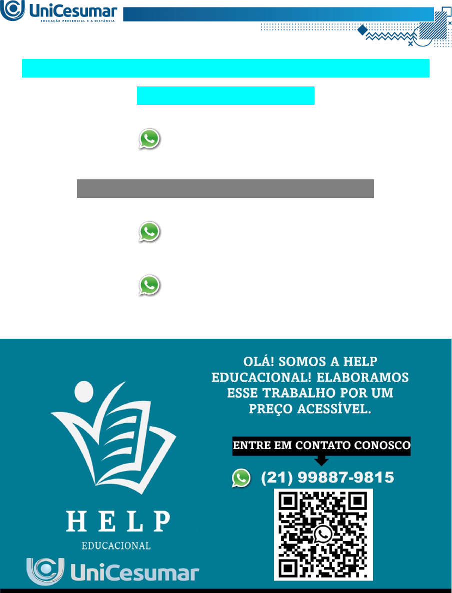 <p>MAPA – LET - LITERATURA PORTUGUESA E PAÍSES LUSÓFONOS - 53_2024</p><p>(21) 99887-9815</p><p>ASSESSORIA NOS SEUS TRABALHOS</p><p>(21) 99887-9815</p><p>(21) 99887-9815</p><p>Quem é Matilde Campilho? Para quem nunca ouviu falar dela, acesse o link a seguir para aprender (copie o link e cole em seu navegador):</p><p>https://forbes.com.br/forbes-mulher/2022/12/matilde-campilho-a-luz-por-entre-as-rachaduras/</p><p>Essa escritora portuguesa contemporânea apresenta um vigor e novos olhares dentro de seus poemas que vêm encantando brasileiros e portugueses.</p><p>A partir do estudo sobre a autora, reflita: como apresentá-la para seus alunos do 3° ano do Ensino Médio? Essa não é uma fácil tarefa, por isso, coloque-se no lugar de um(a) professor(a) de literatura que tem o objetivo de apresentar novos autores da literatura portuguesa que ainda estão em atividade e que a sua escolha foi Matilde Campilho, com o poema “Príncipe no roseiral”.</p><p>Poema:</p><p>https://www.lyrikline.org/de/gedichte/principe-no-roseiral-12140</p><p>Após pesquisar um pouco sobre a vida e obra da autora, analisar o poema escolhido, você deve montar um texto com três partes, pensando como se fosse um planejamento para expor para seus alunos. O título do trabalho é somente o nome da autora, logo na sequência deverá constar:</p><p>1ª ETAPA: um breve resumo de sua vida e obra, em um texto entre 5 a 10 linhas;</p><p>2ª ETAPA: uma análise do poema em questão (estrutura, linguagem e temática), em um texto entre 8 a 15 linhas;</p><p>3ª ETAPA: fazer um exercício de múltipla escolha sobre o poema, com a resposta e a justificativa.</p><p>Ao final, insira as referências utilizadas para a elaboração do MAPA.</p><p>Atente-se para inserir as três etapas dentro do mesmo formulário, pois são todas partes constituintes da mesma atividade. Não copie, pois trabalhos plagiados não serão corrigidos!</p><p>Além disso, para uma boa execução da atividade:</p><p>a) Atente-se às instruções e intervenções realizadas pelos professores formadores e mediadores em aulas ao vivo e no ambiente on-line de aprendizagem (Studeo), por meio do Mural de avisos e Mensagem.</p><p>b) Assista ao vídeo com explicações sobre a realização da atividade que está disponível no mural de avisos.</p><p>c) Atente-se aos materiais complementares que possam ser utilizados para a realização da atividade. Esses, em caso de uso, estarão na pasta Material da disciplina.</p><p>d) A atividade deve ser apresentada no formulário padrão que está disponível na pasta Material da Disciplina</p><p>e) A atividade precisa ser desenvolvida por você, portanto, não utilize cópias indevidas de atividades já realizadas por terceiros, assim como cópias indevidas de textos disponíveis na web.</p><p>*Em caso de dúvida, entre em contato com a mediação da disciplina.</p><p>Boa atividade!</p><p>OLÁ! SOMOS A HELP EDUCACIONAL! ELABORAMOS ESSE TRABALHO POR UM PREÇO ACESSÍVEL.</p><p>ENTRE EM CONTATO CONOSCO</p><p>(21) 99887-9815</p><p>image1.png</p><p>image2.png</p><p>image3.png</p>