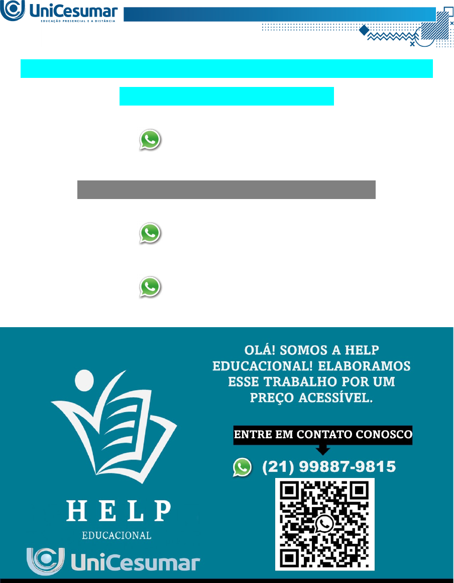 <p>MAPA – PORTFÓLIO – LET - PRÁTICA PEDAGÓGICA: LÍNGUA INGLESA - 53_2024</p><p>(21) 99887-9815</p><p>ASSESSORIA NOS SEUS TRABALHOS</p><p>(21) 99887-9815</p><p>(21) 99887-9815</p><p>Procure uma escola de ensino regular (Fundamental II e/ou Médio) e converse com o(a) coordenador(a) pedagógico do estabelecimento (se for necessário, agende previamente um horário com essa pessoa). Apresente-se enquanto acadêmico(a) do curso de Letras Português-Inglês, comprovando tal condição com os documentos: carta de apresentação do material da disciplina, matrícula, carteira de estudante, histórico parcial, etc.</p><p>Apresente o planejamento que você desenvolveu para 2 horas/aulas em língua inglesa na Atividade 1 da disciplina e verifique a possibilidade de você aplicá-lo em uma das turmas da escola, sob a supervisão de um(a) professor(a) regente de língua inglesa. Dependendo da resposta da coordenação, realize os seguintes passos:</p><p>A) Caso a coordenação permita a aplicação das aulas, peça para que o responsável preencha, assine e coloque o carimbo do estabelecimento no Documento I (Modelo em anexo no Material da disciplina). Depois, de acordo com as datas e horários previamente acordados com a escola, aplique suas aulas; em seguida, redija um relato de sua experiência, incluindo uma breve descrição da turma, e, depois, mais detalhadamente, o desenrolar das aulas (suas ações e a resposta dos alunos nas interações em sala de aula). Utilize o Formulário template do MAPA, que está no Material da disciplina para redação e envio do seu relato de experiência.</p><p>OU</p><p>B) Caso não haja a anuência da coordenação para que você aplique as aulas, peça para que o responsável receba seu plano de aulas como uma ideia para algum professor de inglês aplicar. Depois, peça a ele/a para preencher, assinar e colocar o carimbo do estabelecimento no Documento II (Modelo em anexo no Material da disciplina). Em seguida, redija um relato de sua experiência na escola, descrevendo a conversa com o(a) coordenador(a) e explicitando os motivos pelos quais ele(a) não concordou com a aplicação de suas aulas na instituição. Utilize o Formulário template do MAPA, que está no Material da disciplina para redação e envio do seu relato de experiência.</p><p>Documento I</p><p>Eu, ______________________________________________________________________, coordenador(a) pedagógico(a) do estabelecimento educacional _______________</p><p>__________________________________________________________________________, situado no endereço _______________________________________________________, na cidade de _______________________________________________________, no estado _________________________________________, inscrito sob o CNPJ _______________________________, declaro, para os devidos fins, que o(a) acadêmico(a) _____________________________________________________________, CPF _________________________________________do Curso de Letras Português/Inglês da Unicesumar, tem autorização para ministrar, sob a supervisão de um professor de língua inglesa, o total de 2h/a de língua inglesa na turma ___________________, nas datas _________________________________________________________________.</p><p>Cidade:</p><p>Data:</p><p>Assinatura do(a) coordenador(a) pedagógico(a):</p><p>Carimbo do estabelecimento:</p><p>Documento II</p><p>Eu, ______________________________________________________________________, coordenador(a) pedagógico(a) do estabelecimento educacional _______________</p><p>__________________________________________________________________________, situado no endereço _______________________________________________________, na cidade de _______________________________________________________, no estado _________________________________________, inscrito sob o CNPJ _______________________________, declaro, para os devidos fins, recebi que do(a) acadêmico(a) _____________________________________________________________, CPF _________________________________________ do Curso de Letras Português/Inglês da Unicesumar, um documento contendo o planejamento referente a 2h/a de língua inglesa, que será entregue a professores da referida disciplina, para possível aplicação total ou parcial das atividades ali contidas.</p><p>Cidade:</p><p>Data:</p><p>Assinatura do(a) coordenador(a) pedagógico(a):</p><p>Carimbo do estabelecimento:</p><p>OLÁ! SOMOS A HELP EDUCACIONAL! ELABORAMOS ESSE TRABALHO POR UM PREÇO ACESSÍVEL.</p><p>ENTRE EM CONTATO CONOSCO</p><p>(21) 99887-9815</p><p>image1.png</p><p>image2.png</p><p>image3.png</p>
