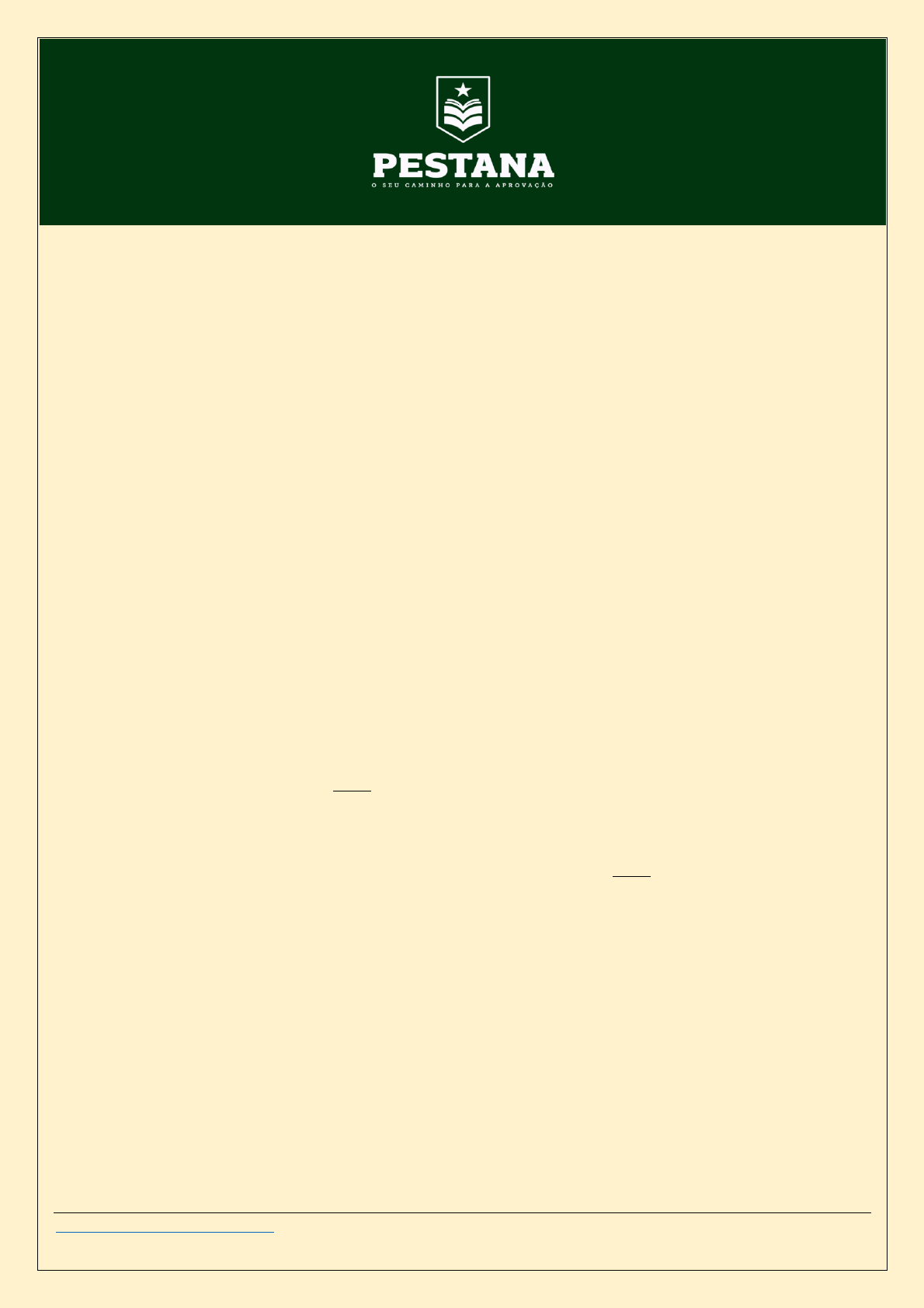 <p>https://pay.kiwify.com.br/fXxBd7F 1</p><p>51) O primeiro país a reconhecer nossa independência foi:</p><p>(A) Inglaterra (B) Argentina (C) Portugal (D) Estados Unidos</p><p>52) O ano de 1824 assinala uma grande revolução – Confederação do Equador, ocorrida na província de:</p><p>(A) Minas Gerais (B) São Paulo (C) Pernambuco (D) Alagoas</p><p>53) O governo de D. Pedro I terminou no dia 7 de abril de 1831 com sua:</p><p>(A) morte (B) volta para a Espanha (C) deposição (D) abdicação</p><p>54) A dissolução da Assembleia Constituinte, em 1823, motivou o seguinte fato histórico imediato:</p><p>(A) Confederação do Equador (B) "Dia do Fico" (C) Guerra da Cisplatina (D) Abdicação de D. Pedro.</p><p>55) No início do governo imperial de D. Pedro I, houve a Revolução da Cisplatina que culminou com a independência do país chamado:</p><p>(A) Bolívia (B) Paraguai (C) Argentina (D) Uruguai</p><p>56) A Constituição de 1824, jurada por D. Pedro I, a 24 de março estabeleceu entre os poderes aquele que seria considerado a "chave de toda</p><p>organização política". Estamos falando do Poder:</p><p>(A) Liberal (B) Legislativo (C) Moderador (D) Popular</p><p>57) A "Noite da Agonia" teve relação imediata com:</p><p>(A) a dissolução da Assembleia Constituinte. (B) a Guerra da Cisplatina (C) a morte de Libero Badaró em São Paulo.</p><p>(D) a luta entre brasileiros e portugueses, logo após a volta de D. Pedro I de Minas Gerais.</p><p>58) Integra o conteúdo da Constituição de 1824, exceto a (o):</p><p>(A) forma de governo monárquica (B) religião católica (C) voto universal (D) existência de quatro poderes</p><p>(E) poder centralizado nas mãos do Imperador.</p><p>59) Entre as causas da abdicação de D. Pedro I ao trono brasileiro podem ser citadas as seguintes, exceto:</p><p>(A) a oposição da Igreja Católica a D. Pedro I. (B) a tendência autoritária do Imperador.</p><p>(C) as ligações mantidas por D. Pedro em Portugal, após 1826. (D) as guerras Cisplatina e a independência do Uruguai.</p><p>(E) os conflitos políticos entre brasileiros e portugueses.</p><p>60) No dia 25 de março de 1824, D. Pedro I outorgou a primeira Constituição brasileira, que tinha como características o(a)</p><p>A) religião católica e voto universal. B) Poder Moderador e Senado vitalício.</p><p>C) liberdade administrativa às províncias e voto censitário. D) magistrados nomeados pelo imperador e religião protestante.</p><p>E) voto extensivo às mulheres e Poder Moderador.</p><p>61) A primeira lei contra o tráfico africano de escravos foi assinada em 7 de novembro de 1831, graças ao esforço do então Ministro da justiça:</p><p>(A) Visconde do Rio Branco (B) Eusébio de Queirós (C) Padre Feijó (D) José Bonifácio</p><p>https://pay.kiwify.com.br/fXxBd7F</p><p>https://pay.kiwify.com.br/fXxBd7F 2</p><p>62) O Período Regencial foi agitado por frequentes perturbações da ordem pública. O fato que determinou o término dessa fase de nossa história</p><p>foi o (a) :</p><p>(A) Maioridade de D. Pedro II (B) Dia do Fico (C) Proclamação da República (D) Guerra do Paraguai</p><p>63) O Período Regencial (1831-1840) caracterizou-se politicamente por:</p><p>(A) estabilidade de governo (B) instituição do regime presidencialista.</p><p>(C) Gênese das ideias republicanas. (D) Eclosão de graves movimentos sediciosos no País</p><p>64) Com a morte de D. Pedro I, em 1834, desapareceu o partido:</p><p>(A) Republicano (B) Moderado (C) Caramuru (D) Jurujuba</p><p>65) A criação da Guarda Nacional, em 1831 durante o Governo Regencial, teve como um de seus objetivos:</p><p>(A) Apoiar o governo de D. Pedro I na consolidação da Independência. (B) Defender a integridade das fronteiras ameaçadas de invasão.</p><p>(C) Substituir as tropas que formavam as milícias do Exército. (D) Conter as agitações e amotinações que perturbavam a nação</p><p>66) Uma das modificações constitucionais do Ato Adicional votado em 1834 previa:</p><p>(A) a proibição da imprensa em noticiar os trabalhos legislativos.</p><p>(B) que a Regência Trina fosse mantida com o referendo de eleições populares.</p><p>(C) a decretação imediata da maioridade de D. Pedro II.</p><p>(D) a inelegibilidade dos "liberais exaltados".</p><p>(E) que a Regência Trina se transformasse em Regência Una.</p><p>67) Em 1831, durante o Período Regencial, em resposta às agitações militares e populares, criou-se pelos moderados o (a)</p><p>A) Guarda Nacional. B) Conselho de Estado. C) Clube da Maioridade. D) Regência Una de Feijó.</p><p>E) Código do Processo Criminal.</p><p>68) Qual importante medida administrativa foi tomada em 1834, realizada a partir da modificação na constituição brasileira?</p><p>A) As assinaturas das Tarifas Alves Branco. B) A abertura dos portos às nações amigas.</p><p>C) A cidade do Rio de Janeiro tornou-se município neutro. D) A aprovação da Lei das Terras.</p><p>E) A assinatura do Tratado de Navegação e Comércio com a Inglaterra.</p><p>69) Luís Alves de Lima e Silva recebeu o título de Barão de Caxias, quando derrotou os balaios:</p><p>(A) na Bahia (B) no Pará (C) no Maranhão (D) em Pernambuco</p><p>70) Correlacione os estados com os eventos da coluna da esquerda e assinale a resposta que contém a sequência correta:</p><p>1- Rio Grande do Sul 2 – Pernambuco 3- Grão-Pará 4- São Paulo</p><p>5- Bahia 6- Maranhão 7- Rio de Janeiro</p><p>( ) Sabinada ( ) Farroupilha ( ) Cabanagem ( ) Balaiada</p><p>(A) 6 – 7 – 2 – 4 (B) 1 – 4 – 7 – 2 (C) 5 – 1 – 3 – 6 (D) 3 – 1 – 6 – 4</p><p>https://pay.kiwify.com.br/fXxBd7F</p><p>https://pay.kiwify.com.br/fXxBd7F 3</p><p>71) Os chefes da mais longa das revoluções brasileiras, a Farroupilha ou Guerra dos Farrapos, ocorrida no atual Rio Grande do Sul, proclamaram</p><p>a chamada República:</p><p>(A) Juliana (B) Piratini (C) Gaúcha (D) Federativa</p><p>72) Com relação à Guerra dos Farrapos, podemos afirm
