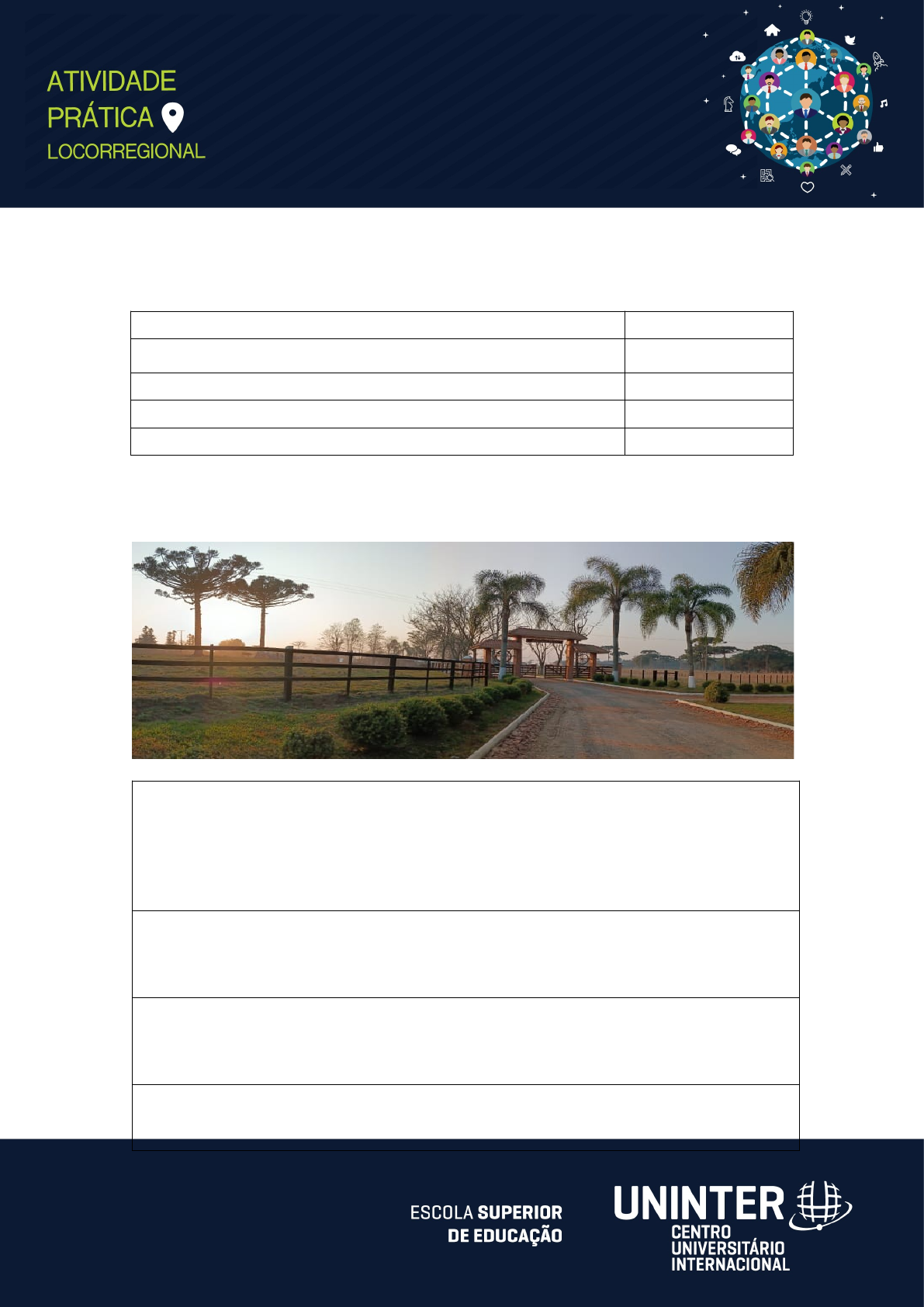 <p>FICHA-RESPOSTA</p><p>ATIVIDADE PRÁTICA LOCORREGIONAL - 2024</p><p>LABORATÓRIO DE ARTES VISUAIS – AUDIOVISUAL E ANIMAÇÃO</p><p>NOME DO ALUNO</p><p>RU DO ALUNO</p><p>1. SIRLENE OLIVEIRA DA SILVA NOGUEIRA</p><p>2800264</p><p>2.</p><p>3.</p><p>4.</p><p>ATIVIDADE 01: (Fotografia da edificação e escrever porque escolheu)</p><p>Escolhi este local por estar próximo a minha realidade, é uma entrada de uma fazenda muito conhecida na região por ela representar a raça do gado nelore PO e o gado europeu Pardo Suíço, que tem bastante procura de outros produtores.</p><p>Esse local chama bastante atenção por mostrar a beleza natural, e ao mesmo tempo moderna pelas qualidades citadas acima.</p><p>Fiz uma breve animação expressando a beleza que a natureza nos proporciona, podendo aproveitar o cenário que ali estava enriquecedor .</p><p>ATIVIDADE 02: INSIRA AQUI O LINK DO SEU VÍDEO</p><p>https://youtu.be/VT-PW-OEtiw?feature=shared</p><p>image2.jpg</p><p>image3.png</p>