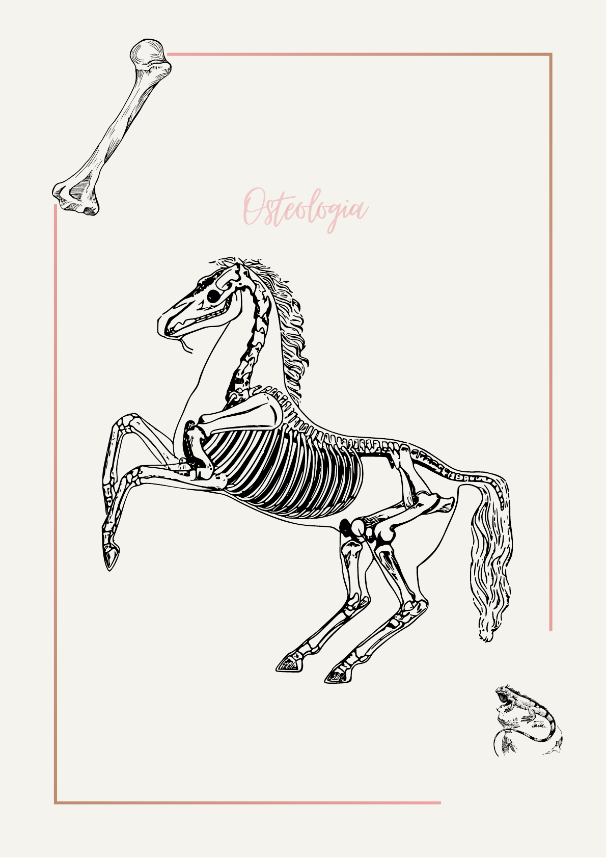<p>Anatomia Veterinária</p><p>OsteologiaOsteologia</p><p>Este material fora desenvolvido para fins acadêmicos. É somente um resumo</p><p>aprofundado a partir de anotações, não substituindo o estudo individual de</p><p>cada um. A cópia deste material estará sujeito à ações judiciais.</p><p>@</p><p>vet.julianacav</p><p>alc</p><p>an</p><p>te</p><p>Anatomia Veterinária</p><p>OsteologiaOsteologia</p><p>Este material fora desenvolvido para fins acadêmicos. É somente um resumo</p><p>aprofundado a partir de anotações, não substituindo o estudo individual de</p><p>cada um. A cópia deste material estará sujeito à ações judiciais.</p><p>@</p><p>vet.julianacav</p><p>alc</p><p>an</p><p>te</p><p>1. Planos e eixos</p><p>2. Osteologia - Esqueleto axial</p><p>Funções dos ossos</p><p>Classificações</p><p>Número de ossos</p><p>Estrutura dos ossos</p><p>Arquitetura dos ossos</p><p>Componentes dos ossos</p><p>Zonas anatômicas</p><p>Ossos do crânio</p><p>Ossos da face</p><p>Coluna vertebral</p><p>Costelas</p><p>Esterno</p><p>3. Osteologia - Esqueleto apendicular torácico</p><p>Acidentes ósseos</p><p>Escápula</p><p>Úmero</p><p>Rádio e ulna</p><p>Carpo, metacarpo e falanges</p><p>4. Osteologia - Esqueleto apendicular pélvico</p><p>Pelve (quadril)</p><p>Fêmur</p><p>Tíbia e fíbula</p><p>Tarso, metatarso e falanges</p><p>Pág. 2</p><p>Pág. 7</p><p>Pág. 3</p><p>Pág. 10</p><p>Pág. 4</p><p>Pág. 5</p><p>Pág. 8</p><p>Pág. 9</p><p>Pág. 11</p><p>cabeça</p><p>tronco</p><p>cauda</p><p>apendicular</p><p>torácicoapendicular</p><p>pélvico</p><p>O corpo do animal é dividido em seis eixos:</p><p>a) plano dorsal</p><p>b) plano ventral</p><p>c) plano cranial</p><p>d) plano caudal</p><p>e) plano lateral direito</p><p>f) plano lateral esquerdo</p><p>Planos e eixosPlanos e eixos</p><p>Antes de começar a estudar a osteologia</p><p>propriamente dita, é necessário entender os planos e</p><p>eixos no corpo animal;</p><p>Para começar, o animal deve estar em estação</p><p>(apoiado nas quatro patas);</p><p>O corpo do animal é divido em cinco partes: cabeça,</p><p>pescoço, tronco, cauda e patas;</p><p>O esqueleto axial é composto por cabeça, coluna</p><p>vertebral, esterno e costelas;</p><p>Os membros locomotores (apendiculares) são divididos</p><p>em torácico 9escápula até os dígitos) e pélvico (coxal</p><p>até os dígitos);</p><p>plano dorsal</p><p>plano ventral</p><p>pla</p><p>no</p><p>ca</p><p>ud</p><p>al</p><p>plano cranial</p><p>lateral D/E</p><p>Para localizar os ossos e órgãos do corpo, utiliza-se</p><p>eixos imaginários:</p><p>Além disso, a cabeça é dividida entre rostral-cranial</p><p>Os planos paralelos ao medial são chamados de sagitais</p><p>(como se fosse o medial do medial)</p><p>a) eixo dorso-ventral</p><p>b) eixo latero-lateral</p><p>c) eixo crânio-caudal</p><p>d) eixo transversal (horizontal/ mediano)</p><p>e) eixo paramediano (D/E - medial/ lateral)</p><p>Já o esqueleto apendicular é dividido em:</p><p>a) torácico:</p><p>proximal-distal/ lateral-medial/ cranial-caudal/</p><p>dorsal-palmar</p><p>b) pélvico:</p><p>proximal-distal/ lateral-medial/ cranial-caudal/</p><p>dorsal-plantar</p><p>@</p><p>vet.julianacav</p><p>alc</p><p>an</p><p>te</p><p>Osteologia - esqueleto axialOsteologia - esqueleto axial</p><p>Existem cinco tipos diferentes de classificação dos</p><p>ossos:</p><p>ossos longos: apresentam uma forma cilíndrica</p><p>alongada com extremidades alargadas. Tem função</p><p>de alavanca e suporte e, além disso, apresenta</p><p>cavidade medular.</p><p>ossos planos: são expandidos em duas direções. Possuem</p><p>a função de proteção e servem de superfície de</p><p>contato para a musculatura. Apresentam uma</p><p>interposição de osso esponjoso, medula óssea ee osso</p><p>compacto.</p><p>ossos curtos: apresentam formas similares em</p><p>comprimento, largura e espessura. Possuem a função</p><p>de diminuir a fricção ou força de tensão.</p><p>ossos irregulares: apresentam formação única, são</p><p>medianos e em quantidade ímpar. Tem a função de</p><p>proteção e são adaptados para isso.</p><p>ossos pneumáticos: contém espaços ara entrada e saída</p><p>de ar.</p><p>Ex.: fêmur, úmero, tíbia</p><p>Ex.: ossos do crânio, escápula</p><p>Ex.: carpo, tarso, sesamóides</p><p>Ex.: vértebras e alguns ossos do crânio</p><p>Ex.: maxilar, osso frontal e nasal</p><p>Funções dos ossos</p><p>Ramo da anatomia que estuda os ossos, cartilagens,</p><p>articulações e ligamentos</p><p>Sustentação</p><p>Rigidez</p><p>Conformação</p><p>Hematopoiese</p><p>Proteção</p><p>Classificação</p><p>Número de ossos</p><p>É variável entre as espécies e entre os indivíduos de</p><p>uma mesma espécie;</p><p>Cachorros: 12 a 14 pares de costelas/ coluna</p><p>vertebral com 7 vértebras cervicais, 13 torácicas, 7</p><p>lombares e 3 sacrais.</p><p>Equino: 18 costelas.</p><p>Existe um processo chamado sinostose, que seria a</p><p>fusão entre alguns ossos em animais adultos, fazendo</p><p>com que o número de ossos diminua.</p><p>Ex.: vértebras sacrais do bovino que são fusionadas.</p><p>Estrutura dos ossos</p><p>Ossos são estruturas vivas com nervos, vasos</p><p>sanguíneos e vasos linfáticos;</p><p>Eles são capazes de crescer, mineralizar, reforçar</p><p>sua estrutura e cicatrizar;</p><p>Perdem e ganham densidade por conta dos sais</p><p>inorgânicos que possuem.</p><p>São fontes de eritrócitos, portanto, são considerados</p><p>hematopoiéticos;</p><p>Arquitetura dos ossos</p><p>Substância compacta: estrutura densa do corpo que é</p><p>variável de espessura entre as espécies;</p><p>Substância esponjosa: são lâminas ósseas que formam</p><p>os espaços aéreos na superfície compacta. Nutre a</p><p>estrutura óssea;</p><p>Canal medular: espaço interno do osso onde se</p><p>encontra a medula óssea amarela e vermelha. É a</p><p>zona viva do osso;</p><p>Periósteo: membrana fibrosa que reveste a superfície</p>