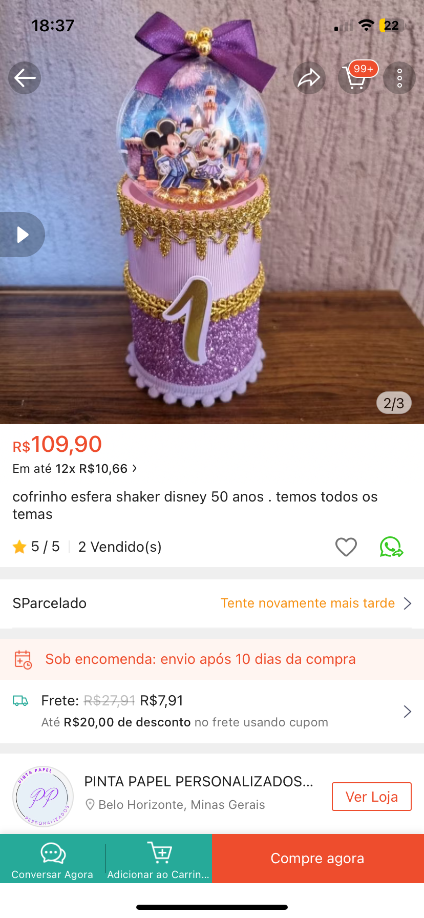 <p>99+ 2/3 R$109,90 Em até 12x R$10,66 > cofrinho esfera shaker disney 50 anos . temos todos os temas 5/5 2 Vendido(s) SParcelado Tente novamente mais tarde > Sob encomenda: envio após 10 dias da compra Frete: R$27,91 R$7,91 Até R$20,00 de desconto no frete usando cupom PAPEL PINTA PAPEL PERSONALIZADOS.. PP Ver Loja Belo Horizonte, Minas Gerais Compre agora Conversar Agora Adicionar ao Carrin...</p>