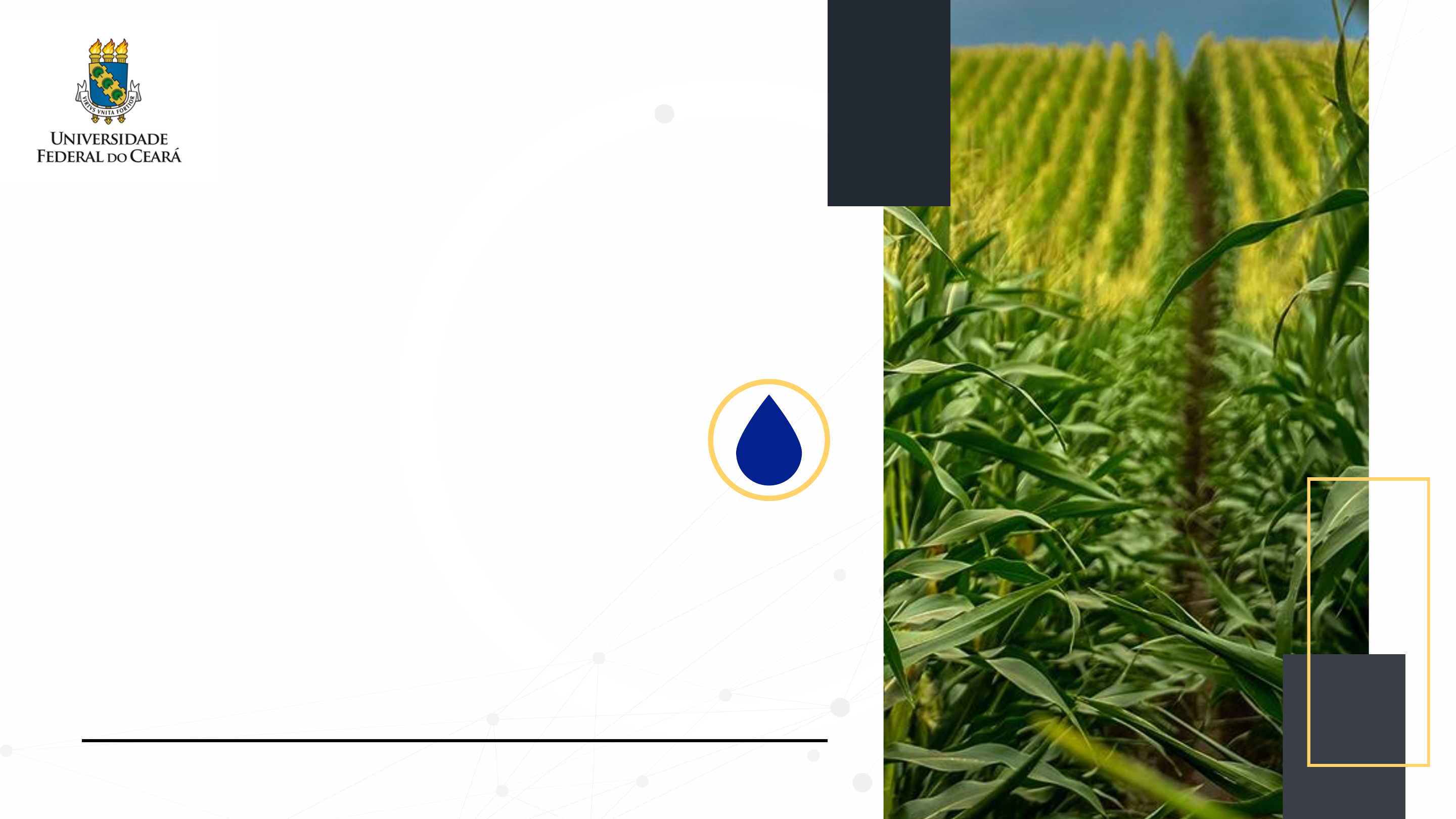 <p>PROJETO DE IRRIGAÇÃO POR ASPERSÃO NA</p><p>CULTURA DO MILHO</p><p>Daniel Dantas - 484863</p><p>UNIVERSIDADE FEDERAL DO CEARÁ</p><p>CENTRO DE CIÊNCIAS AGRÁRIAS</p><p>DEPARTAMENTO DE ENGENHARIA AGRÍCOLA</p><p>AD0196 - IRRIGAÇÃO E DRENAGEM</p><p>PROF. ALAN BERNARD OLIVEIRA DE SOUSA</p><p>Renan Pereira - 479264</p><p>INTRODUÇÃO</p><p>A irrigação é uma prática importante</p><p>para garantir a produtividade das</p><p>plantações de milho, especialmente em</p><p>regiões que apresentam secas</p><p>prolongadas ou veranicos.</p><p>Ela é essencial para manter o solo</p><p>úmido e nutrido, favorecendo o</p><p>crescimento das plantas e a qualidade</p><p>dos grãos. No entanto, é fundamental</p><p>saber como fazer a irrigação de maneira</p><p>adequada para que ela seja eficiente e</p><p>não afete a saúde das plantas nem do</p><p>solo.</p><p>DIMENSIONAMENTO</p><p>AGRONÔMICO</p><p>2.1 IRRIGAÇÃO REAL NECESSÁRIA (IRN)</p><p>2.2 IRRIGAÇÃO TOTAL NECESSÁRIA (ITN)</p><p>2.3 TURNO DE REGA (TR)</p><p>2.4 PERÍODO DE IRRIGAÇÃO (PI)</p><p>2.5 VELOCIDADE DE INFILTRAÇÃO BÁSICA (VIB)</p><p>2.6 TEMPO DE IRRIGAÇÃO (TI)</p><p>2.7 TEMPO NECESSÁRIO POR POSIÇÃO (TNP)</p><p>2.8 NÚMERO TOTAL DE POSIÇÕES (NTP)</p><p>2.9 NÚMERO DE POSIÇÕES LINHA LATERAL/DIA (NPLD)</p><p>2.10 NÚMERO DE POSIÇÕES A SEREM IRRIGADAS/DIA (NPID)</p><p>2.11 NÚMERO DE LINHAS LATERAIS (NLL)</p><p>PROJETO</p><p>HIDRÁULICO</p><p>3.1 DADOS</p><p>Dimensionar um projeto de irrigação por aspersão para as seguintes</p><p>características:</p><p>a) Cultura: milho;</p><p>b) Profundidade do sistema radicular: 35 cm;</p><p>c) Evapotranspiração crítica: 5 mm/dia;</p><p>d) A LLmax deverá ser igual a CRA, f=0,5;</p><p>e) CC: 34,8% (massa), PM: 18,1% (massa);</p><p>f) Densidade aparente do solo; 1,3 g/cm³ ;</p><p>g) Velocidade de infiltração básica: 16 mm/h;</p><p>h) característica do aspersor:</p><p>* Fabrimar;</p><p>* Diâmetro dos bocais 4,0 X 4,6 (mm);</p><p>* Pressão de serviço do aspersor (P.S): 30 m.c.a;</p><p>* Espaçamento: 12 X 12 (m), altura aspersor=2,0 m;</p><p>* Vazão do aspersor: 2,19 m³/h;</p><p>* Intensidade de aplicação: IA = ??? mm/h.</p><p>3.1 DADOS</p><p>Dimensionar um projeto de irrigação por aspersão para as seguintes características:</p><p>i) Característica da tubulação: PVC;</p><p>j) Horas de trabalho por dia = 10 horas/ Mudança de tubulação=0,4h;</p><p>k) Eficiências: - conjunto motobomba - irrigação: 85%.</p><p>l) Características da área:</p><p>• Comprimento 168 m</p><p>• Largura: 240 m</p><p>• Distância da fonte de água até a área a ser irrigada: 102 m;</p><p>• Desnível a casa de bombas até a superfície da água=5m</p><p>3.1 DADOS</p><p>Dimensionar um projeto de irrigação por aspersão para as seguintes características:</p><p>3.2 ASPERSOR</p><p>3.2 ASPERSOR</p><p>3.3 LINHA LATERAL</p><p>3.3 LINHA LATERAL</p><p>3.3 LINHA LATERAL</p><p>3.4 LINHA PRINCIPAL</p><p>3.4 LINHA PRINCIPAL</p><p>3.5 RECALQUE</p><p>3.5 RECALQUE</p><p>3.6 SUCÇÃO</p><p>3.7 HM E VAZÃO DO SISTEMA</p><p>3.8 MOTOBOMBA E CONSUMO</p><p>ESCOLHA DA BOMBA COMPATÍVEL COM NPSHD,</p><p>POTÊNCIA, VAZÃO E PRESSÃO CÁLCULADOS</p><p>OBRIGADO</p><p>PELA ATENÇÃO!</p><p>danieldlopes@alu.ufc.br</p><p>renancosta0599@gmail.com</p>