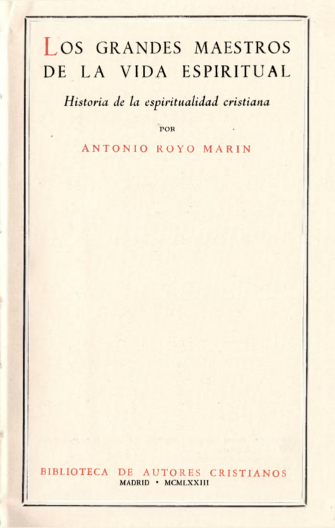<p>L O S GRANDES MAESTROS</p><p>DE LA VIDA ESPIRITUAL</p><p>Historia de la espiritualidad cristiana</p><p>P O R</p><p>A N T O N I O R O Y O M A R Í N</p><p>B I B L I O T E C A D E A U T O R E S C R I S T I A N O S</p><p>M A D R I D • M C M L X X I I I</p><p>(g) Biblioteca de Autores Cristianos, de La Editorial Católica, S. A. Madrid 1973</p><p>Con censura eclesiástica</p><p>Depósito legal M 323S>1-1S>73</p><p>ISBN 84-220-0650-2</p><p>Impreso en España. Printed in Spain</p><p>A. la Inmaculada Virgen María, Madre de</p><p>Dios y de la Iglesia, espejo de todas las vir</p><p>tudes y Maestra incomparable de la vida</p><p>espiritual.</p><p>Í N D I C E G E N E R A L</p><p>Pdgs.</p><p>A L LECTOR I X</p><p>PRIMERA PARTE.—Los fundamentos de la espiritualidad cris</p><p>tiana 3</p><p>CAPÍTULOS :</p><p>1. La doctrina de Jesús y de los Apóstoles 3</p><p>2. Los Padres Apostólicos 35</p><p>SEGUNDA PARTE.—Edad antigua 51</p><p>CAPÍTULOS :</p><p>1. El monacato oriental 5 1</p><p>2. El monacato occidental 69</p><p>3. San Agustín 101</p><p>4. Otros grandes maestros de la antigüedad (siglos n-ix) 127</p><p>TERCERA PARTE.—Edad Media 153</p><p>CAPÍTULOS:</p><p>1. Escuela benedictina 155</p><p>2. Escuela de San Víctor 184</p><p>3. Escuela cartujana 190</p><p>4. Santo Tomás de Aquino 195</p><p>5. Escuela dominicana 218</p><p>6. Escuela franciscana 247</p><p>7. Autores independientes 264</p><p>CUARTA PARTE.—Edad Moderna 281</p><p>CAPÍTULOS :</p><p>1. Escuela benedictina 282</p><p>2. Escuela dominicana 288</p><p>3. Escuela franciscana 301</p><p>4. Escuela agustiniana 311</p><p>5. Escuela carmelitana 3 : 7</p><p>6. Santa Teresa de Jesús 322</p><p>7. San Juan de la Cruz 345</p><p>8. Santa Teresa del Niño Jesús 361</p><p>9. Escuela ignaciana 374</p><p>10. Escuela salesiana 39°</p><p>1 1 . Escuela francesa del siglo XVII 4°°</p><p>12. Autores independientes (siglos XVI-XIX) 412</p><p>VIII Índice general</p><p>Págs.</p><p>QUINTA P A R T E . — É p o c a contemporánea (siglo XX) 431</p><p>CAPÍTULOS:</p><p>1. Escuela benedictina 432</p><p>2. Escuela dominicana 437</p><p>3. Escuela carmelitana 44^</p><p>4. Escuela ignaciana 452</p><p>5. Autores independientes 45&</p><p>6. La doctrina espiritual del concilio Vaticano II 472</p><p>APÉNDICE.—Herejías y desviaciones místicas 478</p><p>ÍNDICE ANALÍTICO 487</p><p>AL L E C T O R</p><p>\ 7AMOS a explicarle brevemente al lector el porqué y las</p><p>" características fundamentales del libro que tiene entre</p><p>sus manos.</p><p>Al frente de nuestra Teología de la perfección cristiana, pu</p><p>blicada en esta misma colección de la BAC, figura un amplí</p><p>simo «Resumen histórico-bibliográfico», en el que recogemos</p><p>nominalmente los principales autores y obras de espiritualidad</p><p>más importantes que han aparecido en el seno de la Iglesia</p><p>desde la época patrística hasta nuestros días. La crítica recibió</p><p>con mucho elogio dicho «Resumen histórico», que hemos man</p><p>tenido en todas las ediciones de la obra</p><p>Sin embargo, hace mucho tiempo veníamos acariciando el</p><p>proyecto de ampliar considerablemente aquel «Resumen histó</p><p>rico», convirtiéndolo en una verdadera Historia de la espiritua</p><p>lidad cristiana. Hoy tenemos el gusto de ofrecer al lector el</p><p>fruto de nuestros esfuerzos.</p><p>Se ha dicho muchas veces que la historia es la maestra de</p><p>la vida. Tratándose de la vida espiritual, esta afirmación alcan</p><p>za su máximo exponente, ya que la evolución histórica del pen</p><p>samiento cristiano, plasmado en las obras de los grandes maes</p><p>tros de la espiritualidad, ha ejercido enorme influencia en el</p><p>«estilo de vida» y en la práctica de la vida cristiana a través de</p><p>los siglos.</p><p>Porque hay que tener en cuenta que en la espiritualidad</p><p>cristiana cabe distinguir una doble vertiente. De un lado existe</p><p>un núcleo fundamental, que no ha cambiado ni cambiará jamás</p><p>hasta el fin de los tiempos. Nadie se santificará jamás sin su</p><p>incorporación a Cristo a través de la gracia santificante, los</p><p>sacramentos, la práctica de las virtudes sobrenaturales, etc.</p><p>Sobre esto no es posible abrigar la menor duda. Pero, en la</p><p>aplicación concreta de esos elementos esenciales de la vida</p><p>cristiana a los hombres inmersos en una determinada época</p><p>de la historia, es imprescindible tener en cuenta las circuns</p><p>tancias infinitamente variantes que les rodean. Hay un abismo,</p><p>por ejemplo, entre los procedimientos de santificación emplea</p><p>dos por el monacato primitivo, los frailes medievales y los</p><p>modernos institutos seculares de perfección—pasando por las</p><p>1 En la actualidad (1973) se encuentra en su quinta edición española, con 88.000 ejem</p><p>plares editados. Está traducida al italiano (cinco ediciones) y al inglés (dos ediciones U S A ) .</p><p>X Al lector</p><p>mil circunstancias históricas intermedias—, a pesar de que el</p><p>núcleo fundamental permanezca siempre el mismo e idéntico</p><p>para todos.</p><p>Se impone, pues, el estudio sereno y objetivo de la historia</p><p>si queremos comprender, sin extrañeza ni escándalo, la evolu</p><p>ción de la espiritualidad cristiana a través de los siglos y la</p><p>aplicación concreta de sus elementos esenciales a las diferentes</p><p>épocas, lugares, culturas y medio ambiente que han rodeado</p><p>a los hombres.</p><p>Como puede comprobar el lector por la simple lectura del</p><p>índice sintético colocado al frente del volumen, hemos dividido</p><p>nuestra obra en cinco partes, a base de los datos bíblicos del</p><p>Nuevo Testamento—completados por los de los Padres Apos</p><p>tólicos—y de las cuatro edades clásicas, antigua, media, mo</p><p>derna y contemporánea. En esta última hemos omitido total</p><p>mente los autores que viven todavía al publicarse esta obra.</p><p>Nos apresuramos a decir que 
