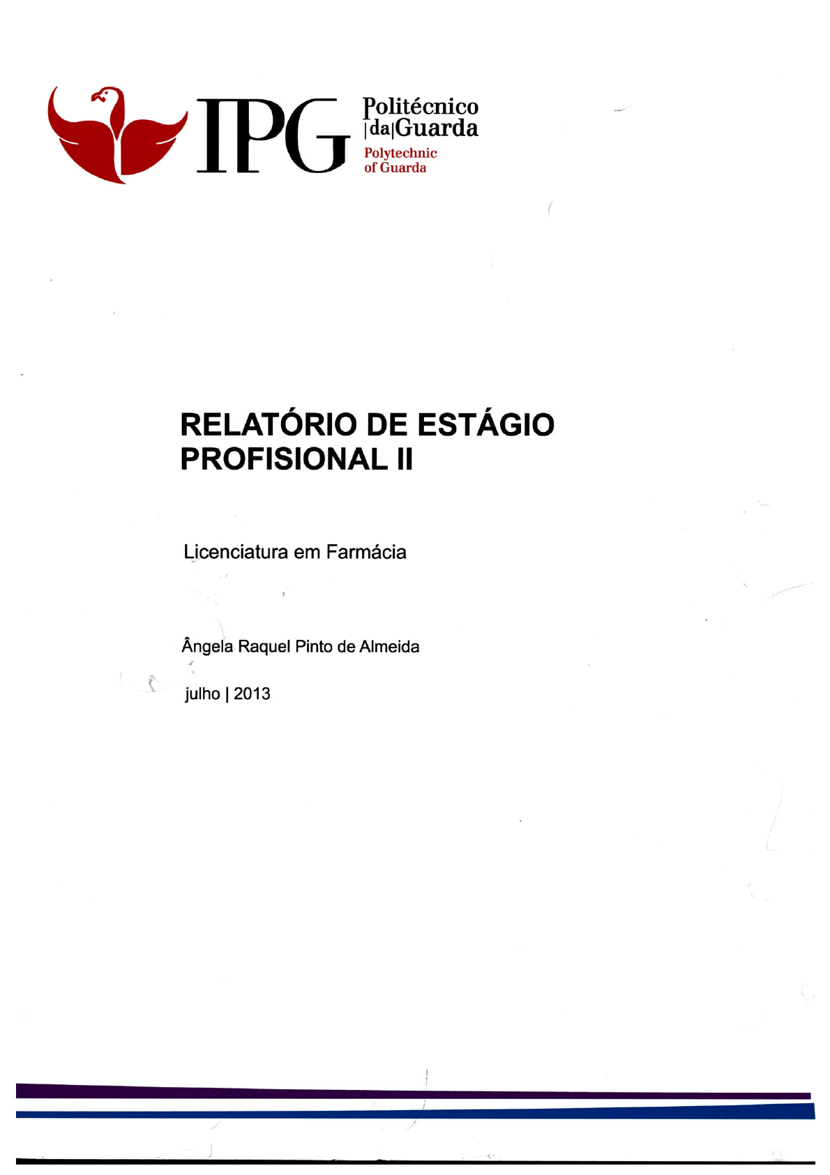 <p>ESCOLA SUPERIOR DE SAÚDE</p><p>INSTITUTO POLITÉCNICO DA GUARDA</p><p>RELATÓRIO DE ESTÁGIO PROFISSIONAL II</p><p>ÂNGELA RAQUEL PINTO DE ALMEIDA</p><p>CURSO FARMÁCIA - 1º CICLO</p><p>Julho 2013</p><p>Escola Superior de Saúde</p><p>ESCOLA SUPERIOR DE SAÚDE</p><p>INSTITUTO POLITÉCNICO DA GUARDA</p><p>RELATÓRIO DE ESTÁGIO PROFISSIONAL II</p><p>CURSO FARMÁCIA - 1º CICLO</p><p>4º ANO /1º SEMESTRE</p><p>ESTÁGIO EM FARMÁCIA COMUNITÁRIA</p><p>ORIENTANDO: ÂNGELA RAQUEL PINTO DE ALMEIDA</p><p>Orientador: André Araújo Pereira</p><p>Supervisor: Madalena de Castro Nery</p><p>Junho 2013</p><p>AGRADECIMENTOS:</p><p>Este último estágio da minha licenciatura surgiu para enriquecer todos os meus</p><p>conhecimentos. Por me ter possibilitado a realização deste estágio tenho que agradecer:</p><p>À minha orientadora de estágio/Diretora Técnica, Dra. Madalena Nery, por me ter</p><p>aceite como estagiária e por todo o apoio e disponibilidade.</p><p>Por a farmácia ter mudado de gerência ainda no período do meu estágio, à Dra.</p><p>Helena Moura e ao Dr. António Moura, à TAF Vânia Lopes e à TF Rita Ferreira, que</p><p>sempre se mostraram muito acessíveis e bons colegas de trabalho.</p><p>A toda a equipa antiga e nova da Farmácia Nery por me terem recebido de braços</p><p>abertos e se mostrarem disponíveis para me ajudarem em tudo que eu necessitasse no</p><p>decorrer do meu estágio.</p><p>Por fim, agradeço à Diretora do Curso de Licenciatura em Farmácia da Escola</p><p>Superior de Saúde do Instituto Politécnico da Guarda, Fátima Roque, e ao Coordenador</p><p>de Estágio André Araújo por todas as informações concedidas para o melhor desenrolar</p><p>do nosso estágio.</p><p>A todos, um sincero Muito Obrigado…</p><p>[RELATÓRIO DE ESTÁGIO PROFISSIONAL II - FARMÁCIA COMUNITÁRIA] Ângela Almeida</p><p>PENSAMENTOS:</p><p>“A curiosidade do espirito da busca de princípios certos,</p><p>é o primeiro passo na conquista de sabedoria”</p><p>(Sócrates)</p><p>"Nada está feito enquanto resta alguma coisa para fazer."</p><p>(Rolland, Romain)</p><p>[RELATÓRIO DE ESTÁGIO PROFISSIONAL II - FARMÁCIA COMUNITÁRIA] Ângela Almeida</p><p>SIGLAS:</p><p>ANF - Associação Nacional das Farmácias</p><p>AMI - Assistência Médica Internacional</p><p>DCI – Denominação Comum Internacional</p><p>DL – Decreto-lei</p><p>FEFO – First Expired, First Out</p><p>FIFO – First In, First Out</p><p>FP – Farmacopeia Portuguesa</p><p>HTA – Hipertensão Arterial</p><p>IMC – Índice de Massa Corporal</p><p>INFARMED – Autoridade Nacional do Medicamento e Produtos de Saúde, I. P.</p><p>IVA – Imposto de Valor Acrescentado</p><p>MNSRM – Medicamento Não Sujeito a Receita Médica</p><p>MSRM – Medicamento Sujeito a Receita Médica</p><p>OMS – Organização Mundial de Saúde</p><p>PA – Pressão Arterial</p><p>PVF – Preço de Venda à Farmácia</p><p>PVP – Preço de Venda ao Público</p><p>RAM – Reações Adversas Medicamentosas</p><p>SGQ – Sistema de Gestão da Qualidade</p><p>SNC – Sistema Nervoso Central</p><p>SNF – Sistema Nacional de Farmacovigilância</p><p>SNS – Serviço Nacional de Saúde</p><p>TF – Técnico de Farmácia</p><p>VIH - Vírus da Imunodeficiência Humana</p><p>[RELATÓRIO DE ESTÁGIO PROFISSIONAL II - FARMÁCIA COMUNITÁRIA] Ângela Almeida</p><p>ÍNDICE DE FIGURAS:</p><p>Figura 1- Farmácia Nery (exterior) ..................................................................................... 10</p><p>Figura 2 - FarmaDrive ......................................................................................................... 11</p><p>Figura 3 - Área de atendimento ao público ......................................................................... 12</p><p>Figura 4 - Área de exposição ............................................................................................... 13</p><p>Figura 5 - Robot de Armazenamento e dispensa ................................................................. 14</p><p>Figura 6 - Sala técnica de laboratório .................................................................................. 15</p><p>Figura 7 - Sequência e interação dos processos de qualidade .............. Erro! Marcador não</p><p>definido.</p><p>file:///C:/Users/Ângela/Documents/Farmácia/4º2º/Estágio%20Profissional%20II/Relatório%20Estágio%20Profissional%20II%20-%20Farmácia%20Nery.docx%23_Toc358639000</p><p>[RELATÓRIO DE ESTÁGIO PROFISSIONAL II - FARMÁCIA COMUNITÁRIA] Ângela Almeida</p><p>ÍNDICE</p><p>INTRODUÇÃO ................................................................................................... 8</p><p>1. FARMÁCIA NERY ........................................................................................ 10</p><p>1.1. ENQUADRAMENTO .......................................................................................... 10</p><p>1.2. ORGANIZAÇÃO FÍSICA E FUNCIONAL ........................................................ 11</p><p>1.2.1. Áreas específicas ...................................................................................... 12</p><p>1.2.1.1. Área de atendimento ao público ......................................................... 12</p><p>1.2.1.2. Área de exposição ................................................................................. 12</p><p>1.2.1.3. Área de receção de encomendas .......................................................... 13</p><p>1.2.1.4. Robot de armazenamento e dispensa .................................................. 13</p><p>1.2.1.5. Laboratório ........................................................................................... 15</p><p>1.2.1.6. Sala do utente ........................................................................................ 15</p><p>2. INFORMATIZAÇÃO ..................................................................................... 16</p><p>3. GESTÃO E AQUISIÇÃO DE MEDICAMENTO
