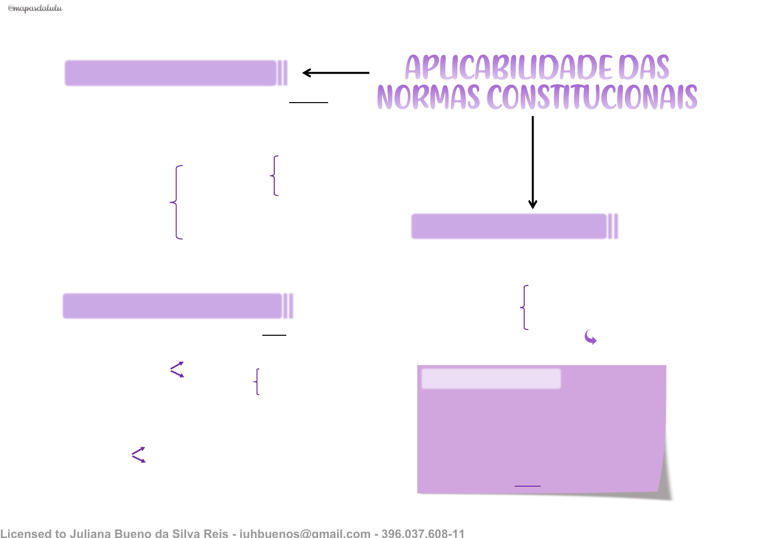 <p>aplicabilidade das</p><p>Direta</p><p>Imediata</p><p>Integral</p><p>NORMAS DE EFICÁCIA CONTIDA</p><p>• Já podem produzir seus efeitos, mas podem</p><p>ser restringidas pelo poder público</p><p>• Características</p><p>• Dependem de regulamentação para só</p><p>depois produzir todos os seus efeitos</p><p>• Características</p><p>• A lei posterior amplia seus efeitos!</p><p>• Grupos</p><p>Aplicabilidade</p><p>Autoaplicáveis</p><p>Restringíveis por:</p><p>Não autoaplicáveis</p><p>Aplicabilidade</p><p>Normas declaratórias de princípios</p><p>institutivos ou organizativos</p><p>Normas declaratórias de princípios</p><p>programáticos</p><p>(a serem desenvolvidos pelo legislativo)</p><p>Indireta</p><p>Mediata</p><p>Reduzida</p><p>Direta</p><p>Imediata</p><p>Possivelmente</p><p>não integral</p><p>1. Leis</p><p>2. Normas constitucionais</p><p>3. Conceitos éticos-jurídicos</p><p>indeterminados</p><p>Atuação discricionária</p><p>do poder público</p><p>(normas infra</p><p>constitucionais)</p><p>NORMAS DE EFICÁCIA LIMITADA</p><p>normas constitucionais</p><p>NORMAS DE EFICÁCIA PLENA</p><p>• Produzem ou já podem produzir todos seus</p><p>efeitos desde a entrada em vigor da CF/88</p><p>• Características</p><p>Autoaplicáveis</p><p>Não-restringíveis</p><p>Aplicabilidade</p><p>• Normas autoexecutáveis:</p><p>• Normas não autoexecutáveis:</p><p>Não há necessidade de</p><p>complementação</p><p>(bastam em si)</p><p>Dependem de complementação</p><p>legislativa antes de serem aplicadas</p><p>DOUTRINA AMERICANA (clássica)</p><p>Licensed to Juliana Bueno da Silva Reis - juhbuenos@gmail.com - 396.037.608-11</p>