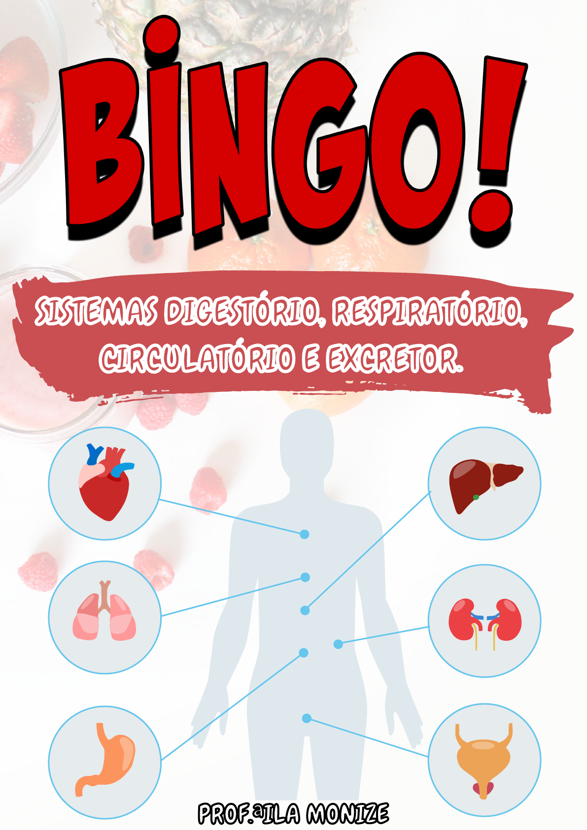 <p>PROF.ªILA MONIZEPROF.ªILA MONIZE</p><p>SISTEMAS DIGESTÓRIO, RESPIRATÓRIO,</p><p>CIRCULATÓRIO E EXCRETOR.</p><p>SISTEMAS DIGESTÓRIO, RESPIRATÓRIO,</p><p>CIRCULATÓRIO E EXCRETOR.</p><p>FÍGADO</p><p>RINS BOCA</p><p>INSPIRAÇÃO</p><p>SANGUE</p><p>ALVÉOLOS</p><p>Fluido vital que é bombeado</p><p>pelo coração, composto de</p><p>plasma, hemácias, plaquetas e</p><p>leucócitos.</p><p>Local onde ocorre a troca gasosa, o</p><p>oxigênio do ar inspirado difunde-se</p><p>para os capilares sanguíneos,</p><p>enquanto o dióxido de carbono do</p><p>sangue difunde-se para ser</p><p>exalado.</p><p>Movimento pelo qual o ar é levado</p><p>para dentro dos pulmões. Os</p><p>músculos intercostais e o diafragma</p><p>se contraem para o pulmão se</p><p>expandir e inflar de ar.</p><p>DIAFRAGMA</p><p>Músculo em forma de cúpula</p><p>localizado abaixo dos pulmões.</p><p>Que ao se contrair e relaxar</p><p>permite que o ar entre e saia dos</p><p>pulmões.</p><p>Movimento em que os músculos do</p><p>diafragma e os músculos</p><p>intercostais relaxam, e os pulmões</p><p>retornam à sua forma original.</p><p>EXPIRAÇÃO</p><p>Órgão anexo do sistema digestório</p><p>responsável pela produção da bile,</p><p>detoxificação, metabolismo de</p><p>nutrientes estão entre as funções</p><p>cruciais desempenhadas por ele.</p><p>Órgão do sistema excretor</p><p>responsável pela filtração do</p><p>sangue, regulação do equilíbrio de</p><p>água e formação de urina.</p><p>Local onde a digestão começa.</p><p>Os dentes trituram os alimentos,</p><p>enquanto a língua os movimenta</p><p>e mistura com a saliva.</p><p>ESTÔMAGO</p><p>CIRCULATÓRIO OU</p><p>CARDIOVASCULAR</p><p>CÁLCULO RENALFEZES</p><p>FARINGE</p><p>Órgão armazena os alimentos</p><p>temporariamente. As células</p><p>gástricas secretam ácido</p><p>clorídrico e enzimas digestivas,</p><p>como a pepsina, que quebram as</p><p>proteínas em peptídeos.</p><p>Estrutura que participa tanto do</p><p>sistema digestório e respiratório.</p><p>Ajuda na deglutição, movendo os</p><p>alimentos da boca para o esôfago ou</p><p>o ar do nariz para laringe.</p><p>INTESTINO DELGADO</p><p>Recebe o quimo e é onde ocorre a</p><p>maior parte da digestão e absorção</p><p>de nutrientes. Enzimas pancreáticas e</p><p>bile são secretadas para digerir os</p><p>carboidratos, gorduras e proteínas.</p><p>Abertura final do sistema</p><p>digestório, onde as fezes são</p><p>eliminadas durante a defecação.</p><p>ÂNUS</p><p>INTESTINO</p><p>GROSSO</p><p>Absorve água e eletrólitos dos</p><p>resíduos alimentares, formando</p><p>fezes.</p><p>São os resíduos de alimento</p><p>não digerido, excretado</p><p>pela defecação.</p><p>Sistema responsável por garantir</p><p>o transporte de sangue pelo</p><p>corpo, permitindo, dessa forma,</p><p>que nossas células recebam, por</p><p>exemplo, nutrientes e oxigênio.</p><p>São massas sólidas formadas por</p><p>minerais e sais ácidos que se</p><p>aglutinam na concentração da urina.</p><p>Pode ser causada pela falta de</p><p>ingestão de água ou comidas com alta</p><p>concentração de sal.</p><p>VASOS SANGUÍNEOS</p><p>URETERES</p><p>OXIGÊNIO</p><p>DIGESTÓRIO</p><p>VEIAS</p><p>URETRA ARTÉRIAS</p><p>URINA</p><p>São componentes essenciais do sistema</p><p>circulatório que formam uma rede</p><p>complexa responsável pelo transporte</p><p>de sangue por todo o corpo. Existem três</p><p>tipos principais: veias, artérias e</p><p>capilares.</p><p>São vasos sanguíneos que</p><p>recolhem o sangue dos capilares</p><p>e o transportam de volta para o</p><p>coração.</p><p>São vasos sanguíneos que</p><p>transportam sangue rico em</p><p>oxigênio do coração para os</p><p>tecidos do corpo.</p><p>Sistema responsável pela digestão</p><p>dos alimentos, absorção de</p><p>nutrientes e eliminação de</p><p>resíduos.</p><p>É um gás incolor, sem gosto e</p><p>inodoro presente na atmosfera, na</p><p>água e muitos compostos orgânicos,</p><p>sendo essencial para a manutenção</p><p>da vida na Terra.</p><p>São dois tubos que ligam os rins</p><p>à bexiga. Fazem parte do</p><p>aparelho urinário,</p><p>É um órgão que garante que a</p><p>urina seja levada da bexiga para</p><p>o meio externo. No homem,</p><p>também faz parte do sistema</p><p>reprodutor.</p><p>É um subproduto líquido do</p><p>corpo, secretada pelos rins,</p><p>depositada na bexiga e excretado</p><p>pela uretra.</p><p>SALIVA</p><p>BRÔNQUIOS</p><p>CORAÇÃO</p><p>RESPIRATÓRIO</p><p>Sistema que permite a entrada do</p><p>oxigênio e a saída do dióxido de</p><p>carbono do corpo.</p><p>São vias que garantem que o ar</p><p>chegue até os alvéolos. Surgem da</p><p>bifurcação da traqueia e</p><p>ramificam-se no interior dos</p><p>pulmões.</p><p>Gás</p><p>carbônico</p><p>Sua representação é (CO2) é um</p><p>gás incolor e inodoro muito</p><p>conhecido como dióxido de</p><p>carbono.</p><p>É um órgão muscular que, por</p><p>meio da sua contração, garante o</p><p>bombeamento do sangue para as</p><p>diferentes partes do corpo.</p><p>Condição em que as vias aéreas de</p><p>uma pessoa ficam inflamadas,</p><p>estreitas e inchadas, além de</p><p>produzirem muco extra, o que</p><p>dificulta a respiração.</p><p>ASMA</p><p>Órgão do olfato, situado no terço</p><p>médio da face e que constitui a</p><p>parte inicial das vias</p><p>respiratórias.</p><p>NARIZ</p><p>É uma secreção aquosa</p><p>transparente secretada pelas</p><p>glândulas salivares diretamente</p><p>na cavidade bucal.</p><p>É uma secreção produzida pelo</p><p>fígado e armazenada na vesícula</p><p>biliar. Essencial para a digestão e</p><p>absorção de gorduras e algumas</p><p>vitaminas.</p><p>BILE</p><p>É um tubo oco formado por</p><p>cartilagens e músculos, localizada</p><p>entre a laringe e os brônquios e</p><p>responsável por conduzir o ar do</p><p>ambiente externo para dentro</p><p>dos pulmões.</p><p>PULMÕESTRAQUÉIA</p><p>EXCRETORBE