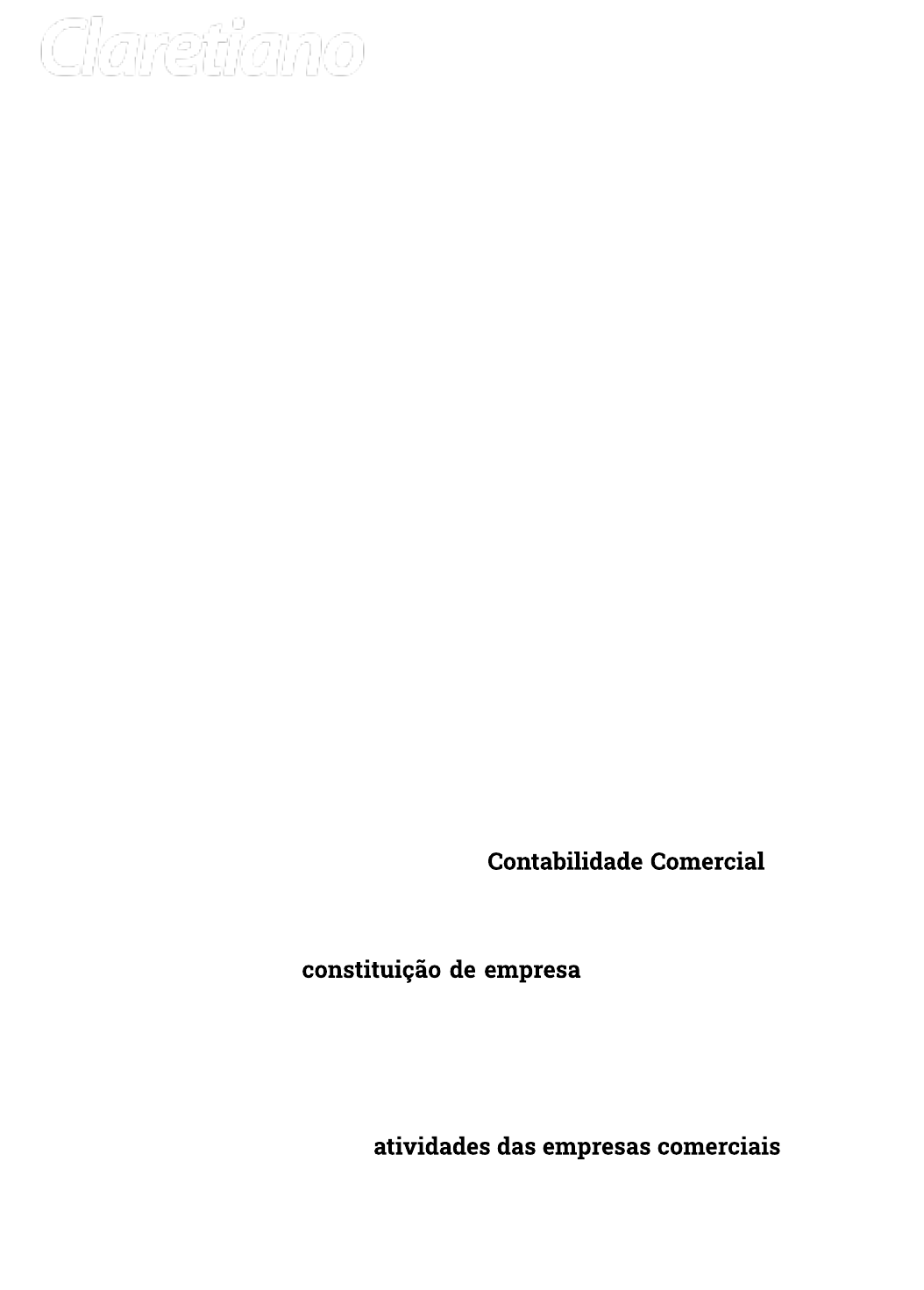 <p>(https://md.claretiano.edu.br/concom-g00406-</p><p>ago-2024-grad-ead/)</p><p>Agora que você já se familiarizou com a , conheça, a</p><p>seguir, os conteúdos que serão estudados neste material.</p><p>De início, de�niremos a , analisaremos diferentes ti-</p><p>pos de estruturas empresariais (como as Sociedades Limitadas, as Sociedades</p><p>Anônimas, o empresário individual, entre outros) e exploraremos como elas</p><p>são formadas e quais as suas características distintas.</p><p>Em seguida, descreveremos as , analisan-</p><p>do desde a aquisição de mercadorias até a venda dos produtos aos clientes, e</p><p>veremos como essas transações são registradas contabilmente e como a</p><p>Contabilidade Comercial auxilia na compreensão do desempenho �nanceiro</p><p>1. Introdução</p><p>https://md.claretiano.edu.br/concom-g00406-ago-2024-grad-ead/</p><p>https://md.claretiano.edu.br/concom-g00406-ago-2024-grad-ead/</p><p>https://md.claretiano.edu.br/concom-g00406-ago-2024-grad-ead/</p><p>https://md.claretiano.edu.br/concom-g00406-ago-2024-grad-ead/</p><p>https://md.claretiano.edu.br/concom-g00406-ago-2024-grad-ead/</p><p>https://md.claretiano.edu.br/concom-g00406-ago-2024-grad-ead/</p><p>https://md.claretiano.edu.br/concom-g00406-ago-2024-grad-ead/</p><p>https://md.claretiano.edu.br/concom-g00406-ago-2024-grad-ead/</p><p>https://md.claretiano.edu.br/concom-g00406-ago-2024-grad-ead/</p><p>das organizações.</p><p>Outro ponto importante que abordaremos é a : de�nire-</p><p>mos do que ela se trata e examinaremos os seus diferentes componentes (co-</p><p>mo salários, encargos sociais, benefícios e impostos), compreendendo como</p><p>calcular e registrar esses valores adequadamente na contabilidade.</p><p>Por �m, exploraremos as , como inves-</p><p>timentos, imobilizados e intangíveis, observando como esses ativos são adqui-</p><p>ridos, registrados e depreciados ao longo do tempo.</p><p>Pronto(a) para começar?</p><p>Bons estudos!</p><p>2. Informações da Disciplina</p><p>Ementa</p><p>Aborda os conceitos e as práticas fundamentais da contabilidade aplicados à</p><p>constituição de empresas e suas respectivas classi�cações comerciais, como,</p><p>por exemplo, individual, sociedade, sociedade anônima, sociedade em nome</p><p>coletivo. Caracteriza os livros utilizados pelas empresas comerciais enquanto</p><p>obrigatórios e facultativos, e as operações, de abertura, capital social, integra-</p><p>lização, subscrição. Considerando a importância da prática aliada aos conteú-</p><p>dos contábeis, tem-se por meio de teorias e exercícios as operações com mer-</p><p>cadorias, os métodos e sistemas para registro das operações com mercadorias,</p><p>como: as compras, as vendas de mercadorias, os tributos incidentes sobre</p><p>compras e vendas e o resultado da conta mercadorias. Ademais, os métodos e</p><p>os critérios de avaliação dos estoques no âmbito da contabilidade dão suporte</p><p>às operações com mercadorias. Os estudos sobre a folha de pagamento e as</p><p>operações com pessoal, bem como seus conceitos e sua contabilização, condi-</p><p>cionam o estudante a compreender as especi�cidades contábeis que circun-</p><p>dam a folha de pagamento, as principais ocorrências na folha de pagamento</p><p>(FGTS, adiantamentos, salário-família, encargos complementares) e os cálcu-</p><p>los do décimo terceiro salário e das férias. As operações com ativo não circu-</p><p>lante e os conceitos sobre a contabilização do ativo imobilizado e do intangí-</p><p>vel. A disciplina aborda de forma prática os cálculos e a contabilização da de-</p><p>preciação, da amortização e da exaustão dos bens do ativo não circulante, o</p><p>teste de recuperabilidade dos ativos e os ganhos ou perdas de capital na alie-</p><p>nação dos bens do ativo não circulante. Por �m, as operações com instrumen-</p><p>tos �nanceiros envolvendo contas de resultado e o encerramento das ativida-</p><p>des das empresas comerciais encerram os ciclos de estudo desta disciplina.</p><p>Objetivo Geral</p><p>Os alunos de , compreendendo o processo de consti-</p><p>tuição das empresas comerciais e suas operações, serão capazes de analisar</p><p>as contabilizações de compra, venda, estoque e Ativos Não Circulantes para</p><p>controle �nanceiro e patrimonial. Para isso, contarão não só com as obras de</p><p>referência, mas também outras bibliogra�as e referências eletrônicas, indica-</p><p>ções de links e vídeos.</p><p>Ao �nal, terão condições de atuar pro�ssionalmente e com autonomia para</p><p>controle e registro das transações diárias de uma empresa comercial, levando</p><p>em consideração as ideias debatidas na Sala de Aula Virtual, por meio de suas</p><p>ferramentas, bem como suas produções durante o estudo.</p><p>Objetivos Especí�cos</p><p>• De�nir a constituição de empresas.</p><p>• Demonstrar as atividades das empresas comerciais.</p><p>• Apresentar os estoques e suas vertentes.</p><p>• Conceituar a Folha de Pagamento.</p><p>• Apresentar operações com Ativos Não Circulantes.</p><p>(https://md.claretiano.edu.br/concom-g00406-</p><p>ago-2024-grad-ead/)</p><p>Ciclo 1 – Constituição de Empresas</p><p>Objetivos</p><p>• Entender como se constituem as empresas.</p><p>• Entender a função e importância dos diferentes livros contábeis na ges-</p><p>tão de empresas comerciais.</p><p>• Analisar as operações de abertura para diferentes tipos de empresas.</p><p>• Compreender a estrutura de empresas com matriz e �lial.</p><p>Conteúdos</p><p>• Livros utilizados pelas empresas comerciais.</p><p>• Classi�cação dos Livros de Escrituração.</p><p>• Operações de abertura (Empresa Individual, Sociedade, Sociedade</p><p>Anônima, Sociedade em Nome Coletivo).</p><p>• e �lial.</p><p>Problematização</p><p>Como a obrigatoriedade dos livros contábeis em empresas comerciais in�uen-</