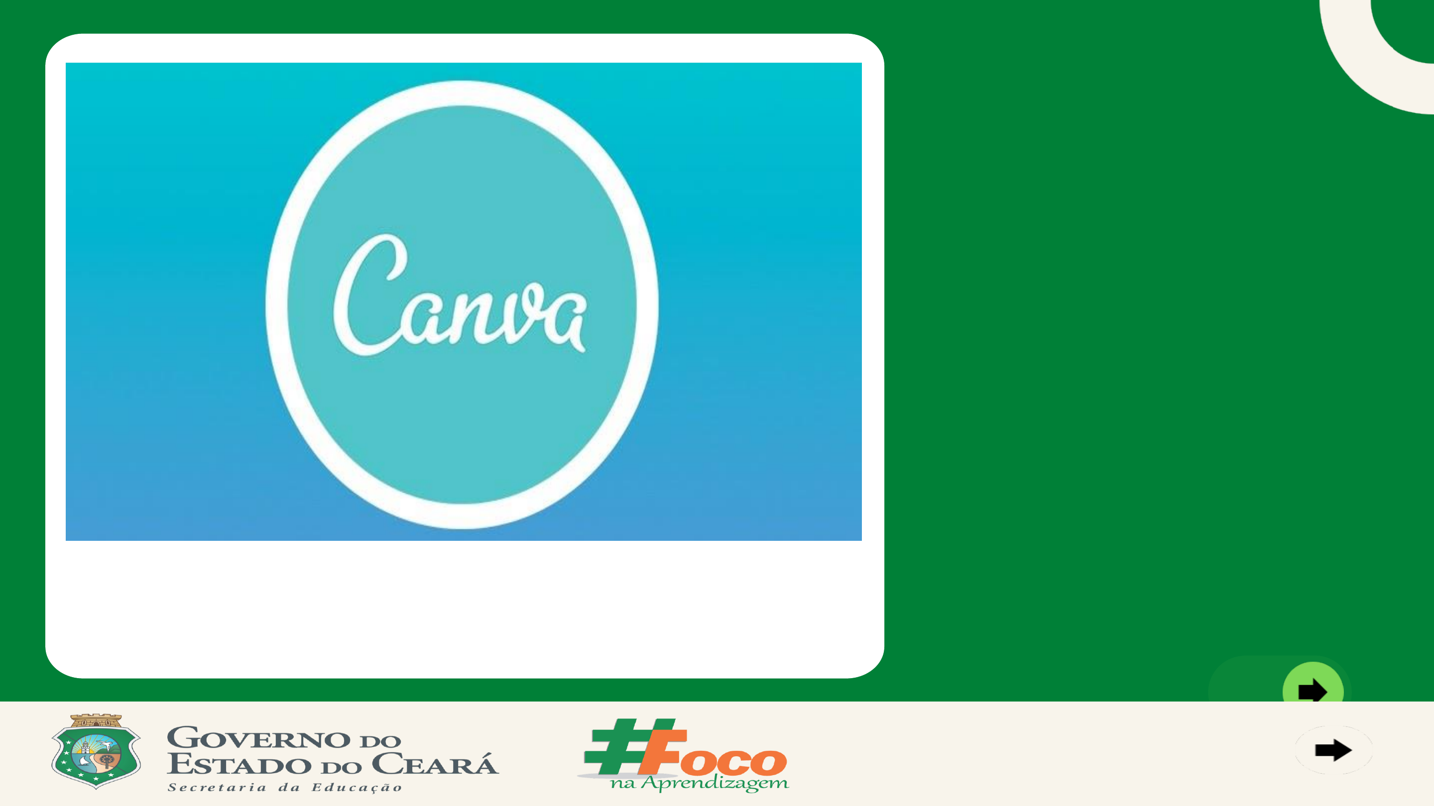 <p>Coordenadoria da Educação em</p><p>Tempo Integral - COETI / SEDUC</p><p>Tutorial para uso iniciantes</p><p>Coordenadoria da Educação em</p><p>Tempo Integral - COETI / SEDUC</p><p>CUIDADO:</p><p>Não confundir CANVA com CANVAS!</p><p>CANVAS é um elemento da HTML5 destinado a delimitar</p><p>uma área para renderização dinâmica de gráficos. Todo o</p><p>trabalho de criação e animação é realizado através de</p><p>linguagens de programação dinâmica.</p><p>Este tutorial é sobre o CANVA, ferramenta da web</p><p>disponível para smartphones com sistema androide ou</p><p>iOS, é uma ferramenta intuitiva para criação de designer,</p><p>infográficos e templates, com o uso de textos, imagens,</p><p>vídeos e elementos gráficos.</p><p>Coordenadoria da Educação em</p><p>Tempo Integral - COETI / SEDUC</p><p>No seu primeiro acesso,</p><p>crie sua conta com suas</p><p>redes sociais ou email e</p><p>escolha de que forma você</p><p>vai usar os recursos.</p><p>Isso ajudará a ferramenta a</p><p>selecionar para você os</p><p>recursos que mais se</p><p>adequam ao uso que você</p><p>quer.</p><p>Acesse: www.canva.com</p><p>http://www.canva.com/</p><p>Coordenadoria da Educação em</p><p>Tempo Integral - COETI / SEDUC</p><p>Garanta um visual</p><p>uniforme com fontes e</p><p>combinações de cores</p><p>compartilhadas</p><p>Deixe feedback</p><p>diretamente nos designs,</p><p>evitando longas conversas</p><p>por email ou mensagens</p><p>nas redes sociais.</p><p>Se preferir, você pode</p><p>criar um ambiente</p><p>colaborativo ,</p><p>compartilhando com</p><p>sua equipe para</p><p>receber dicas e apoio</p><p>no seu trabalho.</p><p>Coordenadoria da Educação em</p><p>Tempo Integral - COETI / SEDUC</p><p>Digite um tema, e a</p><p>seguir escolha o formato</p><p>do seu trabalho, desde</p><p>apresentações com várias</p><p>páginas, a posts para suas</p><p>redes sociais com o</p><p>tamanho adequado para</p><p>cada uma delas e</p><p>milhares de designs pré-</p><p>prontos para você editar e</p><p>imprimir a sua marca!</p><p>Coordenadoria da Educação em</p><p>Tempo Integral - COETI / SEDUC</p><p>Após escolher o formato para o</p><p>seu trabalho, vamos acessar o</p><p>primeiro recurso: templates e</p><p>encontrar o layout que mais seja</p><p>adequado ao que você pretende</p><p>fazer.</p><p>Eles estão organizados por</p><p>categorias, mas você tem a a</p><p>opção de pesquisar, basta digitar</p><p>na lupa o que você deseja.</p><p>TEMPLATES</p><p>A IDENTIDADE VISUAL DO SEU TRABALHO</p><p>Coordenadoria da Educação em</p><p>Tempo Integral - COETI / SEDUC</p><p>Se você sentir dificuldade em</p><p>qualquer etapa do seu projeto,</p><p>basta clicar no botão “Ajuda”</p><p>localizado no canto inferior</p><p>direito.</p><p>Você encontrará dicas rápidas,</p><p>tutoriais e a opção de digitar</p><p>sua pergunta e assim</p><p>rapidamente localizar a</p><p>resposta para seguir no</p><p>desenvolvimento do seu</p><p>trabalho.</p><p>A plataforma é intuitiva, mas nela você encontra total</p><p>apoio para otimizar o seu tempo</p><p>Coordenadoria da Educação em</p><p>Tempo Integral - COETI / SEDUC</p><p>Um dos recursos mais</p><p>necessários para qualquer</p><p>trabalho web, são as</p><p>imagens, e aqui você</p><p>encontra milhões de</p><p>alternativas, na opção FOTOS.</p><p>Logo abaixo dessa opção,</p><p>você tem os ELEMENTOS, em</p><p>uma categoria separada e</p><p>muito rica para diversificar o</p><p>seu trabalho.</p><p>Coordenadoria da Educação em</p><p>Tempo Integral - COETI / SEDUC</p><p>E quem disse que seu trabalho</p><p>tem que ser apenas textual ou</p><p>visual? Porque não sonoro?</p><p>Que tal incluir música, ou</p><p>pequenos vídeos, animações?</p><p>Explore, experimente!</p><p>Quem sabe o resultado te</p><p>surpreende!</p><p>Coordenadoria da Educação em</p><p>Tempo Integral - COETI / SEDUC</p><p>Se você não ficar satisfeito com</p><p>os recursos disponíveis, ou</p><p>quiser incluir uma marca que já</p><p>é sua no seu trabalho, não se</p><p>preocupe, aqui você pode fazer</p><p>o Upload do que você desejar e</p><p>incorporar no seu profeto!</p><p>As possibilidades existem,</p><p>aproveite!</p><p>Coordenadoria da Educação em</p><p>Tempo Integral - COETI / SEDUC</p><p>Trabalho finalizado, e agora?</p><p>No canto superior esquerdo da</p><p>tela, você tem as opções de ver</p><p>sua apresentação.</p><p>Caso ela esteja de acordo com</p><p>oque você deseja, você pode fazer</p><p>o dowloand ou compartilhar</p><p>através de link com quem você</p><p>deseja que visualize ou edite seu</p><p>trabalho, ajudando você a</p><p>progredir.</p><p>Coordenadoria da Educação em</p><p>Tempo Integral - COETI / SEDUC</p><p>Para finalizar, você ainda</p><p>pode adaptar o seu</p><p>trabalho a diferentes</p><p>formados, de modo que</p><p>todos as pessoas possam</p><p>visualiza da melhor forma e</p><p>em todas as opções de</p><p>acesso.</p><p>Coordenadoria da Educação em</p><p>Tempo Integral - COETI / SEDUC</p><p>Gostou?</p><p>Então vamos lá, experimente,</p><p>É gratuito e certamente você vai se</p><p>destacar com os seus projetos!</p>