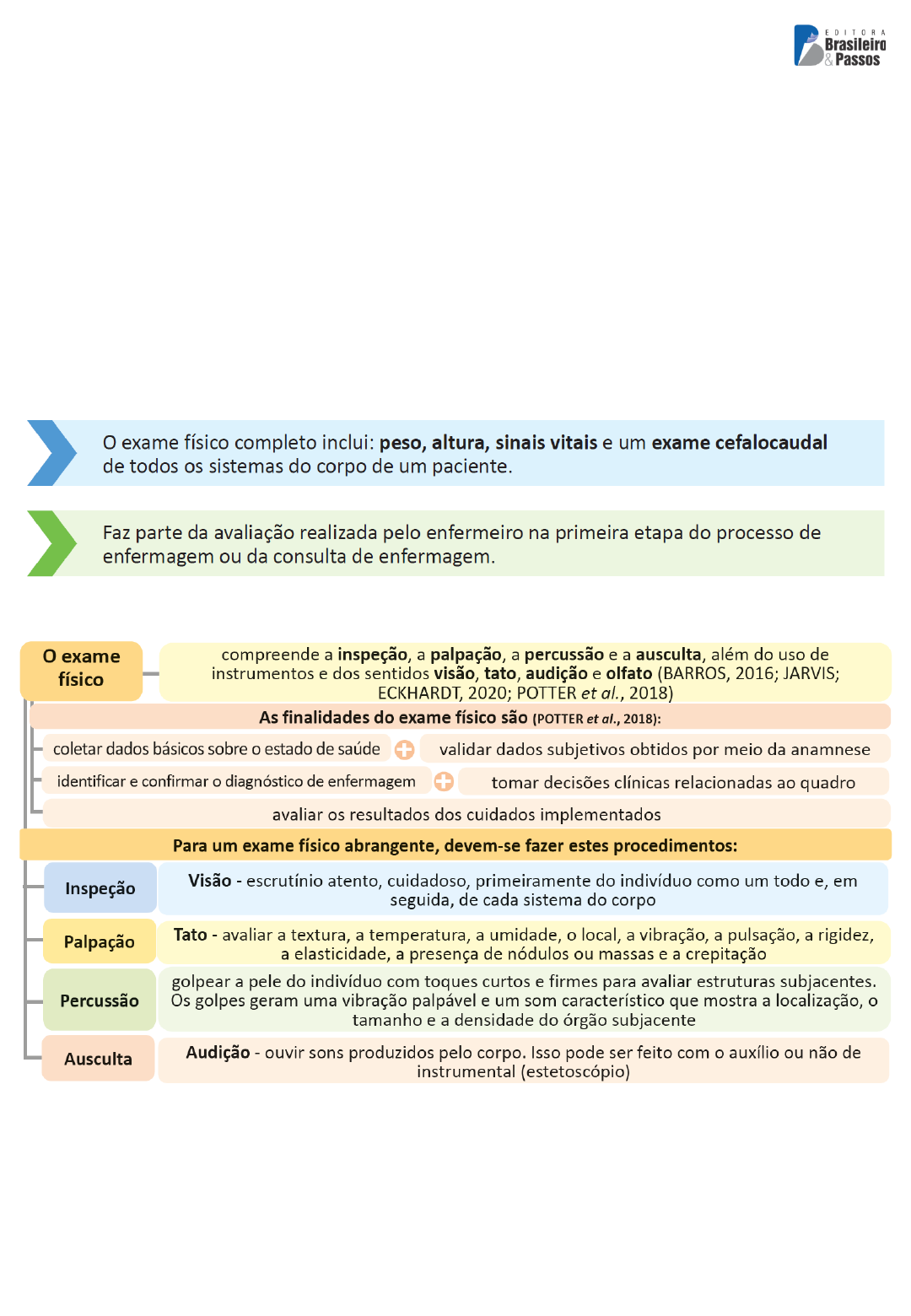 <p>www.romulopassos.com.br</p><p>CURSO COMPLETO: FUND - EXAME FÍSICO E HIGIENE (E07)</p><p>1</p><p>Exame Físico e Higiene</p><p>PROFESSORA CAMILA ABRANTES</p><p>Anamnese e exame físico</p><p>O exame físico é realizado usando-se instrumentos e técnicas propedêuticas para fazer o</p><p>levantamento das condições globais do paciente, através de informações significativas para a</p><p>Enfermagem, capazes de subsidiar a assistência a ser prestada ao paciente (SOUZA et al., 2016).</p><p>www.romulopassos.com.br</p><p>CURSO COMPLETO: FUND - EXAME FÍSICO E HIGIENE (E07)</p><p>2</p><p>Posições do paciente</p><p>www.romulopassos.com.br</p><p>CURSO COMPLETO: FUND - EXAME FÍSICO E HIGIENE (E07)</p><p>3</p><p>Decúbito ventral (posição prona)</p><p>IMPORTANTE! Dentre os cuidados relativos ao tratamento da SARA, tem-se a utilização do</p><p>posicionamento em decúbito ventral (posição prona) por algumas horas com o intuito de melhorar a</p><p>oxigenação. As complicações dessa posição estão relacionadas à diminuição transitória da saturação,</p><p>hipotensão transitória, extubação acidental e deslocamento do cateter, hipoxemia por dobra</p><p>acidental do tubo orotraquel, lesões por pressão nos olhos, pálpebras e língua, vômitos, e</p><p>necessidade de aumento da sedação (HINKLE; CHEEVER, 2020; VIANA; WHITAKER, ZANEI, 2020).</p><p>1. (EBSERH/UFMA/2021) A posição PRONA determina descompressão e reexpansão alveolar dos</p><p>segmentos dorsais, que são as áreas de maior atelectasia e edema durante o tratamento</p><p>convencional da Síndrome da Angústia Respiratória Aguda (SARA), sendo assim temos como as</p><p>complicações decorrentes dessa posição:</p><p>a) Lesão por pressão nos trocânteres, lesão nos nervos ciáticos e ulnar, broncoaspiração por</p><p>compressão do tubo orotraqueal.</p><p>b) Lesão por pressão nos olhos, pálpebras e língua, extubação acidental, hipoxemia por dobra</p><p>acidental do tubo orotraqueal.</p><p>c) Lesão por pressão nos lobos auriculares e região occipital, lesão em nervo tendíneo e ulnar,</p><p>extubação acidental, hemorragia por desconexão acidental das linhas de infusão venosa.</p><p>d) Lesão por pressão em maléolos, lesão do nervo pudendo e tendinoso, hipotensão por oclusão ou</p><p>desconexão das linhas de infusão venosa.</p><p>e) Lesão por pressão na língua e lobos auriculares, extubação acidental, lesão de nervo ulnar,</p><p>pneumotórax por compressão de tubo orotraqueal.</p><p>www.romulopassos.com.br</p><p>CURSO COMPLETO: FUND - EXAME FÍSICO E HIGIENE (E07)</p><p>4</p><p>2. (EBSERH/ENARE/AOCP/2022) Certos exames e procedimentos terapêuticos requerem o</p><p>posicionamento da pessoa de forma adequada.</p><p>Assinale a alternativa que corresponde à posição ilustrada e a uma das suas indicações.</p><p>a) Decúbito lateral/Exame físico. d) Sims/Lavagem intestinal.</p><p>b) Dorsal/Esvaziamento gástrico. e) Litotômica/Cirurgia pélvica.</p><p>c) Genupeitoral/Expansão pulmonar.</p><p>(EBSERH/CESPE/2018) Mariana, com setenta e seis anos de idade, apresenta, em atendimento</p><p>hospitalar de emergência, forte dor precordial, em aperto, contínua, com irradiação para o pescoço, e</p><p>leve tontura — segundo a paciente, há cerca de 30 min. Ela tem história de hipertensão arterial</p><p>crônica e vem sendo acompanhada regularmente por seu cardiologista. No exame, Mariana encontra-</p><p>se dispneica, agitada, com PA de 190 mmHg × 130 mmHg e oximetria de pulso em 92%.</p><p>Acerca desse caso clínico, julgue o item a seguir.</p><p>3. No serviço de emergência, Mariana deverá ser mantida em posição de Trendelenburg e ser</p><p>tranquilizada.</p><p>( ) CERTO ( ) ERRADO</p><p>4. (EBSERH/AOCP/2015) Paciente, 73 anos, sexo masculino, é levado ao serviço de emergência com</p><p>queixa de dispneia/sufoco de início súbito enquanto assistia televisão, mas refere que já havia</p><p>apresentado episódios de cansaço e falta de ar. Apresenta taquipneia (30/min), respiração acentuada,</p><p>com discreta cianose perioral, ansiedade, pressão arterial = 180/120 mmHg, frequência cardíaca =</p><p>110/minuto. A ausculta pulmonar revela estertores crepitantes bilaterais. O paciente foi</p><p>diagnosticado com edema agudo de pulmão (EAP), medicado e segue consciente, em observação. A</p><p>prescrição de enfermagem para o adequado posicionamento desse paciente é</p><p>a) trendelemburg, sempre que possível, com membros inferiores fletidos.</p><p>b) decúbito ventral com membros inferiores estendidos.</p><p>c) decúbito dorsal com cabeceira a, no máximo, 30° de elevação e sempre com membros inferiores</p><p>elevados.</p><p>d) decúbito dorsal, com cabeceira elevada, na posição sentada e, sempre que possível, membros</p><p>inferiores pendentes.</p><p>e) decúbito lateral esquerdo com membros inferiores fletidos.</p><p>www.romulopassos.com.br</p><p>CURSO COMPLETO: FUND - EXAME FÍSICO E HIGIENE (E07)</p><p>5</p><p>5. (TRT 23ª Região/FCC/2022) Em uma consulta, o médico solicita ao Técnico de Enfermagem que</p><p>prepare o paciente para a realização do exame de toque retal. Para a realização desse exame o</p><p>paciente deve ser colocado na posição</p><p>a) de trendelemburg invertida. c) de fowler. e) de kraske.</p><p>b) genupeitoral. d) ortostática.</p><p>6. (EBSERH/AOCP/2017) O Exame Físico consiste no levantamento de condições globais do cliente</p><p>para buscar informações para subsidiar a assistência. Sobre as técnicas utilizadas no exame físico e os</p><p>possíveis achados, assinale a alternativa correta.</p><p>a) Deve ser realizado sempre no sentido cefalo-podal, independente da situação ou paciente.</p><p>b) No exame do pescoço, é necessário atentar-se para contraturas, glândula tireoide e linfonodos</p><p>palpáveis.</p><p>c) Na avaliação da cabeça e pescoço, utilizam-se as técnicas de inspeção e percussão.</p><p>d) 