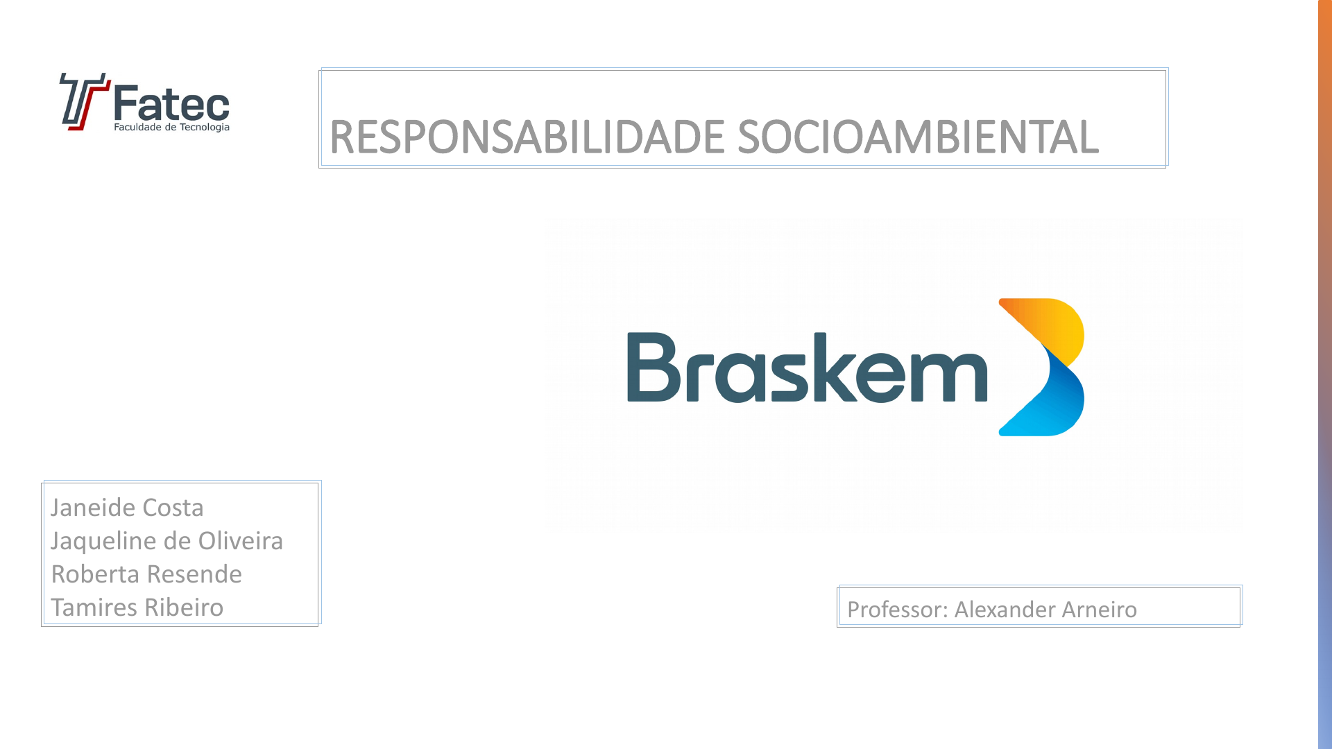 <p>RESPONSABILIDADE SOCIOAMBIENTAL</p><p>.</p><p>Janeide Costa</p><p>Jaqueline de Oliveira</p><p>Roberta Resende</p><p>Tamires Ribeiro</p><p>Professor: Alexander Arneiro</p><p>SUMÁRIO</p><p>QUEM É A BRASKEM</p><p>COMO SURGIU A BRASKEM</p><p>POLÍTICAS DE DESENVOLVIMENTO SUSTENTÁVEL</p><p>COMPROMISSO ESG</p><p>IMPACTOS DAS SUAS ATIVIDADES NO MEIO AMBIENTE</p><p>O QUE ELA FAZ PARA MITIGAR RISCOS E IMPACTOS ?</p><p>ACIDENTE EM MACEIÓ</p><p>COMO ESTÃO OS BAIRROS AFETADOS ATUALMENTE</p><p>CONCLUSÃO</p><p>REFERÊNCIAS</p><p>2</p><p>QUEM É A BRASKEN ?</p><p>Empresa global, do segmento químico e petroquímico, que tem participação relevante em diversas cadeias produtivas.</p><p>Líder na produção de resinas termoplásticas nas Américas e 6ª maior petroquímica do mundo.</p><p>3</p><p>COMO SURGIU A BRASKEM?</p><p>4</p><p>1976</p><p>Início da exploração do Sal-Gema</p><p>1996</p><p>Mudança de nome, surgimento da Trikem</p><p>2002</p><p>Início da Braskem</p><p>POLÍTICAS DE DESENVOLVIMENTO SUSTENTÁVEL</p><p>Essa estratégia conta com uma Política Global de Desenvolvimento Sustentável</p><p>Essa política considera três grandes áreas de trabalho, que são seus pilares de atuação:</p><p>1. Processos e Recursos cada vez mais sustentáveis</p><p>2. Portfólio de produtos cada vez mais sustentável</p><p>3. Soluções para permitir que a sociedade tenha uma vida cada vez mais sustentável</p><p>5</p><p>COMPROMISSO ESG</p><p>Combate as mudanças climáticas</p><p>Responsabilidades social e direitos humanos</p><p>Eliminação de resíduos plásticos</p><p>Saúde e segurança</p><p>Inovação Sustentável</p><p>Resultados financeiros e econômicos</p><p>Ecoeficiência operacional</p><p>6</p><p>IMPACTOS DAS ATIVIDADES DA BRASKEM NO MEIO AMBIENTE</p><p>Subsidência do solo: afundamento e deformação do solo;</p><p>Contaminação da água: pode resultar na contaminação de águas subterrâneas;</p><p>Alteração do ecossistema: afeta fauna e flora da região;</p><p>Emissão de gases: a mineração pode gerar gases poluentes;</p><p>7</p><p>O QUE ELA FAZ PRA MITIGAR RISCOS E IMPACTOS</p><p>Investimento de 7,1 milhões ;</p><p>Reduzir significamente as emissões de CO² na produção de plástico verde;</p><p>Desenvolvimento do sistema de reuso de efluentes;</p><p>Automatização de Processos ;</p><p>Aparelhos para a vaporização de etanol;</p><p>Aproveitamento dos recursos hídricos;</p><p>8</p><p>PROGRAMAS AMBIENTAIS</p><p>Reduzir a geração de efluente orgânico em suas unidades de produção de eteno;</p><p>Reduzir significamente o consumo de água;</p><p>Criação do projeto Ecobraskem ;</p><p>Projeto de energia ;</p><p>Transformador isolado a óleo vegetal;</p><p>Projeto Estação ecológica;</p><p>9</p><p>ACIDENTE DE MACEIÓ</p><p>10</p><p>https://agenciabrasil.ebc.com.br/geral/noticia/2023-12/</p><p>PROGRAMAS CRIADOS APÓS O ACIDENTE</p><p>No ano de 2022, foi elaborado o Plano de Ações Sociais como um desdobramento dos trabalhos do Diagnóstico Técnico-Participativo</p><p>Eixo 1 – Políticas sociais e redução de vulnerabilidades;</p><p>Eixo 2 – Atividade econômica, trabalho e renda;</p><p>Eixo 3 – Qualificação urbana e ambiental;</p><p>Eixo 4 – Preservação da memória e cultura;</p><p>11</p><p>PROGRAMAS CRIADOS APÓS O ACIDENTE</p><p>Em janeiro de 2022, as obras do Projeto de Estabilização e Drenagem da Encosta do Mutange,</p><p>cujo escopo engloba:</p><p>Atividades de demolição;</p><p>Terraplanagem;</p><p>Construção de sistema de drenagem;</p><p>E plantio de cobertura vegetal na área envolvida, com conclusão prevista até o fim de 2023.</p><p>Ainda em 2022, foi firmado o Termo de Adesão Parcial do Município de Maceió ao Acordo Socioambiental relativo a 11 ações de mobilidade urbana na região;</p><p>12</p><p>ATENDIMENTO AOS MORADORES</p><p>13</p><p>O Programa de Compensação Financeira e Apoio à Realocação (PCF), criado em dezembro de 2019 com o propósito de:</p><p>Realocar preventivamente os moradores;</p><p>Assim como acelerar o processo indenizatório;</p><p>Chegou ao fim de 2022 com mais de 98% das famílias já realocadas das áreas consideradas de risco;</p><p>Cerca de 97% dos moradores também já receberam propostas de indenização com um índice de aceitação de 99,6%.</p><p>O QUE FIZERAM PARA ATENDER AOS MORADORES?</p><p>14</p><p>Medidas de realocações e indenizações;</p><p>Auxílio aluguel;</p><p>Custeio das mudanças;</p><p>Guarda-volumes;</p><p>Guarda de animais domésticos durante o período de mudanças;</p><p>Consultoria imobiliária;</p><p>Canais de atendimento;</p><p>Apoio na abertura de contas bancárias;</p><p>Parceria com cartórios para emissão de documentos e certidões.</p><p>O programa conta com técnicos sociais, facilitadores para o processo de compensação financeira, apoio jurídico e psicológico.</p><p>NOTICIAS SOBRE ACIDENTE DE MACEIÓ</p><p>15</p><p>https://oantagonista.com.br/brasil/caso-braskem-ja-acumula-mais-de-1000-processos-em-alagoas/</p><p>NOTICIAS SOBRE ACIDENTE DE MACEIÓ</p><p>16</p><p>https://%202020%2C%20a%20Braskem%20apresentou,acordo%20com%20os%20%C3%B3rg%C3%A3os%20p%C3%BAblicos. www.intercept.com.br/2023/12/22/braskem-acordo-secreto-que-empresa-firmou-com-vitimas-em-maceio/#:~:text=Desde</p><p>ACIDENTE DE MACEIÓ</p><p>Quem assina o acordo declara, conforme a cláusula 12, que a Braskem ofereceu:</p><p>Apoio complementar ao morador;</p><p>Orientação financeira;</p><p>Busca de novo terreno ou moradia;</p><p>Apoio psicossocial;</p><p>Assistência técnica para retomada produtiva ou do negócio, no caso dos empreendedores.</p><p>17</p><p>COMO ESTÃO OS BAIRROS AFETADOS HOJE?</p><p>https://g1.globo.com/al/alagoas/noticia/2024/02/15/moradores-de-bairros-afetados-pela-mineracao-em-maceio-vao-a-holanda-para-audiencia-de-processo-contra-braskem.ghtml</p><p>18</p><p>CONCLUSÃO</p><p>19</p><p>Resumidamente, a empresa global no setor químico e petroquímico se destaca não só por sua lider