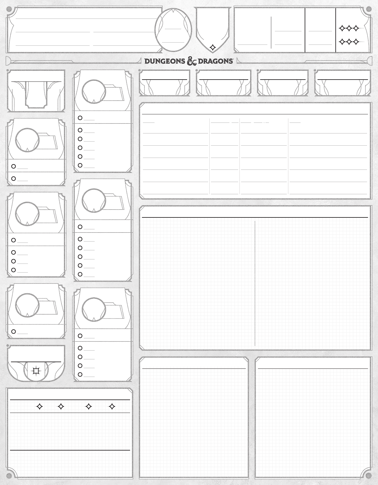 <p>species current max max failuressubclass</p><p>xp</p><p>ARMOR</p><p>CLASS</p><p>DEATH</p><p>SAVES</p><p>HIT POINTS</p><p>PROFICIENCY BONUS</p><p>HEROIC</p><p>INSPIRATION</p><p>WISDOM</p><p>CHARISMA</p><p>DEXTERITY</p><p>STRENGTH</p><p>CONSTITUTION</p><p>INTELLIGENCE INITIATIVE SIZESPEED PASSIVE PERCEPTION</p><p>HIT DICE</p><p>character name</p><p>tools</p><p>weapons</p><p>armor</p><p>training</p><p>background</p><p>modifier</p><p>modifier</p><p>modifier</p><p>modifier</p><p>modifier</p><p>modifier</p><p>score</p><p>score</p><p>score</p><p>score</p><p>score</p><p>score</p><p>Name Atk Bonus / DC Damage & Type Notes</p><p>Saving Throw</p><p>Saving Throw</p><p>Saving Throw</p><p>Saving Throw</p><p>Saving Throw</p><p>Saving Throw</p><p>Animal Handling</p><p>Insight</p><p>Medicine</p><p>Perception</p><p>Survival</p><p>Deception</p><p>Intimidation</p><p>Performance</p><p>Persuasion</p><p>Acrobatics</p><p>Sleight of Hand</p><p>Stealth</p><p>Athletics</p><p>Arcana</p><p>History</p><p>Investigation</p><p>Nature</p><p>Religion</p><p>class</p><p>level temp spent</p><p>shield</p><p>successes</p><p>EQUIPMENT TRAINING & PROFICIENCIES</p><p>FEATS</p><p>CLASS FEATURES</p><p>WEAPONS & DAMAGE CANTRIPS</p><p>SPECIES TRAITS</p><p>Light Medium Heavy Shields</p><p>NameLevel</p><p>Casting</p><p>Time</p><p>Concentration, Ritual</p><p>&& Required Material</p><p>CP SP EP GP PP</p><p>CANTRIPS & PREPARED SPELLS</p><p>BACKSTORY & PERSONALITY</p><p>SPELL SLOTS</p><p>EQUIPMENT</p><p>COINS</p><p>APPEARANCE</p><p>TM & © 2024 Wizards of the Coast LLC. Illustrations by Richard Whitters.</p><p>670D3898000001 EN</p><p>Magic Item Attunement</p><p>Alignment</p><p>Level 1</p><p>Level 2</p><p>Level 3</p><p>Level 4</p><p>Level 5</p><p>Level 6</p><p>SPELLCASTING</p><p>MODIFIER</p><p>SPELL SAVE DC</p><p>SPELL ATTACK</p><p>BONUS</p><p>Level 7</p><p>Level 8</p><p>Level 9</p><p>spellcasting ability</p><p>R</p><p>R</p><p>R</p><p>R</p><p>R</p><p>R</p><p>R</p><p>R</p><p>R</p><p>R</p><p>R</p><p>R</p><p>R</p><p>R</p><p>R</p><p>R</p><p>R</p><p>R</p><p>R</p><p>R</p><p>R</p><p>R</p><p>R</p><p>R</p><p>R</p><p>R</p><p>R</p><p>R</p><p>R</p><p>R</p><p>M</p><p>M</p><p>M</p><p>M</p><p>M</p><p>M</p><p>M</p><p>M</p><p>M</p><p>M</p><p>M</p><p>M</p><p>M</p><p>M</p><p>M</p><p>M</p><p>M</p><p>M</p><p>M</p><p>M</p><p>M</p><p>M</p><p>M</p><p>M</p><p>M</p><p>M</p><p>M</p><p>M</p><p>M</p><p>M</p><p>CC</p><p>CC</p><p>CC</p><p>CC</p><p>CC</p><p>CC</p><p>CC</p><p>CC</p><p>CC</p><p>CC</p><p>CC</p><p>CC</p><p>CC</p><p>CC</p><p>CC</p><p>CC</p><p>CC</p><p>CC</p><p>CC</p><p>CC</p><p>CC</p><p>CC</p><p>CC</p><p>CC</p><p>CC</p><p>CC</p><p>CC</p><p>CC</p><p>CC</p><p>CC</p><p>LANGUAGES</p><p>Expended Expended ExpendedTotal Total Total</p><p>Range Notes</p>