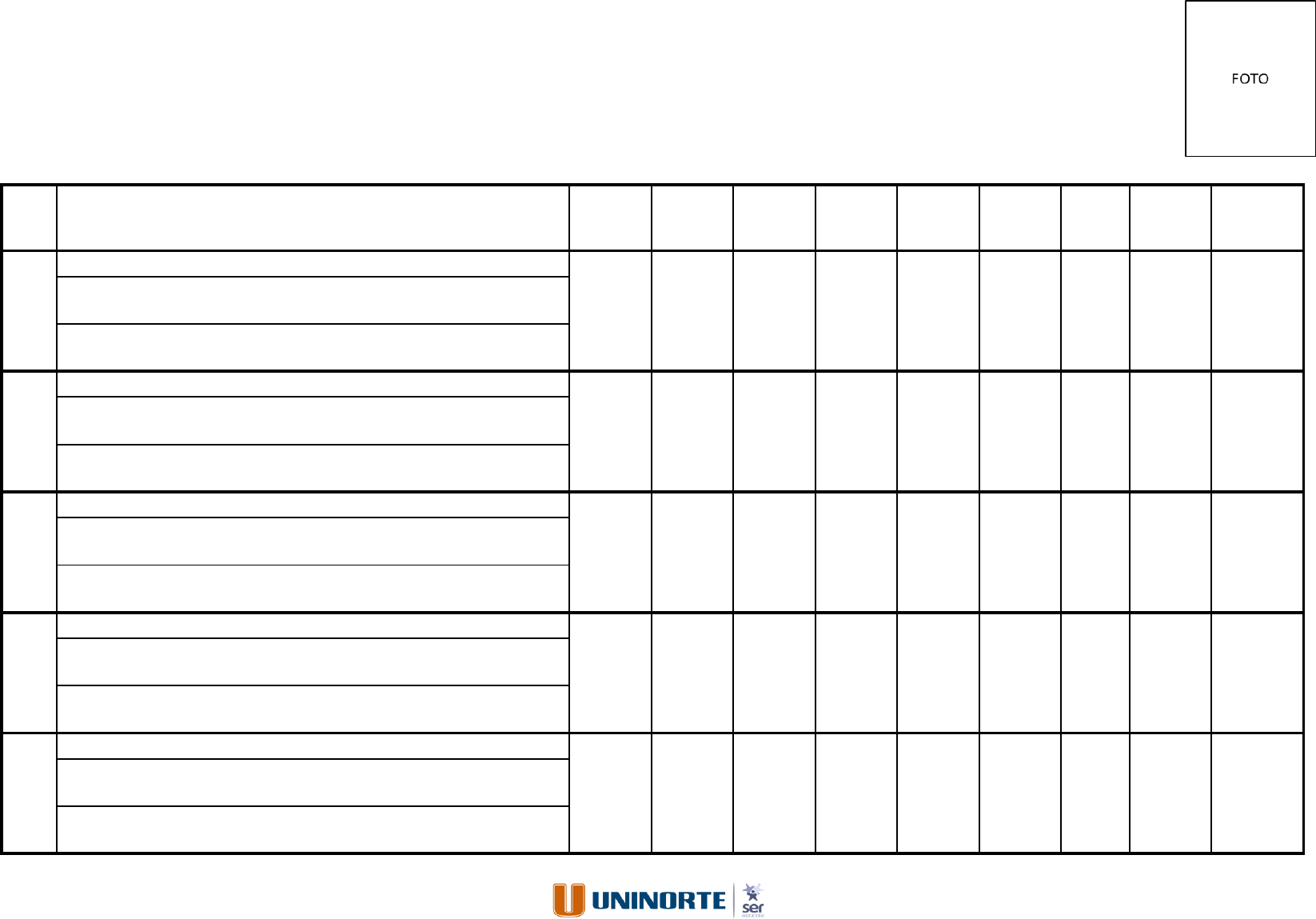 <p>ANEXO 2 – Ficha de Avaliação de Procedimentos</p><p>DISCIPLINA: _______________________________________________ Ano letivo: ____________</p><p>ALUNO(A):__________________________________________________________ Matrícula: ______________ Box nº._____</p><p>PROF. CIENTE</p><p>pontuação máxima a ser atribuída: 1,0 1,0 1,0 1,0 3,0 3,0 10,0</p><p>Pac.:</p><p>Proced.:</p><p>Obs.:</p><p>Pac.:</p><p>Proced.:</p><p>Obs.:</p><p>Pac.:</p><p>Proced.:</p><p>Obs.:</p><p>Pac.:</p><p>Proced.:</p><p>Obs.:</p><p>Pac.:</p><p>Proced.:</p><p>Obs.:</p><p>DATA</p><p>Biosseg.</p><p>Parament.</p><p>Organi.</p><p>Material</p><p>Assid.</p><p>Pontual</p><p>PROCEDIMENTO EXECUTADO</p><p>NOTA</p><p>DIÁRIA</p><p>Execução</p><p>Complex.</p><p>Conhec.</p><p>Teórico</p><p>Planej.</p><p>Proced.</p><p>carimbo e</p><p>assinatura</p><p>carimbo e</p><p>assinatura</p><p>ANEXO 3 – Ficha de Controle de Pacientes Disciplina: ______________________________________ Ano letivo: ________________</p><p>ALUNO(A):__________________________________________________________Matrícula: ______________ Nota final de clínica:_________ Ciente: ____________</p><p>ALUNO(A):__________________________________________________________Matrícula: ______________ Nota final de clínica:_________ Ciente: ____________</p><p>Observações importantes:</p><p>7</p><p>6</p><p>5</p><p>4</p><p>3</p><p>2</p><p>Professor (a)</p><p>1</p><p>Nome do paciente Numero do prontuário</p><p>Data do primeiro</p><p>atendimento</p><p>Data do T.C.</p><p>Planilha1</p>