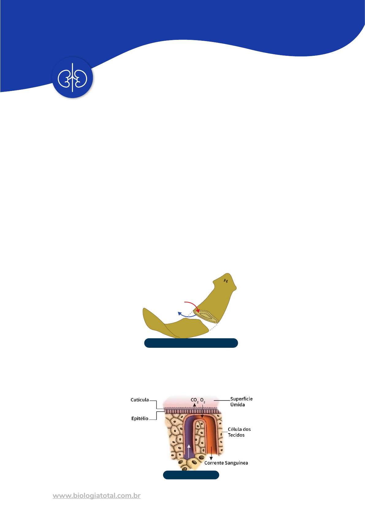 1www.biologiatotal.com.br SISTEMA RESPIRATÓRIO As células obtêm energia a partir do processo de respiração celular. Nesse processo, moléculas de glicose, principalmente, são decompostas até gás carbônico e água, com auxílio do oxigênio, sendo formadas moléculas de ATP que são usadas no metabolismo celular e orgânico. A ocorrência da respiração envolve trocas gasosas, isto é, o organismo precisa obter oxigênio e eliminar o gás carbônico produzido no processo. Essa troca de gases é a função do sistema respiratório e o local onde essa troca ocorre constitui a chamada superfície respiratória. Tipos de Sistema Respiratório No Reino Animal, ocorrem diversos tipos de sistemas respiratórios. Difusão Simples – as trocas gasosas são feitas através do revestimento corporal, entre as células e o meio externo. Isso ocorre nos protozoários, esponjas, celenterados, platelmintos e nematelmintos. Nos celenterados, os gases difundem-se da superfície corporal para as células mais internas. O2 CO2 Respiração Cutânea – as trocas são realizadas através da epiderme permeável, onde abaixo dela o tecido é altamente vascularizado. Os gases respiratórios migram dos capilares para o exterior através da epiderme e vice-versa. Ocorre em anelídeos oligoquetas e hirudíneos. No grupo dos vertebrados aparece nos anfíbios. Respiração por difusão em planária Respiração cutânea 2 Si st em a R es pi ra tó rio e S is te m a Ci rc ul at ór io Respiração Branquial – aparece na maioria dos animais aquáticos, como crustáceos, moluscos e peixes. As brânquias são estruturas altamente vascularizadas e as trocas gasosas ocorrem entre a água e o sangue, através do epitélio que recobre as brânquias. Respiração Traqueal – este sistema é constituído por finos canais denominados traqueias. As trocas ocorrem diretamente entre o ar e os tecidos, não havendo participação do sistema circulatório. Encontrado em insetos, aracnídeos, diplópodes e quilópodes. Respiração Pulmonar – aparece nos tetrápodes e é formada pelo conduto aerífero e pelos pulmões. Estes são constituídos pelos alvéolos pulmonares, que são câmaras microscópicas envolvidas por numerosos capilares sanguíneos, onde ocorrem as trocas gasosas. Nas aves, as membranas que revestem os pulmões, prolongam-se pela cavidade abdominal, constituindo uma adaptação ao voo. Para tornar-se mais leve, a ave preenche o espaço dos sacos aéreos, diminuindo sua densidade em relação ao ar, facilitando sua flutuação. Respiração Branquial em peixes Sistema respiratório traqueal em insetos – detalhe de uma traqueia 3 Si st em a R es pi ra tó rio e S is te m a Ci rc ul at ór io www.aprovatotal.com.br Respiração Humana O sistema respiratório humano é constituído pelas fossas nasais, faringe, laringe, traqueia, brônquios, bronquíolos e pulmões. Laringe Faringe Cavidade Nasal (Esôfago) Traqueia Pulmão Direito Pulmão Esquerdo Bronquíolo Terminal Alvéolo Rami�cação da artéria pulmonar (Sangue Venoso) Rami�cação da veia pulmoar (Sangue Arterial) Coração Brônquio Bronquíolo Diafragma As fossas nasais são duas cavidades revestidas por um epitélio que produz um muco que flui constantemente para o fundo da garganta e é engolido juntamente com a saliva. O muco desempenha papel importante no processo respiratório: retém as partículas sólidas e bactérias presentes no ar inalado. Além disso, o epitélio nasal é vascularizado para que o ar seja aquecido antes de passar para as vias aéreas posteriores. A faringe é um canal comum ao sistema respiratório e digestório. O ar inspirado pelas narinas ou pela boca passa obrigatoriamente pela faringe que o conduz até a laringe. A laringe é um conduto que apresenta anéis de cartilagem articulados. Nos mamíferos, o revestimento interno da laringe apresenta dobras, as cordas vocais, que permitem a emissão de sons. No ser humano, os sons produzidos na laringe são modificados pela ação da faringe, boca e língua, o que permite a articulação das palavras. Sacos aéreos pulmonares das aves Sistema respiratório humano 4 Si st em a R es pi ra tó rio e S is te m a Ci rc ul at ór io A traqueia, também com anéis cartilaginosos, bifurca-se na região superior do peito, formando os brônquios que, também são reforçados por anéis cartilaginosos e conduzem o ar para dentro dos pulmões. Tanto a traqueia quanto os brônquios são revestidos por um epitélio ciliado que retém eventuais partículas sólidas e bactérias que passaram pelas narinas. Nos pulmões, os brônquios se ramificam intensamente, formando os bronquíolos, que constituem um conjunto semelhante a uma árvore, chamado por isso de árvore respiratória. Cada bronquíolo termina numa bolsa denominada alvéolo pulmonar. O pulmão é um órgão esponjoso, envolto por duas membranas: as pleuras. A interna está aderida à superfície pulmonar e a externa está aderida à parede da caixa torácica. Entre elas há um espaço preenchido por um líquido que permite o deslizamento de uma sobre a outra durante os movimentos respiratórios, ao mesmo tempo que mantém as duas unidas pela tensão superficial do líquido. Separando a caixa torácica da cavidade abdominal está o músculo diafragma, presente apenas nos mamíferos. A base dos pulmões se apoia sobre o diafragma. Cada pulmão é formado por cerca de 150 milhões de alvéolos pulmonares, pequenas bolsas formadas por uma única camada de células achatadas recobertas por capilares sanguíneos, onde ocorrem as trocas gasosas (hematose). Nesse processo, o gás oxigênio difunde-se dos alvéolos para o sangue e o gás carbônico faz o caminho inverso. Laringe normal Epitélio pseudoestratificado ciliado da traqueia Hematose é a troca de gás oxigênio por gás carbônico nos alvéolos 5 Si st em a R es pi ra tó rio e S is te m a Ci rc ul at ór io www.aprovatotal.com.br Mecânica da Respiração em Mamíf