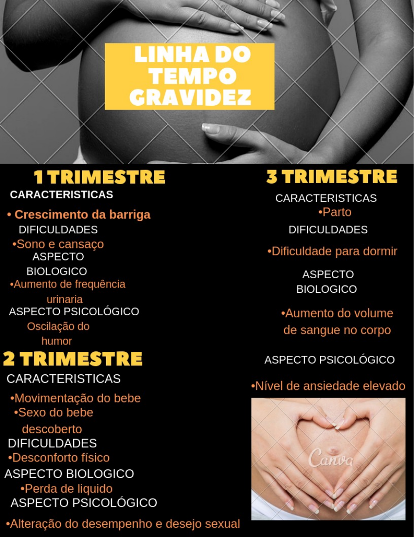 <p>LINHA DO TEMPO GRAVIDEZ</p><p>Usamos essa linha do tempo para entendermos algumas mudanças durante a gravidez,nela mostraremos aspectos biológico,psicológico, características e dificuldades visando mostrar para mães algumas coisas comuns durante esse período.</p><p>MÃE SUFICIENTE BOA E INCUFICIENTE BOA</p><p>Um termo que tem se tornado cada vez mais difundido é o da mãe suficientemente boa apresentado pela primeira vez pelo pediatra e psicanalista inglês Donald Winnicott sua teoria sugere que quando a mãe tenta ser perfeita acaba sofrendo mais do que deveria, pois suas expectativas acabam sendo frustradas.</p><p>Tentarmos estar disponível constantemente e responder imediatamente nossos filhos quando eles são bebês e é importante para que eles se sintam seguros e amados. Mas também dá a sensação ao bebê de que a mãe é uma parte sua e que é ela quem supre suas necessidades. Quando a mãe mostra ao filho que cada um é uma pessoa, isso gera uma frustração natural na criança.</p><p>A mãe suficientemente boa é aquela que frustra o filho ao mostrar que ele não terá seus desejos atendidos imediatamente, mas que também mostra que existe um tempo de espera e um limite e que ele não é sua extensão. Fazendo isso com a criança ainda pequena, a mãe está ajudando a se tornar uma pessoa resiliente.</p><p>Se por outro lado, o bebê é tido como objeto e se constrói em função da vontade alheia, o seu self será falso. O indivíduo será privado de liberdade, espontaneidade e criatividade. A mãe que não consegue ser suficientemente boa não proporciona ao bebê que ele se constitua como sujeito independente.</p><p>MAPA MENTAL COM CARACTERISTICAS DA FASE DE TRANSIÇAO ENTRE INFANCIA E ADOLESCENCIA.</p><p>A transição infância a adolescência é o período da vida em que ocorrem as transformações mais aparentes no corpo, em razão das alterações hormonais. Ao longo dos primeiros anos desse período, o pensamento lógico é fortalecido, torna-se mais estável e a criança é capaz de abstrações cada vez mais complexas. Nessa etapa da vida é comum busca da liberdade de expressão e de sentimentos.</p><p>Segue abaixo um mapa mental feito para mostra algumas diferença entre infância e adolescência.</p><p>JORNAL COM MANCHETEDE DIFICULDADES DOS PAIS E RESPECTIVAS</p><p>De acordo com estudos a criança hiperativa exerce um impacto significativo e às vezes inesperado sobre os membros da família, levando, em alguns casos, à falência emocional desta família,a criança com Transtorno do Déficit de Atenção com Hiperatividade (TDAH) pode provocar um grande desequilíbrio na dinâmica de toda família, gerando discórdia, inclusive no casal, em relação aos procedimentos utilizados na disciplina da mesma. É difícil para os pais lidar com a variação do seu comportamento, já que ela consegue certo controle sobre algumas atividades solicitadas pelos pais, levando-os a interpretar estes comportamentos da criança como de propósito ou executados só para irritá-los.</p><p>image1.png</p><p>image2.jpg</p><p>image3.png</p>