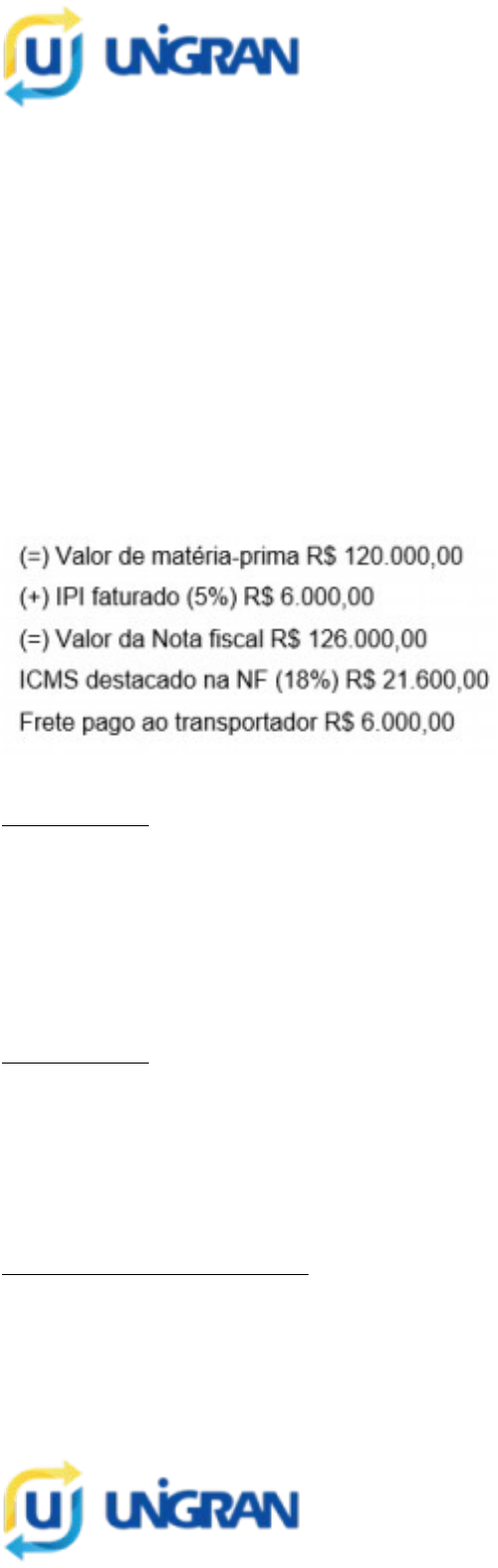 <p>CENTRO UNIVERSITÁRIO DA GRANDE DOURADOS PROVA</p><p>Protocolo: 651231</p><p>Exame</p><p>Curso: Engenharia de Produção</p><p>Disciplina: Engenharia de Custos</p><p>Ano: 20211</p><p>Semestre: 5</p><p>RGM: 093.1057 Aluno: Tiago Rudinei Silveira PROVA 01</p><p>Questão 1</p><p>Uma loja de móveis adquiriu determinada matéria-prima de um fornecedor. Os dados relativos a esta compra estão na figura a baixo. Determine o custo de aquisição dos materiais e assinale a alternativa correta.</p><p>a) R$120.000,00</p><p>b) R$126.000,00</p><p>c) R$110.400,00</p><p>d) R$116.400,00</p><p>Questão 2</p><p>Uma indústria de Estofados vende determinado modelo de Sofá e tem a Margem de Contribuição de R$ 1.200,00 por peça. Se em determinado mês ela vendeu 200 estofados e teve um Custo Fixo de R$150.000,00, qual foi o lucro que a empresa teve no mês?</p><p>a) R$ 240.000,00</p><p>b) R$ 1.200,00</p><p>c) R$ 90.000,00</p><p>d) R$ 150.000,00</p><p>Questão 3</p><p>Em relação aos Custos de Produção e sua classificação em Custos Fixos e Variáveis, Diretos e Indiretos assinale a alternativa CORRETA.</p><p>a) Mão de Obra Direta – Custo Indireto e Fixo.</p><p>b) Aluguel – Custo Direto e Fixo.</p><p>c) Salário da Manutenção - Custo Direto e Variável.</p><p>d) Material de Embalagem – Custo Direto e Variável.</p><p>Questão 4</p><p>Elabore o esquema do Custo de Produto Vendido aprendido em aula e assinale a alternativa correta que</p><p>Página 1 - 26/06/2021 às 12:10</p><p>CENTRO UNIVERSITÁRIO DA GRANDE DOURADOS PROVA</p><p>Protocolo: 651231</p><p>represente o CPV.</p><p>a) 1500</p><p>b) 1000</p><p>c) 1050</p><p>d) 1100</p><p>Questão 5</p><p>Uma fábrica de Sapato produz três modelos: Bota, Tênis e Sapatilha. Seus departamentos produtivos são: corte e pintura. Em julho de determinado ano, as quantidades e os tempos unitários apontados para fabricação dos modelos estão apresentados na figura abaixo. Os salários pagos pela empresa também estão abaixo especificados.</p><p>Em julho (31 dias de trabalho), tivemos 4 sábados, 4 domingos e 1 feriado que caiu em uma 6° feira. A jornada de trabalho é de 40 horas semanais, não se trabalhando aos sábados (jornada de 5 dias). Considerando que os encargos sociais representam 110% dos salários, calcule o custo de mão de obra direta apropriada à produção de cada um dos departamentos (corte e pintura) e assinale a alternativa que corresponda ao Custo/Hora do Corte e o Custo/Hora da Pintura.</p><p>a) R$16,80 ; R$ 12,60</p><p>b) R$ 18,90 ; R$ 13,60</p><p>c) R$ 16,99; R$ 15,49</p><p>d) R$ 1.899,90 ; R$ 1260,00</p><p>Questão 6</p><p>Uma fábrica de Colchões produz três modelos de espuma: soft, macio e pilow. Seus departamentos produtivos são: montagem e acabamento. Em dezembro de 20XX, as quantidades e os tempos unitários apontados para</p><p>Página 2 - 26/06/2021 às 12:10</p><p>CENTRO UNIVERSITÁRIO DA GRANDE DOURADOS PROVA</p><p>Protocolo: 651231</p><p>fabricação dos modelos estão apresentados na figura abaixo. Os salários pagos pela empresa também estão abaixo especificados.</p><p>Em dezembro (31 dias de trabalho), tivemos 4 sábados, 4 domingos e 1 feriado que caiu em uma 2° feira. A jornada de trabalho é de 40 horas semanais, não se trabalhando aos sábados (jornada de 5 dias). Considerando que os encargos sociais representam 120% dos salários, calcule o custo de mão de obra direta apropriada à produção de cada um dos departamentos (Montagem e Acabamento) e assinale a alternativa que corresponda ao Custo/Hora da Montagem e o Custo/Hora do Acabamento.</p><p>a) R$ 15,86 ; R$ 12,21</p><p>b) R$ 17,99 ; R$ 25,99</p><p>c) R$ 12,10 ; R$ 26,40</p><p>d) R$ 1280,00; R$ 2460,00</p><p>Questão 7</p><p>A contabilidade de custos da Cia. Poli registrou os gastos (em R$) que estão apresentados na figura abaixo durante o mês de dezembro. Os custos com administração da fábrica também estão apresentados na figura, bem como os valores consumidos de matéria prima e mão de obra em cada departamento. Sabe-se ainda que:</p><p>• Os estoques iniciais nos três departamentos produtivos eram inexistentes, e os departamentos Serraria e Montagem completaram suas etapas em 100% da produção, ou seja, no final do mês de dezembro de 19X4, esses departamentos não registravam valores de estoque final de produtos em processo. • A empresa produz três tipos de produtos: mesas para escritórios, cadeiras e balcões. • O contador de custo rateia os custos de administração da fábrica, proporcionalmente às áreas de ocupação de cada departamento, a saber: manutenção 250m²; Serraria 1.000m²; Montagem 750m²; Pintura 500m². • O departamento auxiliar de manutenção tem os custos rateados aos departamentos produtivos, proporcionalmente aos custos diretos de cada departamento.</p><p>• Em cada departamento foram atribuídos custos indiretos proporcionalmente à produção do mês: 400 mesas; 1.000 cadeiras; 600 balcões.</p><p>• Toda a produção inicia o processo na Serraria, passa pelo departamento de Montagem e é concluída no departamento de Pintura.</p><p>Assinale a alternativa que contenha, o custo total por produto. Mesas, cadeiras e balcões, respectivamente.</p><p>Página 3 - 26/06/2021 às 12:10</p><p>CENTRO UNIVERSITÁRIO DA GRANDE DOURADOS</p><p>PROVA</p><p>Protocolo: 651231</p><p>a) R$ 189.850,00 ; R$ 335.999,00 ; R$ 225.333,00</p><p>b) R$ 187.951,00 ; R$ 332.951,00 ; R$ 221.557,00</p><p>c) R$ 181.850,00 ; R$334.310,00 ; R$ 226.340,00</p><p>d) R$185.284,00 ; R$ 333.210,00 ; R$ 225.301,00</p><p>Questão 8</p><p>Uma loja de móveis adquiriu determinada matéria-prima de um fornecedor. Os dados relativos a esta compra estão na figura a baixo. Assinale a alternativa que corresponda ao custo de aquisição dos materiais.</p><p>a) R$40.000,00</p><p>b) R$42.000,00</p><p>Página 4 - 26/06/2021 às 12:10</p><p>CENTRO UNIVERSITÁRIO DA GRANDE DOURADOS PROVA</p><p>Protocolo: 651231</p><p>c) R$36.600,00</p><p>d) R$4