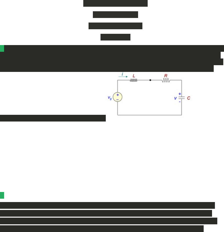 <p>Peso da Avaliação2,00</p><p>Prova86007508</p><p>Qtd. de Questões2</p><p>Nota10,00</p><p>1Os circuitos RLC são circuitos concentrados lineares invariantes no tempo, e descritos por uma equação diferencial ordinária de segunda ordem, linear, a coeficientes constantes. A solução completa da equação diferencial é a soma da solução homogênea e da solução particular. Com base nesse contexto, disserte sobre os circuitos RLC série.</p><p>Resposta esperada</p><p>*O circuito RLC-Série é composto por um resistor, um capacitor e um indutor, associados em série. *A solução completa de um circuito RLC série contempla uma parte que depende apenas do circuito e da energia armazenada inicialmente nos capacitores e indutores (resposta natural ou livre), e de uma segunda parte (resposta forçada) que depende do circuito e da entrada, ou seja, dos geradores independentes de tensão ou corrente. *Podemos também separar a resposta do circuito em dois termos: resposta transitória e permanente. *A resposta transitória será igual à resposta livre do circuito somente quando a entrada for nula com condições iniciais não nulas. *A resposta transitória é definida como a parte da resposta que tende a zero quando o tempo vai a infinito. *A resposta em regime permanente é a parte da resposta que permanece quando os transitórios se anulam, podendo ser valor constante ou um sinal que varia no tempo, como um sinal senoidal.</p><p>2</p><p>[Laboratório Virtual - Leis de Kirchoff] Utilizando como referência o Quadro Elétrico do Laboratório Virtual - Leis de Kirchhoff, apresentado na figura a seguir, observe o circuito que foi ajustado com a inserção de lâmpadas nos pontos 1, 3, 4, 6 e 9, e pontes em curto-circuito nos pontos 2, 5, 7 e 8.</p><p>Observação: apresente todos os cálculos realizados, explicando o passo a passo do seu raciocínio, assim como uma argumentação sólida, lógica, com as justificativas adequadas para fundamentar a tomada de decisão. É importante apresentar o equacionamento e os cálculos, quando necessário, para elucidar as suas respostas. Aproveite o momento para demonstrar a segurança nos equipamentos e procedimentos laboratoriais. Lembre-se de que esta é uma questão dissertativa, portanto, respostas diretas e simplificadas não serão consideradas. Mesmo que a resposta seja óbvia e direta, apresente suas conclusões, indicando como foram obtidas.</p><p>Supondo uma tensão de alimentação do circuito de 15 V, e que cada lâmpada possui uma</p><p>Resposta esperada Pelo circuito solicitado, existem três lâmpadas ativas (pontos 1, 6 e 9), sendo que a lâmpada do ponto 1 está ligada em série com o paralelo das lâmpadas 6 e 9. A corrente total do circuito é dada por: I = V/Req = 15/(16+16/2) = 625 mA. A tensão no ponto 1 pode ser calculada por: V1= 0,625.16=9,375 V. A tensão nos pontos 3 e 4 é zero, em função do curto circuito nos terminais do ponto 2, que coloca a ligação em paralelo das cargas em curto-circuito. V3=V4=0; I3=I4=0. A tensão nos pontos 6 e 9 tem o mesmo valor e pode ser calculada por: V6=(625E-3/2).16=5 V ou por V6 = 625E-3*(16/2) = 5 V; V9=V6. A corrente que flui pela lâmpada 6 é igual à corrente que flui pela lâmpada 9, e é dada por: I6=I9=625E-3/2=312,5 mA.</p><p>image1.png</p><p>image2.jpeg</p>