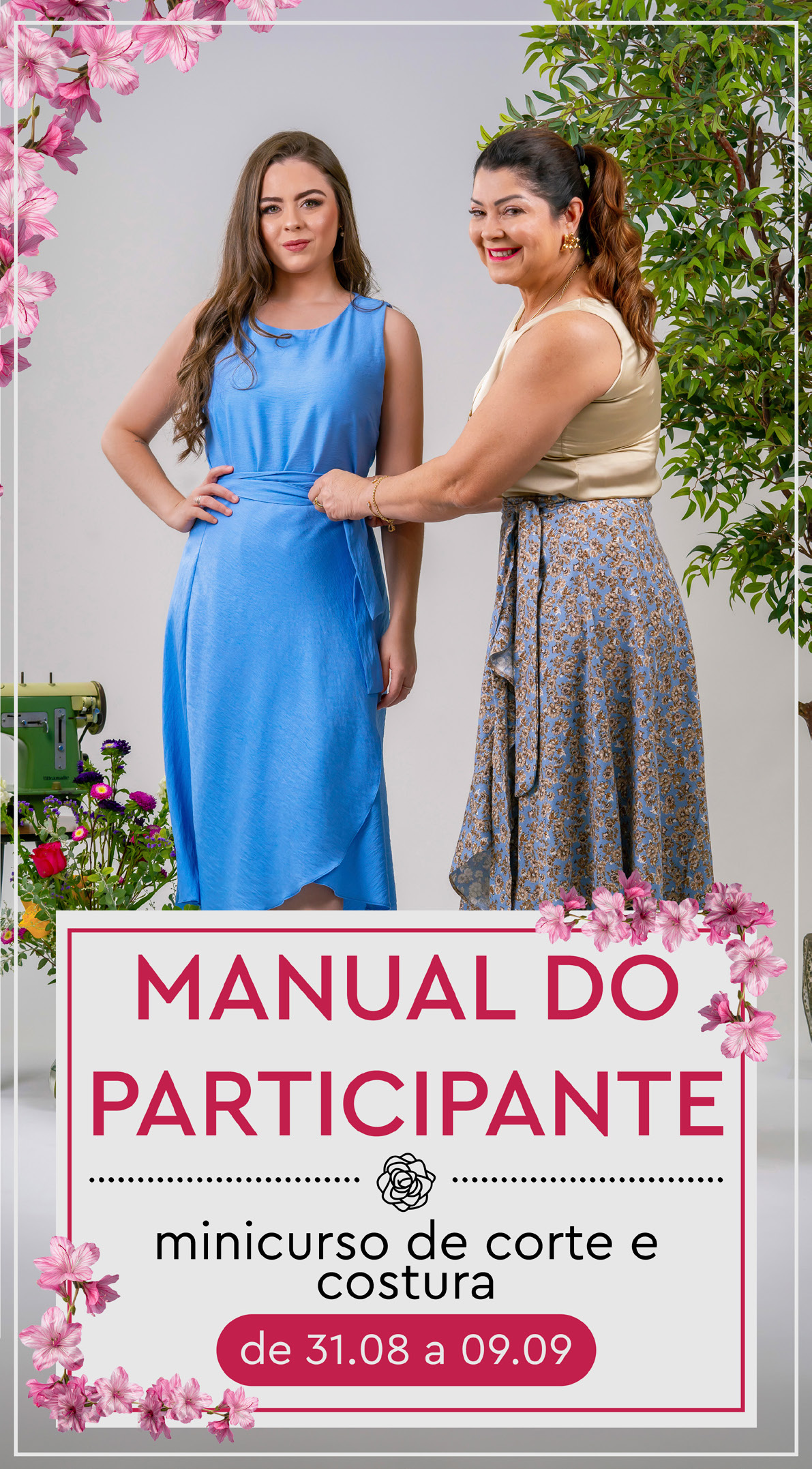 <p>ÍNDICE</p><p>O que é o Minicurso de Corte e Costura? ... 2</p><p>Marque as datas na agenda para não</p><p>perder nenhuma aula ou mentoria! ............ 3</p><p>Cronograma .................................................. 4</p><p>No minicurso você aprenderá ...................... 5</p><p>Aula de Aquecimento ..................................10</p><p>Lista de Materiais ........................................ 11</p><p>Metragem e Tecidos ....................................12</p><p>Aula 1 ............................................................14</p><p>Aula 2 ............................................................15</p><p>Aula 3 ............................................................16</p><p>Para tornar o minicurso ainda mais</p><p>completo, você ganhará: ............................ 17</p><p>Apostila de Estudos .....................................18</p><p>Sobre os Certificados ..................................19</p><p>Onde assistir as aulas e mentorias? ..........20</p><p>Idineia Merci, sua professora ......................21</p><p>Conheça o curso Gente que Ama Costurar . 22</p><p>No curso completo, você terá direito a: ...... 25</p><p>O que eu faço até as aulas começarem? .... 28</p><p>2</p><p>O que é o</p><p>Minicurso de</p><p>Corte e Costura?</p><p>É um evento 100% online e gratuito ministrado</p><p>pela costureira e professora Idineia Merci.</p><p>Você aprenderá como tirar medidas, cortar e</p><p>costurar um lindo vestido e uma saia sobreposta.</p><p>As aulas são minuciosas e 100% práticas,</p><p>utilizando o método que a professora Idineia</p><p>desenvolveu ao longo de 40 anos trabalhando</p><p>e se especializando como estilista, costureira e</p><p>modelista.</p><p>3</p><p>Marque as datas na agenda Marque as datas na agenda</p><p>para não perder nenhuma para não perder nenhuma</p><p>aula ou mentoria!aula ou mentoria!</p><p>AVISO</p><p>Todas as AULAS estão programadas para começar</p><p>às 09 horas, e as LIVE TIRA-DÚVIDAS, às 16 horas</p><p>em dias úteis, e às 10 horas aos sábados.</p><p>Para cada aula, você receberá um link por e-mail</p><p>e no grupo do WhatsApp, por isso</p><p>fique atento ao seu celular!</p><p>As aulas não são ao vivo; elas são gravadas!</p><p>Então não se preocupe se você não puder</p><p>assistir as aulas exatamente às 9 horas da manhã.</p><p>Você terá uma semana inteira para maratonar</p><p>todas as aulas quantas vezes quiser!</p><p>HORÁRIO DE BRASÍLIA</p><p>4</p><p>LIVE de</p><p>aquecimento</p><p>com entrega</p><p>da Apostila de</p><p>Estudos</p><p>31.08 | 10h</p><p>SÁBADO</p><p>AULA 1</p><p>Como tirar</p><p>medidas e plano</p><p>de corte do</p><p>vestido</p><p>02.09 | 09h</p><p>SEGUNDA-FEIRA</p><p>AULA 2</p><p>Costura do</p><p>vestido e plano</p><p>de corte da saia</p><p>LIVE TIRA</p><p>DÚVIDAS</p><p>da AULA 3</p><p>MATRÍCULAS</p><p>+ SURPRESA!</p><p>04.09 | 09h</p><p>QUARTA-FEIRA</p><p>07.09 | 10h</p><p>SÁBADO</p><p>09.09 | 09h</p><p>SEGUNDA-FEIRA</p><p>LIVE TIRA</p><p>DÚVIDAS</p><p>das AULAS 1 e 2</p><p>ENTREGA de CERTIFICADOS gratuitos</p><p>de participação</p><p>05.09 | 16h</p><p>QUINTA-FEIRA</p><p>11.09 | 12h</p><p>QUARTA-FEIRA</p><p>AULA 3</p><p>Costura da saia</p><p>godê</p><p>Avaliação final</p><p>DIA DE MARATONAR</p><p>O MINICURSO</p><p>INTEIRO</p><p>06.09 | 09h</p><p>SEXTA-FEIRA</p><p>07 E 08.09</p><p>SÁBADO E DOMINGO</p><p>C</p><p>ro</p><p>no</p><p>gr</p><p>am</p><p>a</p><p>5</p><p>No minicurso</p><p>VOCÊ APRENDERÁ</p><p>UM LINDO VESTIDO</p><p>sem</p><p>cinto</p><p>6</p><p>No minicurso</p><p>VOCÊ APRENDERÁ</p><p>UM LINDO VESTIDO</p><p>com</p><p>cinto</p><p>7</p><p>UMA LINDA SAIA</p><p>No minicurso</p><p>VOCÊ APRENDERÁ</p><p>8</p><p>você pode usar a saia...</p><p>sobre</p><p>posta</p><p>ao vestido</p><p>9</p><p>você pode usar a saia...</p><p>com</p><p>blusa</p><p>a seu gosto</p><p>10</p><p>Aula de Aquecimento</p><p>Nesta aula de aquecimento</p><p>do nosso minicurso, você vai</p><p>conhecer todos os materiais</p><p>que serão utilizados nas</p><p>aulas de corte e costura.</p><p>Dessa forma, você estará</p><p>preparada com todos os</p><p>utensílios para confeccionar a</p><p>saia e o vestido.</p><p>APERTE AQUI PARA ASSISTIR A AULA</p><p>https://www.youtube.com/watch?v=YqdshzeZZgE</p><p>11</p><p>Lista de Materiais</p><p>Confira aqui a lista do que você vai</p><p>precisar para aproveitar 100% das</p><p>aulas do minicurso.</p><p>Régua transparente de 60 cm.</p><p>Lápis preto.</p><p>Borracha.</p><p>Papel para molde Kraft.</p><p>Fita métrica.</p><p>Tesoura para papel e tesoura para tecido.</p><p>Agulha de mão.</p><p>Giz.</p><p>Linha 100% poliéster para costura (3 retroses).</p><p>Entretela de malha.</p><p>Alfinetes.</p><p>Tecidos.</p><p>12</p><p>Metragem e Tecidos</p><p>Veja abaixo a metragem indicada para confeccionar</p><p>as roupas do minicurso.</p><p>Quanto aos tecidos, as peças podem ser</p><p>confeccionadas nas seguintes opções:</p><p>Para a saia:</p><p>Para o vestido:</p><p>METRAGEM</p><p>METRAGEM</p><p>TAMANHO</p><p>TAMANHO</p><p>1,30 m</p><p>3 m</p><p>36 ao 44</p><p>36 ao 44</p><p>46 ao 52</p><p>46 ao 52</p><p>54 ao 62</p><p>54 ao 62</p><p>2,10 m</p><p>3 m</p><p>2,40 m</p><p>3 m</p><p>* A metragem não altera porque o tecido é cortado no viés.</p><p>Cambraia: é um</p><p>tecido leve, fresco e</p><p>transparente, ideal para</p><p>o verão, com caimento</p><p>delicado e 100% natural.</p><p>https://www.maximustecidos.com.br/tecidos/algodao</p><p>13</p><p>Crepe: é um tecido de</p><p>caimento leve, ideal</p><p>para fazer roupas que</p><p>pedem mais fluidez e</p><p>ficam mais soltas no</p><p>corpo.</p><p>Linho: outro tecido</p><p>natural que é fresco e</p><p>confortável, ideal para</p><p>climas quentes.</p><p>Viscose: é leve e fresco,</p><p>ideal para roupas de</p><p>verão como saias</p><p>e vestidos, sendo</p><p>confortável e com um</p><p>toque agradável.</p><p>Cetim: é um tecido</p><p>brilhante e elegante,</p><p>com toque liso e fluído,</p><p>propo