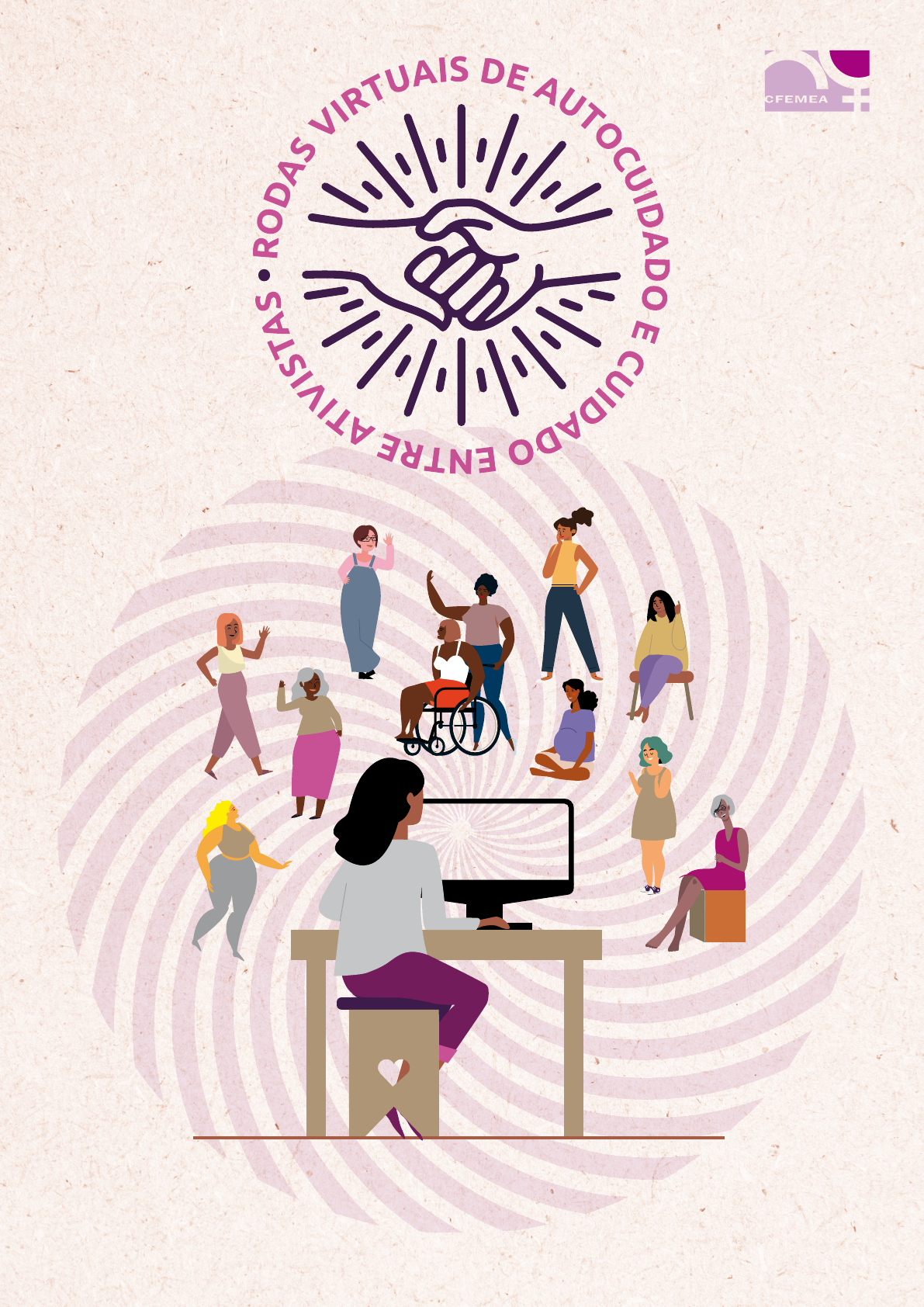 <p>APOIO</p><p>REALIZAÇÃO</p><p>Ô abre alas</p><p>Pras mulheres se cuidar. (Bis)</p><p>Peço licença pra poder desabafar</p><p>Eu sou da luta, não posso negar.</p><p>Ô abre alas</p><p>Pras mulheres se cuidar. (Bis)</p><p>Os retrocessos vêm nos sufocar</p><p>Autocuidado vem pra aliviar.”</p><p>Música de Chiquinha Gonzaga</p><p>(Adaptada para a nossa roda por Helena Alves Pinto)</p><p>“</p><p>3</p><p>APRESENTAÇÃO | METODOLOGIA | PASSO A PASSO | ROTEIROS | RELATOS</p><p>ESCRITAS | PARA CONTINUAR GIRANDO | FICHA TÉCNICA | APOIO</p><p>Há seis anos, quando o CFEMEA começou a desenvolver uma</p><p>linha de ação para o autocuidado e o cuidado entre ativistas,</p><p>várias companheiras se interessaram, se somaram e uma rede</p><p>começou a ser tecida. Desde então, estamos experimentando,</p><p>compartilhando, aprendendo, criando e favorecendo a apropriação</p><p>de metodologias e ferramentas para o autocuidado, o cuidado entre</p><p>mulheres ativistas e a proteção de defensoras de direitos humanos.</p><p>Foi a partir desse acúmulo que, junto a outras ativistas, coletivos e</p><p>movimentos, assumimos o desafio de construir uma resposta cuidadosa</p><p>e solidária com as mulheres, frente à pandemia da COVID-19 e às crises e</p><p>agravos estruturais dela decorrentes.</p><p>Decidimos ser Tecelãs do Cuidado, elaborar e fazer girar as Rodas</p><p>Virtuais de Autocuidado e Cuidado entre Ativistas em diferentes espaços</p><p>cibernéticos e territoriais, e facilitar cuidados online para a liberação de tensões</p><p>e o alívio de estresse.</p><p>APRESENTAÇÃO</p><p>CFEMEA - Rodas Virtuais de Autocuidado e Cuidado entre Ativistas | Apresentação</p><p>4</p><p>APRESENTAÇÃO | METODOLOGIA | PASSO A PASSO | ROTEIROS | RELATOS</p><p>ESCRITAS | PARA CONTINUAR GIRANDO | FICHA TÉCNICA | APOIO</p><p>A mobilização coletiva do cuidado, da solidariedade e da resistência</p><p>são forças que decidimos potencializar para enfrentar o recrudescimento</p><p>das ameaças, a violação de direitos, o genocídio, o autoritarismo, a fome e</p><p>a subtração das condições básicas de proteger a saúde, sanar a doença e</p><p>sustentar a vida.</p><p>Em coletivos, comunidades e redes, o fortalecimento dos laços,</p><p>a confiança e a reciprocidade do cuidado têm conseguido romper as ataduras</p><p>do individualismo, que têm condenado ao sofrimento, ao abandono e à morte</p><p>de milhares de pessoas marginalizadas, discriminadas, superexploradas</p><p>e invisibilizadas.</p><p>Neste contexto de emergência sanitária, somos nós, as mulheres, que</p><p>temos assumido as maiores responsabilidades com o cuidado, a proteção</p><p>das vidas e a garantia da sobrevivência das famílias, das comunidades e</p><p>dos povos aos quais pertencemos, seja nos hospitais, nas nossas casas,</p><p>nos cantos onde vivemos. Tudo isso em condições extremamente desiguais,</p><p>injustas e arriscadas.</p><p>Faltam serviços públicos e infraestrutura sanitária. A superexploração</p><p>do trabalho (produtivo e reprodutivo) é uma constante. A violência estrutural,</p><p>machista, racista, etnocêntrica e institucional, o fascismo instalado no poder,</p><p>a depredação do SUS, a corrosão do sistema de seguridade social, a eliminação</p><p>dos nossos direitos e a mercantilização dos bens comuns tornam esse</p><p>CFEMEA - Rodas Virtuais de Autocuidado e Cuidado entre Ativistas | Apresentação</p><p>5</p><p>APRESENTAÇÃO | METODOLOGIA | PASSO A PASSO | ROTEIROS | RELATOS</p><p>ESCRITAS | PARA CONTINUAR GIRANDO | FICHA TÉCNICA | APOIO</p><p>CFEMEA - Rodas Virtuais de Autocuidado e Cuidado entre Ativistas | Apresentação</p><p>momento pesadíssimo. Além da emergência sanitária, enfrentamos a</p><p>gravidade das crises política e econômica.</p><p>Com o objetivo de continuarmos nos dedicando às lutas de resistência,</p><p>vencermos a batalha diária pela sobrevivência e que cada uma possa entregar</p><p>de si – a fim de superar essa emergência sanitária, temos que ter espaços para</p><p>nos cuidarmos e mobilizarmos a solidariedade com quem está vivendo em</p><p>condições mais difíceis, em alta vulnerabilidade.</p><p>“A gente precisa se ter, pra poder se dar”, como disse nossa companheira,</p><p>ativista da Articulação de Mulheres Brasileiras – AMB, Gabi Negríndia.</p><p>Desde que se instalou o Estado de Calamidade, vemos as mulheres</p><p>experimentando medo, insônia, angústia, ansiedade, aceleramento</p><p>mental, estresse, dificuldade de se concentrar, irritabilidade, tensão</p><p>contínua, esgotamento emocional, isolamento, tristeza, depressão, pânico,</p><p>cansaço sem fim.</p><p>Essas emoções e as experiências pesadas que muitas de nós estamos</p><p>vivendo têm implicações diretas sobre as condições de nos mantermos</p><p>coesas, nos organizarmos e nos articularmos. Por isso mesmo, o autocuidado</p><p>e o cuidado entre ativistas são tão importantes. Sabemos que as condições</p><p>materiais, intelectuais e emocionais de cada uma de nós são fatores</p><p>importantes na construção da força coletiva das nossas lutas. Cada ativista</p><p>6</p><p>APRESENTAÇÃO | METODOLOGIA | PASSO A PASSO | ROTEIROS | RELATOS</p><p>ESCRITAS | PARA CONTINUAR GIRANDO | FICHA TÉCNICA | APOIO</p><p>está de corpo e alma na luta por direitos e pelo bem-viver, entregando de si às</p><p>lutas e nelas se fortalecendo.</p><p>Face à pandemia da COVID-19, à instalação do Estado de Calamidade e</p><p>à exigência de distanciamento social, inventamos alternativas metodológicas,</p><p>abrimos outros espaços, criamos novas oportunidades e adaptamos</p><p>ferramentas para lidarmos com tensões, estresse, exaustão, medos, dores,</p><p>perdas, desespero... e, assim, potencializamos a justa indignação e disposição</p><p>das mulheres para a luta.</p><p>Na velocidade da emergência, buscamos encontrar as mulheres ativistas,</p><p>reunir nossos saberes para, j