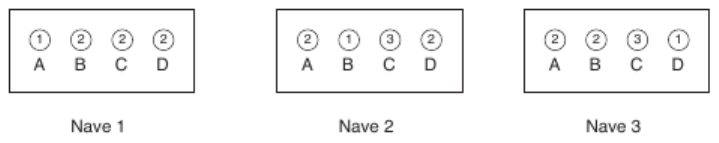<p>The Galactic Confederation installed a new teletransport system in its spaceships. Each spaceship</p><p>received a teletransport cabin, in which there is a panel with four buttons. Each button is labeled with</p><p>a different letter A, B, C or D and with a number which indicates the spaceship to which the user will be</p><p>instantly transported if the respective button is pressed (as everyone knows, Confederation spaceships</p><p>are identified by integers from 1 to N).</p><p>To use the system, the user must buy a ticket for each trip he wishes to make (one trip equals one</p><p>button press). Notice that as the number of buttons in the panel is small compared to the number</p><p>of Confederation spaceships, the user may have to buy a multiple ticket of L trips to go from a given</p><p>spaceship S to another spaceship T .</p><p>For example, for the spaceships in the figure below, if the user is inside the cabin of spaceship 3</p><p>and presses button B he is transported to spaceship 2. If he has a multiple ticket and presses button B</p><p>again he is then transported to spaceship 1.</p><p>Your task in this problem is, given the start spaceshift S, the destination spaceship T , and the</p><p>number of trips L of a ticket, to determine the number of distinct sequences of L buttons that take the</p><p>user from spaceship S to spaceship T . For example, for the spaceships in the figure above, there are</p><p>four distinct sequences of L = 2 buttons that take the user from spaceship S = 3 to spaceship T = 1:</p><p>CD, DA, AB, and BB.</p><p>Input</p><p>The input contains several test cases. The first line of a test case contains two integers N (1 ≤ N ≤ 100)</p><p>and L (0 ≤ L < 230), indicating respectively the number of spaceships and the number of trips in the</p><p>ticket. The second line of a test case contains two integers S and T (1 ≤ S, T ≤ N), indicating</p><p>respectively the start spaceship and the destination spaceship. Each of the following N lines describes</p><p>the panel in the cabin of a spaceship. The i-th line (1 ≤ i ≤ N) contains four integers A, B, C and</p><p>D (1 ≤ A,B,C,D ≤ N), representing the numbers attached to the four buttons in the teletransport</p><p>cabin of spaceship number i.</p><p>Output</p><p>For each test case in the input your program must produce a single line, containing a single integer,</p><p>which must be equal to r module 104 , where r is the number of distinct sequences of L buttons that</p><p>take the user from spaceship S to spaceship T .</p><p>Sample Input</p><p>2 20</p><p>1 1</p><p>2 2 2 2</p><p>1 1 1 1</p><p>2 29</p><p>1 1</p><p>2 2 2 2</p><p>1 1 1 1</p><p>2 0</p><p>1 1</p><p>2 2 2 2</p><p>1 1 1 1</p><p>2 0</p><p>1 2</p><p>2 2 2 2</p><p>1 1 1 1</p><p>3 2</p><p>3 1</p><p>1 2 2 2</p><p>2 1 3 2</p><p>2 2 3 1</p><p>Sample Output</p><p>7776</p><p>0</p><p>1</p><p>0</p><p>4</p>