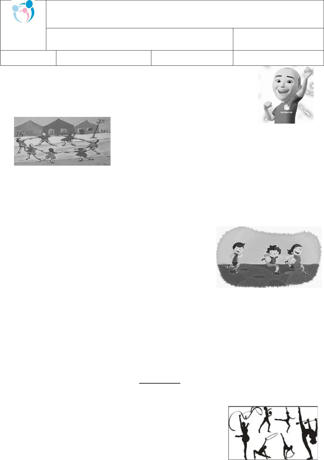 <p>Escola Estadual de Ensino Fundamental e Médio Gisela Salloker Fayet</p><p>ATIVIDADE EDUCAÇÃO FÍSICA 1º TRIMESTRE</p><p>ALUNO:</p><p>Pedagogo : Marislei Zandonadi Schunk</p><p>Turma: 2º V01/02</p><p>Professor: Leandro Stein Amaro</p><p>Data: _____/_____/_____</p><p>Total da Prova:</p><p>“NÃO TENHA MEDO DE FALHAR. ESSE É O CAMINHO PARA O SUCESSO”.</p><p>LeBron James</p><p>JOGOS E BRINCADEIRAS</p><p>OS JOGOS E AS BRINCADEIRAS SEMPRE FIZERAM PARTE DA CULTURA DAS PESSOAS. ESTAS ATIVIDADES SÃO IMPORTANTES, PORQUE ELAS NOS AJUDAM EM NOSSA FLEXIBILIDADE, CRIATIVIDADE, FANTASIA E ATÉ NA NOSSA FORMA DE SE EXPRESSAR.</p><p>DEFINIÇÃO</p><p>OS JOGOS E AS BRINCADEIRAS SÃO UMA ATIVIDADE QUE DEVEM SER REALIZADAS DE FORMA LIVRE, SEM OBRIGAÇÃO. ELES POSSIBILITAM A LIBERDADE E IMPLICAM EM NOSSA CULTURA E EM NOSSA COMUNIDADE. OS JOGOS E AS BRINCADEIRAS NA MAIORIA DAS VEZES POSSUEM REGRAS SIMPLES QUE SERVEM PARA ORGANIZAR A COMPETIÇÃO. TODAVIA, O IMPORTANTE É SE ENTRETER E SE DIVERTIR, NÃO SE PREOCUPANDO COM O TEMPO E MUITO MENOS COM REGULAMENTOS.</p><p>BRINCAR SEMPRE</p><p>DESSE MODO, JOGAR E BRINCAR SÃO ATIVIDADES ESSENCIAIS E SEMPRE FIZERAM PARTE DA NOSSA VIDA, POIS CRIANÇAS, ADULTOS E ATÉ OS IDOSOS AINDA GOSTAM DE SE DIVERTIR. VEJA ALGUMAS BRINCADEIRAS QUE POSSIVELMENTE VOCÊ CONHECE: PAR OU ÍMPAR – PEDRA, PAPEL E TESOURA – POLÍCIA E LADRÃO – ESCONDE-ESCONDE</p><p>– COELHINHO SAI DA TOCA... ENFIM, SÃO MUITAS. POR ISSO, MELHOR QUE CELULAR, É SE DIVERTIR COM OS AMIGOS E COLEGUINHAS.</p><p>ATIVIDADES</p><p>01- NA FIGURA ABAIXO ESTÁ SENDO REALIZADO UM ESPORTE QUE TEM MOVIMENTO E DANÇA. ASSINALE A ALTERNATIVA CORRETA:</p><p>A – BRINCADEIRA.</p><p>B- GINÁSTICA ARTÍSTICA.</p><p>C- FUTEBOL.</p><p>D- LUTAS.</p><p>02- QUAL É O JOGO QUE ENVOLVE FORÇA, ONDE DUAS EQUIPES DISPUTAM ENTRE OS COMPETIDORES, FICAM DISPOSTOS EM LINHA RETA SEGUIDOS AO LONGO DO CABO.ENTRE DOIS GRUPOS EXISTE UMA LINHA CENTRAL. O CABO É MARCADO EM SEU PONTO CENTRAL. O OBJETIVO DO JOGO É PUXAR O GRUPO OPONENTE, FAZENDO COM QUE ELE CRUZE A LKINHA CENTRAL.</p><p>A- PIQUE BANDEIRA</p><p>B- CABO DE GUERRA.</p><p>C- PEGA-PEGA.</p><p>D- FUTSAL.</p><p>03- QUAL É O ESPORTE QUE TEM DOIS TIMES JOGANDO COM AS MÃOS E OS PONTOS SÃO REALIZADOS AO JOGAR A BOLA DENTRO DA CESTA.</p><p>A- NATAÇÃO.</p><p>B- FUTEBOL.</p><p>C- BASQUETE.</p><p>D- HANDEBOL.</p><p>04- ENCONTRE NO CAÇA PALAVRAS O NOME DOS ESPORTES QUE ESTÃO NO QUADRO.</p><p>05- VAMOS IDENTIFICAR QUAL DAS MODALIDADES ESPORTIVAS PODEMOS PRATICAR USANDO OS MEMBROS INFERIORES.</p><p>06- IDENTIFIQUE OS NOMES DOS ESPORTES ABAIXO:</p><p>____________________ _________________ ______________________________</p><p>07- LIGUE AS IMAGENS AO NOME DA BRINCADEIRA:</p><p>08- LIGUE AS FIGURAS AO NOME DO ESPORTE:</p><p>CICLISMO</p><p>FUTEBOL</p><p>NATAÇÃO</p><p>VÔLEI</p><p>PING PONG (TÊNIS DE MESA)</p><p>BASQUETE</p><p>09- ESCREVA O NOME DAS BRINCADEIRAS ABAIXO:</p><p>__________________________ ________________________ ____________________</p><p>__________________________ ______________________ _______________________</p><p>10- ENCONTRE NO CAÇA PALAVRAS O NOME DOS BRINQUEDOS E BRINCADEIRAS. CONSULTE NO BANCO DE PALAVRAS.</p><p>11- COMPLETE O NOME DO BRINQUEDO COM A LETRA QUE FALTA:</p><p>12- CONTE O NÚMERO DE BOLAS E DEPOIS RESPONDA</p><p>AGORA ESCREVA A QUANTIDADE DE CADA TIPO DE BOLA EM CADA QUADRO</p><p>.</p><p>image4.png</p><p>image5.png</p><p>image6.png</p><p>image7.png</p><p>image8.png</p><p>image9.png</p><p>image10.png</p><p>image11.png</p><p>image12.png</p><p>image13.png</p><p>image14.png</p><p>image15.png</p><p>image16.png</p><p>image17.png</p><p>image18.png</p><p>image19.png</p><p>image20.png</p><p>image21.png</p><p>image22.png</p><p>image23.png</p><p>image24.png</p><p>image25.png</p><p>image26.png</p><p>image1.jpeg</p><p>image27.png</p><p>image28.png</p><p>image29.png</p><p>image30.png</p><p>image31.png</p><p>image32.png</p><p>image2.png</p><p>image3.png</p>