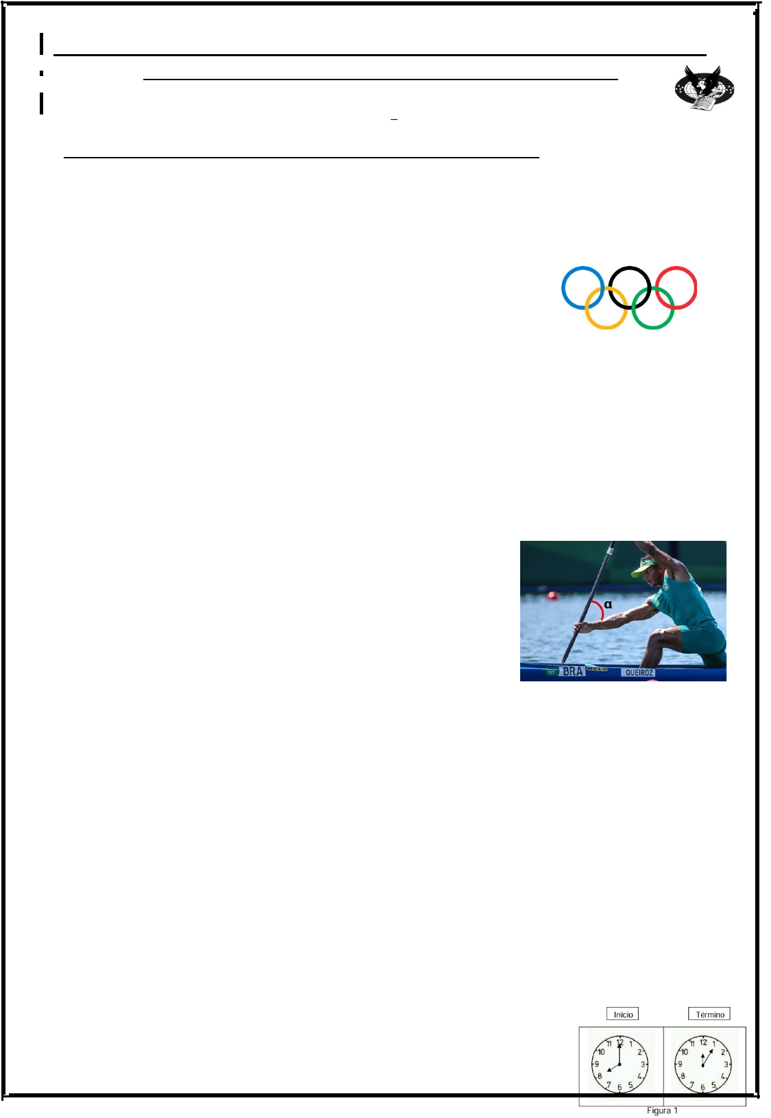 <p>TRABALHO DE RECUPERAÇÃO DO PROJETO MATEMÁTICA</p><p>Instituto de Educação Eliana Duarte da Silva Breijão</p><p>Aluno(a):____________________________________Data: ______________</p><p>Turma: _ Valor: _2,5__ Bimestre:_ 3° Nota:___ Professora: Waleska</p><p>· Observação: Deixar os cálculos necessários no trabalho.</p><p>1. Em 2012, ocorreu a 30ª edição dos Jogos Olímpicos de Verão, em Londres. Sabendo que esse evento acontece a cada quatro anos, em que ano ocorrerá a 35ª edição?</p><p>a) 2024 b) 2028 c) 2032 d) 2035</p><p>2. Observe o símbolo oficial das Olimpíadas.</p><p>Considerando que os anéis entrelaçados são circunferências de diâmetro igual a 1 m e que são todas iguais, a quantidade de cano necessária para confeccionar esse símbolo é: (Use π = 3)</p><p>a) 12,5 metros. b) 15 metros. c) 18,5 metros. d) 30 metros.</p><p>3- Concebido em 1913 pelo Barão Pierre de Coubertin, fundador dos Jogos Olímpicos modernos, o símbolo traz cinco anéis. Sobre o símbolo desse evento, é correto afirmar que</p><p>a) São cinco circunferências concêntricas.</p><p>b) É composto por cinco circunferências tangentes.</p><p>c) São circunferências entrelaçadas que possuem o mesmo diâmetro.</p><p>d) É formado por circunferências de mesmo raio e mesmo centro.</p><p>4- Observe a imagem da prova de canoagem dos Jogos Olímpicos.</p><p>Na imagem, o ângulo α pode ser classificado como</p><p>a) agudo. b) reto. c) obtuso. d) raso.</p><p>5- Uma pista olímpica circunda um campo de dimensões 400 metros de comprimento por 7 metros de largura. Quantos metros terá percorrido um atleta após realizar três voltas completas em torno desse campo?</p><p>a) 814 metros. b) 1.221 metros. c) 1.628 metros. d) 2.442 metros.</p><p>6- Nos Jogos Olímpicos 2024, a delegação brasileira é a maior da América do Sul com 274 atletas e, pela primeira vez na história, o país conta com uma delegação majoritariamente feminina em Jogos Olímpicos, totalizando 154 mulheres.</p><p>A fração que representa a quantidade de mulheres em relação ao total de atletas é</p><p>a) 77/137 b) 77/274 c) 137/274 d) 137/77</p><p>7- Os relógios abaixo (Figura 1) marcam, respectivamente, os horários de início e término da cerimônia de abertura dos Jogos Olímpicos em Paris. Os organizadores tinham menos de seis horas disponíveis para realizar toda a cerimônia. Desta forma, podemos afirmar que a cerimônia de abertura durou, aproximadamente,</p><p>a) 235 minutos. b) 245 minutos.</p><p>c) 185 minutos. d)215 minutos.</p><p>8- Nos Jogos Olímpicos Paris -2024, a prova mais rápida do atletismo, os 100 m rasos, começou com oito séries eliminatórias com oito atletas cada, sendo que, de cada uma das séries, classificaram-se para as semifinais os dois primeiros velocistas. Além dos já classificados, os atletas que fizeram os oito melhores tempos também avançaram para as semifinais. Quantos atletas passaram para as semifinais dos 100 m rasos?</p><p>a) 16. b) 32 c) 20. d) 24.</p><p>9- Nos Jogos Olímpicos de Paris, o atleta da Suécia foi a medalha de ouro (primeiro lugar) no salto com vara de Armand Duplantis, alcançando a incrível marca de 6,03 m. O segundo lugar ficou com o americano Sam Kendricks e o terceiro lugar ficou com o Grego Emmanouil Karalis. Para descobrir as alturas dos melhores saltos dos segundo e terceiro lugares, são dadas as seguintes dicas:</p><p>DICA 1: a diferença entre as alturas dos saltos dos segundo e terceiro lugares foi de 130 milímetros.</p><p>DICA 2: somando as alturas dos saltos realizados por Armand Duplantis, por Sam Kendricks e por Emmanouil Karalis, obtemos um total de 1 786 centímetros. Assim, pode-se afirmar que os saltos que garantiram a medalha de prata (segundo lugar) para o americano e a de bronze (terceiro lugar) para o grego, respectivamente, foram de</p><p>a ) 5,99 m e 5,86 m. b ) 5,92 m e 5,79 m.</p><p>c ) 5,88 m e 5,75 m. d ) 5,98 m e 5,85 m.</p><p>10- Nos Jogos de Londres, o nadador Michael Phelps, dos Estados Unidos, tornou-se o maior medalhista olímpico de todos os tempos, totalizando a conquista de 22 medalhas (18 de ouro, 2 de prata e 2 de bronze). Nas provas de revezamento, ele teve ajuda de seus companheiros para chegar à vitória. A listagem abaixo mostra o desempenho deste fenômeno das piscinas nas Olimpíadas de 2012:</p><p>A diferença entre a soma dos tempos das vitórias nas provas de revezamento e a soma dos tempos das vitórias nas provas individuais é igual a:</p><p>a) 7 min 43s b) 7 min 53s c) 8 min 23s d) 9 min</p><p>11- O Brasil tornou-se bicampeão olímpico no vôlei feminino. Provando mais uma vez que sabem superar as adversidades, as “meninas” da seleção brasileira não se perturbaram com a derrota no primeiro set por 11x25 (em apenas 21 minutos) e, com uma atuação impecável nos sets seguintes, (25x17 em 26 minutos, 25x20 em 27 minutos e 25x17 em 26 minutos), venceram os Estados Unidos por 3 a 1. A decisão em Londres repetiu o placar da final em Pequim, também disputado contra as norte-americanas. A média de pontos marcados por minuto nesta emocionante final foi igual a:</p><p>a) 1,65 b) 1,29 c) 1,00 d) 0,86</p><p>12- O estádio de Paris é o mais leve estádio olímpico já construído no mundo e tem a capacidade para 80.000 pessoas. Na cerimônia de encerramento, o estádio ficou lotado e o preço do ingresso variou de acordo com o setor escolhido. A tabela a seguir mostra os valores dos ingressos e o número de pagantes por setor:</p><p>Assinale a afirmativa correta:</p><p>a) 6.000 pessoas entraram sem pagar ingresso.</p><p>b) A arrecadação do setor A foi maior que a do setor C.</p><p>c) Se todos os presentes tivessem pago o mesmo valor de ingresso, para que a arrecadação total fosse a mesma, esse valor ficaria entre R$ 350,00 e R$ 360,00.</p><p>d) O setor de maior arrecadação foi o que teve o menor valor de ingresso.</p><p>13_ Nos Jogos Olímpicos de 1948, que também aconteceram em Londres, a 