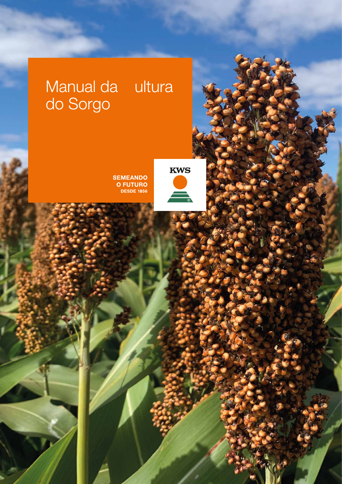 <p>Foto: Marcelo Guimarães Brito</p><p>C</p><p>Autor:</p><p>Dimas A. Del. Bosco Cardoso</p><p>Gerente de Silagem América do Sul</p><p>3 KWS - Manual da Cultura do Sorgo</p><p>A planta de sorgo (Sorghum bicolor L. Moench) é originária, provavelmente, da África, mas há citações</p><p>que dizem que poderia ser da Índia também. Domesticada por volta de 3.000 anos a.C. no Egito antigo</p><p>à Etiópia, onde posteriormente se dispersou por diversos países na Ásia, no Oriente e na Europa.</p><p>Chegou ao hemisfério ocidental e às Américas com sementes trazidas através dos escravos africanos. A</p><p>primeira lavoura plantada com sorgo de que se tem notícia na América foi no ano de 1853, por William</p><p>Quatro anos mais tarde, em 1857, o Departamento de Agricultura dos Estados Unidos lançou o que</p><p>pode ter sido a primeira cultivar comercial "moderna" de sorgo do mundo, daí então, foi uma cultura</p><p>amplamente manipulada através de gerações para satisfazer às necessidades humanas. Acredita-se que</p><p>foi introduzida no Brasil da mesma forma, através de escravos, com o nome de “Milho d’Angola” ou</p><p>“Milho da Guiné” e, à partir da segunda década do século XX até fins dos anos 60, a cultura é reintroduzi-</p><p>da de forma ordenada no país através dos institutos públicos de pesquisa e universidades</p><p>Atualmente, segundo a APPS (Associação Paulista dos Produtores de Sementes) no relatório de</p><p>04/2018, na safra de 2016/17, tivemos uma área de 866 mil ha de sorgo granífero, 287 mil ha de sorgo</p><p>silageiro e 80 mil ha de sorgo forrageiro, a um consumo médio de sementes de 8 kg/ha (grãos), 6 kg/ha</p><p>(silagem) e 12 kg/ha (forragem), o que é muito importante para a economia e para o mercado de</p><p>R. Prince de Nova Iorque, EUA.</p><p>(EMBRAPA/CNPMS, 2014).</p><p>consumo de rações e volumosos no Brasil.</p><p>1. Granífero: Geralmente de porte mais baixo (1,0 a 1,5 m) para facilitar os tratos culturais e a colheita</p><p>mecânica, tem população mais alta em função do porte baixo, em torno de 160 a 220 mil plantas/ha, e</p><p>é semeado, em sua maior parte (cerca de 95%), na 2ª safra. Possui um consumo médio de 8 a 9 kg/ha</p><p>2. Silageiro: Geralmente de porte médio a alto (2,20 a 3,50 m), tem população variável, em torno de 120</p><p>a 150 mil plantas/ha, de acordo com o porte e a cultivar, de modo a evitar o acamamento das plantas, é</p><p>semeado tanto no verão (65% do total) quanto na safrinha (35% do total e crescendo) para silagem. No</p><p>verão, as cultivares de ciclos mais longos promovem melhor aproveitamento da rebrota, que pode</p><p>chegar de 30 a 50% do volume de rendimento do 1º corte. Se o objetivo for aproveitar a rebrota, colher</p><p>o mais baixo que puder, pois a rebrota e os perfilhos saem do 1º nó rente ao solo. Se colher alto, a planta</p><p>Existem sorgos silageiros de duplo propósito (grãos/silagem) com porte entre 1,80 e 2,20 m, com intuito</p><p>de melhor qualidade energética (maior relação grãos/massa seca), porém não há bom aproveitamento</p><p>de volume na rebrota. Possuem um consumo médio de 4,2 a 6 kg/ha de sementes conforme o tipo da</p><p>3. Forrageiro: Oriundo de um híbrido de sorgo com capim sudão, é também chamado de sorgo de corte</p><p>e pastejo, semeado para pastagens e fornecimento rápido de forragem ao animal em detrimento do seu</p><p>rápido crescimento tanto na safra quanto na 2ª safra. Produz cerca de 15 a 25 t/ha de forragem verde</p><p>por corte/pastejo com 1,5 m de altura e, de acordo com a época de plantio, pode-se obter de 3 a 5</p><p>de sementes.</p><p>vai demorar a secar e a rebrotar, na sequência.</p><p>cultivar, porte e época de plantio.</p><p>cortes ou pastejos na rebrota, devido à sua alta capacidade de perfilhamento.</p><p>Sorgo Granífero</p><p>Sorgo Sacarino</p><p>Sorgo Silageiro</p><p>Sorgo Biomassa</p><p>Sorgo Forrageiro</p><p>Sorgo Vassoura</p><p>KWS - Manual da Cultura do Sorgo 4</p><p>Possui proteína mais elevada (9 a 12%) e fibras de boa digestibilidade. Seu plantio pode ser em linhas (17</p><p>a 50 cm) ou a lanço nas áreas de cultivo, com uma leve gradagem para incorporar, nesse caso. O</p><p>consumo de sementes em semeadura de máquinas é, em média, 12 kg/ha, mas a lanço pode variar de</p><p>15 a 20 kg/ha, de acordo com o tipo de preparo da área e a necessidade de fechamento.</p><p>4. Sacarino: Geralmente é um sorgo parecido com o tipo silageiro com porte alto, porém com colmo</p><p>mais suculento e rico em açúcares. A produção de grãos é mais limitada, pouco utilizado no mercado e</p><p>baixa disponibilidade de híbridos. Tem sua utilização para a fabricação de açúcar ou álcool, geralmente</p><p>na entressafra da cana-de-açúcar nas usinas e em áreas destinadas à reforma de canaviais. Gasto de</p><p>5. Biomassa: São sorgos híbridos ou variedades volumosos de porte muito elevado (5,0 a 6,0 m de</p><p>altura) cujo objetivo é volume de matéria seca como combustível e/ou produção de energia. Podem ser</p><p>utilizados em alimentação animal como fonte de fibras, mas são de baixa energia (qualidade) pela baixa</p><p>participação de grãos na massa. Apesar do porte, possuem boa tolerância ao acamamento. O consumo</p><p>6. Vassoura: Tipo de sorgo de porte alto, cujo objetivo é a produção de vassouras. Muito fibroso, possui</p><p>fibras com boa durabilidade e leveza, muito destacado e superior neste mercado em relação às</p><p>vassouras de plástico ou piaçava. Há plantios em áreas para fornecimento às fábricas de vassouras em</p><p>sementes também similar ao sorgo silageiro.</p><p>médio de sementes é semelhante ao do sorgo silageiro.</p><p>nichos ou locais específicos. Consumo de sementes similar ao sorgo silageiro.</p><p>Imagens: Embrapa Milho e Sorgo</p><p>Ácido presente na parte vegetativa do sorgo nas brotações novas, deriva do açúcar na planta de sorgo,</p><p