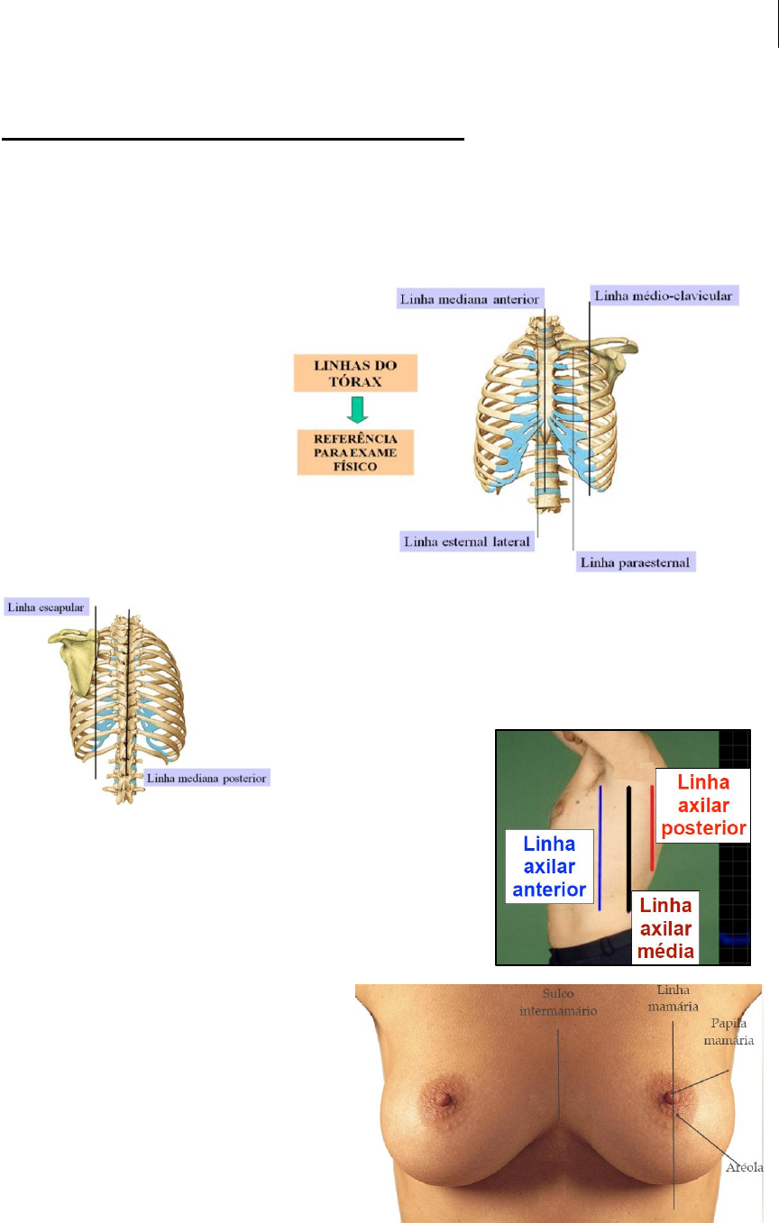 <p>Bloco Hemorragia e Choque</p><p>Paloma Faria</p><p>1</p><p>ANATOMIA</p><p>PL1: ANATOMIA DE SUPERFÍCIE E MEDIASTINO</p><p>Anatomia de superfície da parede do tórax</p><p>O tórax, formado pela cavidade torácica, seu conteúdo e a parede que o circunda, é a</p><p>parte do tronco situada entre o pescoço e o abdome.</p><p>Linha mediana anterior:</p><p>passa verticalmente sobre o</p><p>plano mediano do esterno</p><p>Linha esternal lateral: passa</p><p>verticalmente tangenciando a</p><p>margem do esterno</p><p>Linha paraesternal: passa</p><p>verticalmente entre a linha</p><p>esternal e a medioclavicular</p><p>Linha medioclaviculares:</p><p>passa verticalmente pelo</p><p>meio da clavícula</p><p>Linha mediana posterior: passa verticalmente sobre</p><p>os processos espinhosos das vértebras</p><p>Linha escapular: tangencia verticalmente a linha</p><p>medial da escápula</p><p>Linha axilar anterior: segue verticalmente ao longo</p><p>da prega axilar anterior</p><p>Linha axilar média: segue verticalmente do ápice da</p><p>fossa axilar</p><p>Linha axilar posterior: segue verticalmente ao longo</p><p>da prega axilar posterior</p><p>Linha mamilar: passa pelo meio da papila mamária</p><p>Papila mamária: bico do peito</p><p>Aréola: parte pigmentada</p><p>ligeiramente elevada e circular da</p><p>mama, rica em melanina</p><p>Sulco intermamário: espaço entre</p><p>as duas mamas</p><p>Bloco Hemorragia e Choque</p><p>Paloma Faria</p><p>2</p><p>Incisura jugular: fica na margem superior do</p><p>manúbrio (furo acima esterno)</p><p>Manúbrio do esterno (anterior ao arco</p><p>aórtico): forma a parte superior do esterno</p><p>Ângulo do esterno (segundo par de</p><p>cartilagens costais): une o corpo do esterno ao</p><p>manúbrio, é a divisão entre ambos</p><p>Corpo do esterno (anterior à margem direita</p><p>do coração): entre manúbrio e processo xifóide</p><p>Processo xifóide: ponta do esterno, situado</p><p>em uma pequena depressão, chamada fossa</p><p>epigástrica</p><p>Ângulo infra-esternal: ângulo do processo</p><p>xifoide, abaixo do esterno, formado pelas</p><p>margens costais convergentes</p><p>Clavículas: cristas ósseas na junção do tórax</p><p>e do pescoço</p><p>Fossa infraclavicular: embaixo da clavícula</p><p>Esqueleto do tórax: a caixa torácica constitui-se de:</p><p>esterno, vértebras torácicas, costelas e cartilagens</p><p>costais.</p><p>Abertura superior do tórax: abertura acima do</p><p>esterno e entre clavículas</p><p>Costelas: são fitas ósseas arqueadas, são doze: da</p><p>1ª a 7ª são as verdadeiras; da 8ª a 10ª, são as falsas,</p><p>pois se fixam no esterno só indiretamente; e as 11ª e 12ª são as flutuantes.</p><p>Espaços intercostais: espaços entre as costelas</p><p>Margens costais: ângulo formado pelas últimas costelas</p><p>Bloco Hemorragia e Choque</p><p>Paloma Faria</p><p>3</p><p>Anatomia do mediastino</p><p>Pleura: os pulmões estão envolvidos por um saco</p><p>seroso de dupla parede, chamada pleura. A</p><p>visceral reveste toda superfície pulmonar, já a</p><p>parietal, reveste as cavidades pulmonares. A</p><p>pleura parietal é dividida em várias partes – costal,</p><p>mediastinal, diafragmática, cúpula da pleural.</p><p>Pleura mediastinal: cobre as faces laterais do</p><p>mediastino – as massas de tecidos e órgãos que</p><p>separam as cavidades pulmonares e seus sacos pleurais.</p><p>Mediastino: compartimento central da cavidade torácica. Estende-se da abertura</p><p>superior do tórax ao diafragma. Ele está dividido por uma linha imaginária que se</p><p>estende da 4ª vértebra ao ângulo esternal, em duas porções: mediastino superior e</p><p>inferior. O mediastino aloja o coração.</p><p>O mediastino superior é tudo que está acima do ângulo esternal, e o inferior abaixo do</p><p>ângulo. O inferior é dividido em anterior, médio e posterior.</p><p>Mediastino superior: timo (não observado no</p><p>adulto), grandes vasos (aorta, veia cava</p><p>superior), tronco braquiocefálico, veias</p><p>braquiocefálicas, artéria carótida comum</p><p>esquerda, artéria subclávia esquerda, nervo</p><p>vago, nervo frênico, traqueia, esôfago, nervo</p><p>laríngeo recorrente.</p><p>Mediastino inferior anterior: parte inferior do</p><p>timo (é o mais estreito).</p><p>Mediastino inferior médio: coração, hilo</p><p>pulmonar, nervo frênico. Contém o pericárdio.</p><p>Mediastino inferior posterior: aorta torácica,</p><p>esôfago, nervos vagos, ducto torácico, veias</p><p>ázigos (direito), veias hemiázigos (esquerdo).</p><p>Pontos da anatomia da superfície do tórax</p><p>da ausculta cardíaca</p><p>Ictus cordis: ponta do coração, é onde pulsa. Está no 4º ou 5º espaço intercostal</p><p>esquerdo.</p><p>Área aórtica: 2º EID margem paraesternal</p><p>Área pulmonar: 2º EIE margem paraesternal</p><p>Área atrioventricular direita/tricúspide: 5º EIE margem paraesternal</p><p>Área atrioventricular esquerda/mitral: 5º EIE linha hemiclavicular</p><p>Bloco Hemorragia e Choque</p><p>Paloma Faria</p><p>4</p><p>Radiografia do tórax em PA</p><p>PL2: ANATOMIA DO PERICÁRDIO E CORAÇÃO</p><p>Aspectos anatômicos do pericárdio</p><p>Pericárdio: é um saco fibroso seroso que envolve o coração separando-os dos outros</p><p>órgãos do mediastino e limitando sua expansão durante a diástole ventricular.</p><p>O coração ocupa o mediastino médio.</p><p>O pericárdio ocupa duas paredes:</p><p>- externa - pericárdio fibroso: densa camada de feixes colágenos, é denso e firme,</p><p>possui relação íntima com os órgãos do mediastino.</p><p>- interna - pericárdio seroso: membrana serosa que se reflete para a superfície do</p><p>coração. Apresenta uma lâmina parietal que forra internamente o pericárdio fibroso e</p><p>uma lâmina visceral que reveste o coração, como o epicárdio e as raízes dos</p><p>grandes vasos.</p><p>Cavidade Pericárdica: é um espaço virtual entre as camadas opostas das