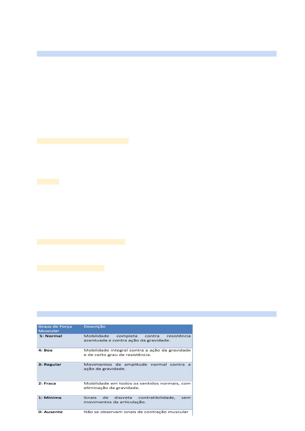 <p>NEUROLOGIA</p><p>EQUILÍBRIO</p><p>ESTÁTICO: ROMBERG</p><p>semiotécnica: caracteriza-se por uma diferença entre equilíbrio em pé com os olhos</p><p>abertos e fechados. Solicita-se ao paciente que fique ereto, com os pés juntos,</p><p>olhando fixamente a uma ponto a 60 cm e com os braços juntos ao corpo, cruzados</p><p>no peito ou estendidos à frente, a depender da preferência do examinador. O teste</p><p>deve durar cerca de 1 minuto (30 segundos com olhos abertos e 30 segundos com</p><p>olhos fechados), sempre com o examinador ao lado do paciente, a fim de impedir</p><p>quedas.</p><p>positividade do teste: quando o paciente é capaz de manter o equilíbrio com os olhos</p><p>abertos e apresenta oscilações importantes ou tendência à queda para qualquer</p><p>lado ao fechar os olhos</p><p>romberg sensibilizado: em tandem</p><p>colocando-se um pé à frente do outro com o calcanhar encostado nos dedos,</p><p>semelhante à marcha em Tandem. O paciente normal deve conseguir permanecer</p><p>assim por, pelo menos, 30 segundos com olhos abertos e fechados.</p><p>DINÂMICO</p><p>FUKUDA</p><p>semiotécnica: paciente com olhos fechados e braços estendidos 90° para frente</p><p>marcha sem sair do lugar, elevando o joelho aproximadamente 45 graus, marcando</p><p>passo, enquanto o examinador conta até 50 (a cada número da contagem uma das</p><p>pernas se eleva)</p><p>positividade do teste: estará alterado se o paciente realizar desvio do corpo e braços</p><p>estendidos mais de 45° para um dos lados de acordo com o lado afetado, além de se</p><p>deslocar por mais de 1 m</p><p>EXAME DA MARCHA EM TANDEM</p><p>Há uma tendência de queda ou de desvio da trajetória da marcha para o lado da</p><p>lesão em lesões hemisféricas</p><p>PROVA DE BABINSKI WEIL</p><p>→ ao tentar andar em linha reta ou em fila indiana, o paciente desvia-se para o lado</p><p>da lesão. O achado clássico é a marcha em estrela (prova de Babinski-Weil) ou desvio</p><p>em compasso.Ao solicitar que o paciente, de olhos fechados, ande 5 passos para</p><p>frente e 5 passos para trás</p><p>→ verifica-se desvio ipsilateral à lesão ao caminhar para frente, e contralateral ao</p><p>caminhar para trás, “desenhando”, dessa forma, uma estrela no solo</p><p>FORÇA</p><p>ESCALA DE FORÇA DE OXFORD</p><p>MANOBRAS DEFICITÁRIAS</p><p>MEMBROS SUPERIORES</p><p>MINGAZZINI</p><p>semiotécnica: paciente de olhos abertos tenta manter os ombros fletidos 90 graus, os</p><p>membros superiores(cotovelos) estendidos na horizontal, punho neutro e mão</p><p>supinada.</p><p>objetivo: é empregada para flagrar fraqueza muscular discreta, resultante de uma</p><p>disfunção do neurônio motor superior</p><p>positividade do teste: quando ocorre um desvio para baixo da extremidade parética,</p><p>acompanhado de pronação (sinal de Barré)</p><p>→ se paresias mais fortes a ordem é</p><p>1. adução dos dedos;</p><p>2. pronação da mão;</p><p>3. queda do punho;</p><p>4. flexão do cotovelo;</p><p>5. queda do braço.</p><p>1. Na doença cerebelar restrita a um dos hemisférios, o membro ipsilateral à</p><p>lesão desvia-se para fora, às vezes para cima, e raramente para baixo.</p><p>2. Nas vestibulopatias, ocorre desvio dos dois membros para o lado do ouvido</p><p>acometido</p><p>MEMBROS INFERIORES</p><p>BARRÉ</p><p>1. paciente em decúbito ventral, o examinador flexiona os joelhos do mesmos 90</p><p>graus e mantém por dois minutos</p><p>2. depois flexiona mais o MMII até tentar tocar o tornozelo no glúteo</p><p>3. depois o examinador estende as pernas do paciente, mantendo-as em um</p><p>ângulo maior que 90°, havendo queda gradual do membro do lado parético</p><p>→ AVALIA DISFUNÇÃO PIRAMIDAL DO COMPARTIMENTO POSTERIOR DA COXA,</p><p>RESPONSÁVEL PELA FLEXÃO</p><p>→ útil para detectar assimetrias em casos de paraparesia de intensidade grave</p><p>e em pacientes torporosos ou comatosos</p><p>ORTOPEDIA</p><p>EPICONDILITE LATERAL</p><p>“cotovelo do tenista”</p><p>acomete mais a origem da musculatura extensora do antebraço, mais frequente o</p><p>acometimento do tendão extensor radial curto do carpo. a queixa principal é dor no</p><p>epicôndilo lateral estendo-se pro dorso do antebraço. Em geral, a dor surge com</p><p>atividades que envolvem extensão ativa ou flexão passiva do punho com o cotovelo</p><p>em extensão.</p><p>TESTE DE COZEN</p><p>semiotécnica: com o cotovelo em 90o de flexão e o antebraço em pronação,</p><p>examinador estabiliza articulação e pede-se ao paciente que faça extensão ativa do</p><p>punho contra a resistência que será imposta pelo examinador.</p><p>positividade do teste: quando o paciente referir dor no epicôndilo lateral, origem da</p><p>musculatura extensora do punho e dos dedos</p><p>TESTE DE MILL</p><p>semiotécnica: cotovelo em 90o de flexão e o antebraço em pronação com a mão</p><p>fechada, o punho em dorsiflexão e o cotovelo em extensão. examinador então forçará</p><p>o punho em flexão e o paciente é orientado para resistir ao movimento.</p><p>positividade do teste: presença de dor no epicôndilo lateral será sugestiva de</p><p>epicondilite lateral</p><p>EPICONDILITE MEDIAL</p><p>“cotovelo de golfista”</p><p>objetivo: reproduzir a dor experimentada pelo portador de alterações nessa</p><p>localização.</p><p>semiotécnica: cotovelo é fletido, o antebraço em supinação e o punho em extensão.</p><p>Em seguida, o cotovelo será estendido vagarosamente contra resistência. faz com o</p><p>braço apoiado na mesa ou não</p><p>positividade do teste: se o paciente apresentar dor no epicôndilo medial será</p><p>sugestivo de epicondilite medial ou, ainda, ocorrer dor ao realizar a flexão do punho</p><p>contra a resistência // MÚSCULOS ENVOLVIDOS inflamação do tendão flexor radial</p><p>do carpo e quadrado pronador</p><p>TENOSSINOVITE DE QUERVAIN</p><p>MANOBRA DE FINKELSTEIN</p><p>conceito</p><p>utilizado para as tenossinovites este