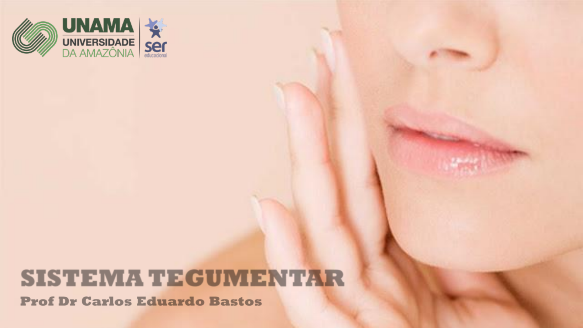 <p>SISTEMA TEGUMENTAR</p><p>Prof Dr Carlos Eduardo Bastos</p><p>TEGUMENTO COMUM</p><p>Conjunto de órgãos que revestem e</p><p>protegem a superfície do corpo</p><p>REGULAÇÃO TÉRMICA</p><p>RESERVATÓRIO SANGUÍNEO</p><p>PROTEÇÃO</p><p>SENSAÇÕES CUTÂNEAS</p><p>EXCREÇÃO E ABSORÇÃO</p><p>NUTRIÇÃO (SÍNTESE DE VITAMINA D)</p><p>TEGUMENTO COMUM</p><p>PELE</p><p>ESTRUTURAS ACESSÓRIAS</p><p>- Folículos Pilosos</p><p>- Unhas</p><p>- Glândulas Exócrinas</p><p>- Glândulas Sebáceas</p><p>- Glândulas Sudoríferas</p><p>- Glândulas Mamárias</p><p>TELA SUBCUTÂNEA</p><p>PELE</p><p>Órgãos que reveste o corpo externamente</p><p>PELE</p><p>EPIDERME</p><p>- TECIDO EPITELIAL ESTRATIFICADO PAVIMENTOSO</p><p>QUERATINIZADO</p><p>- CÉLULAS MAIS ABUNDANTES: QUERATINÓCITOS (90%)</p><p>- MELANÓCITOS (8%)</p><p>- MACRÓFAGOS INTRADÉRMICOS (CÉLULAS DE LANGERHANS)</p><p>- CÉLULAS EPITELIAIS TÁTEIS</p><p>EPIDERME</p><p>ESPESSURA E ESTRUTURA</p><p>- 4 A 5 CAMADAS DEPENDENDO DO LOCAL</p><p>- PELE ESPESSA E PELE DELGADA</p><p>EPIDERME</p><p>CAMADAS DA EPIDERME</p><p>EPIDERME</p><p>CAMADAS DA EPIDERME</p><p>1) ESTRATO GERMINATIVO (BASAL)</p><p>RICAS EM CÉLULAS BASAIS (CÉLULAS- TRONCO)</p><p>ALTA ATIVIDADE MITÓTICA</p><p>CONSTANTE RENOVAÇÃO DA PELE</p><p>15 A 30 DIAS (DEPENDENDO DO LOCAL E IDADE)</p><p>MELANÓCITOS - MELANINA</p><p>1:4 – 1:20</p><p>+ BOCHECHA, FRONTE, MAMILOS E</p><p>REGIÃO GENITAL</p><p>DIFERENÇAS INDIVIDUAIS E</p><p>RACIAIS – NÍVES DE ATIVIDADE, E</p><p>NÃO EM NÚMERO</p><p>EPIDERME</p><p>CAMADAS DA EPIDERME</p><p>1) ESTRATO GERMINATIVO (BASAL)</p><p>CÉLULAS EPITELIAIS TÁTEIS (CÉLULAS DE MERKEL):</p><p>SENSÍVEIS AO TOQUE NA SUPERFÍCIE SEM PÊLOS</p><p>QUANDO PRESSIONADAS, LIBERAM SUBSTÂNCIAS QUÍMICAS QUE</p><p>ESTIMULAM AS TERMINAÇÕES NERVOSAS SENSORIAIS.</p><p>EPIDERME</p><p>CAMADAS DA EPIDERME</p><p>1) ESTRATO GERMINATIVO (BASAL)</p><p>EPIDERME</p><p>CAMADAS DA EPIDERME</p><p>2) ESTRATO ESPINHOSO</p><p>- QUERATINÓCITOS</p><p>- MUITAS CAMADAS E</p><p>RELATIVAMENTE ESPESSAS</p><p>- LIGADOS ENTRE SI POR</p><p>DESMOSSOMOS,</p><p>CONECTADAS A</p><p>TONOFILAMENTOS DO</p><p>ESQUELETO</p><p>- CÉLULAS DE LANGERHANS –</p><p>RESPOSTA IMUNOLÓGICA</p><p>CONTRA PATÓGENOS E</p><p>CÉLULAS NEOPLÁSICAS.</p><p>EPIDERME</p><p>CAMADAS DA EPIDERME</p><p>3) ESTRATO GRANULOSO</p><p>QUERATINÓCITOS PRODUZEM GRÂNULOS DE QUERATO-HIALINA E</p><p>QUERATINA</p><p>MEMBRANAS CELULARES MAIS ESPESSAS E IMPERMEÁVEIS</p><p>NÚCLEO E OUTRAS ORGANELAS DESINTEGRAM-SE, LEVANDO À</p><p>MORTE CELULAR E DESIDRATAÇÃO</p><p>AUMENTO DE ATRITO – CALOS E CALOSIDADES</p><p>EPIDERME</p><p>CAMADAS DA EPIDERME</p><p>4) ESTRATO LÚCIDO</p><p>CAMADA VÍTREA PRESENTE NA PELE ESPESSA</p><p>CÉLULAS TRANSLÚCIDAS, CUJOS NÚCLEOS E</p><p>ORGANELAS CITOPLASMÁTICAS DIGERIDAS</p><p>PELOS LISOSSOMOS</p><p>EPIDERME</p><p>CAMADAS DA EPIDERME</p><p>5) ESTRATO CÓRNEO</p><p>15 A 30 CAMADAS DE CÉLULAS MORTAS SECAS</p><p>ACHATADAS E SEM NÚCLEO COM CITOPLASMA</p><p>REPLETO DE QUERATINA</p><p>QUERATINIZAÇÃO – TODOS OS LOCAIS DA PELE, EXCETO AS</p><p>SUPERFÍCIES ANTERIORES DOS OLHOS</p><p>RESISTENTE, MAS NÃO IMPERMEÁVEL À AGUA.</p><p>PERSPIRAÇÃO INSENSÍVEL – 500mL/DIA</p><p>EPIDERME</p><p>CAMADAS DA EPIDERME</p><p>5) ESTRATO CÓRNEO</p><p>EPIDERME</p><p>PELE ESPESSA E DELGADA - ESPESSURA RELATIVA DA EPIDERME,</p><p>NÃO DO TEGUMENTO COMO UM TODO</p><p>4 camadas</p><p>0,08mm</p><p>5 camadas</p><p>6x mais espessa</p><p>EPIDERME</p><p>CRISTAS DA PELE</p><p>CONTORNO DA SUPERFÍCIE DA PELE ACOMPANHAM O PADRÃO DAS</p><p>CRISTAS – PEQUENAS PREGAS CÔNICAS (PELE DELGADA) A</p><p>COMPLEXOS VERTICILOS (PELE ESPESSA DA PALMA DAS MÃOS E</p><p>PLANTAS DOS PÉS)</p><p>EPIDERME</p><p>COR DA PELE</p><p>- SUPRIMENTO SANGUÍNEO DA DERME</p><p>SANGUE – CÉLULAS VERMELHAS QUE TRANSPORTAM HEMOGLOBINA</p><p>QUANDO LIGADA AO OXIGÊNIO – VERMELHA VIVA</p><p>VASOS DILATADOS – PROCESSOS INFLAMATÓRIOS</p><p>SUPRIMENTO SANGUÍNEO REDUZIDO - PÁLIDO</p><p>REDUÇÃO PROLONGADA – COLORAÇÃO AZULADA - CIANOSE</p><p>FRIO OU DISTÚRBIOS CIRCULATÓRIOS OU RESPIRATÓRIOS, COMO</p><p>SUFICIÊNCIA CARDÍACA OU ASMA GRAVE</p><p>EPIDERME</p><p>COR DA PELE</p><p>- SUPRIMENTO SANGUÍNEO DA DERME</p><p>- ESPESSURA DO ESTRATO CÓRNEO</p><p>- QUANTIDADES VARIÁVEIS DE MELANINA E CAROTENO</p><p>QUERATINÓCITOS</p><p>EPIDERME</p><p>COR DA PELE</p><p>MELANINA</p><p>PELE CLARA – ESTRATO GERMINATIVO</p><p>E ESPINHOSO</p><p>PELE ESCURA – + ESTRATO GRANULOSO</p><p>ABSORVE UV</p><p>CONVERTE PRECURSORES ESTERÓIDES</p><p>DE COLESTEROL – VITAMINA D</p><p>ALBINISMO</p><p>VITILIGO</p><p>EPIDERME</p><p>“TIJOLOS”:</p><p>- PROTEÇÃO (MECÂNICA E UV)</p><p>- PIGMENTAÇÃO</p><p>- RENOVAÇÃO DA PELE</p><p>EPIDERME</p><p>- PROTEÇÃO (MECÂNICA E UV)</p><p>- PIGMENTAÇÃO</p><p>- RENOVAÇÃO DA PELE</p><p>DERME</p><p>“CASA DE MÁQUINAS”:</p><p>ORGANELAS IMPORTANTES PARA O FUNCIONAMENTO DA PELE:</p><p>- VASOS SANGUÍNEOS E LINFÁTICOS</p><p>- NERVOS E TERMINAÇÕES NERVOSAS LIVRES E ENCAPSULADAS</p><p>- FOLÍCULOS PILOSOS, GLÂNDULAS SEBÁCEAS E SUDORÍFERAS</p><p>DERME</p><p>CAMADA PAPILAR</p><p>CAMADA RETICULAR</p><p>Tecido Conectivo Frouxo</p><p>Tecido Conectivo Denso</p><p>DERME</p><p>COLÁGENO E ELASTINA</p><p>FIBRAS DE COLÁGENO – FORÇA TENSORA - RESISTÊNCIA</p><p>FIBRAS DE ELASTINA – ELASTICIDADE</p><p>- IDADE, HORMÔNIOS E UV = RUGAS E FLACIDEZ</p><p>DERME</p><p>FUNÇÕES</p><p>- NUTRIÇÃO:</p><p>- VASOS SANGUÍNEOS E ARTÉRIAS – SOBREVIVÊNCIA DA</p><p>EPIDERME E DERME</p><p>- VASOS LINFÁTICOS – RETIRAR TOXINAS E EXCESSO DE</p><p>LÍQUIDOS PARA EVITAR EDEMAS</p><p>DERME</p><p>FUNÇÕES</p><p>- SENSIBILIDADE:</p><p>TERMINAÇÕES NERVOSAS:</p><p>- LIVRES: DOR</p><p>- ENCAPSULADAS</p><p>TATO</p><p>PRESSÃO E</p><p>VIBRAÇÃO</p><p>CALOR</p><p>DERME</p><p>FUNÇÕES</p><p>TERMORREGULAÇÃO: 36,5°C-37C °:</p><p>- PÊLO – MANUTENÇÃO</p><p>- GLÂNDULAS SUDORÍFERAS</p><p>MUSCULO ERETOR DO PÊLO</p><p>