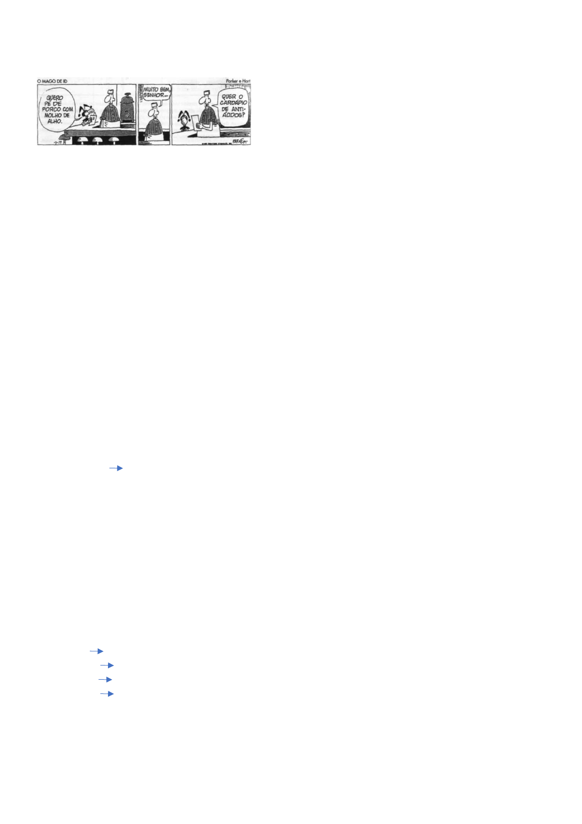 <p>(UFRN) Leia as informações contidas na tirinha. Uma</p><p>substância que pode ser incluída no cardápio de</p><p>antiácidos por ter propriedades básicas é:</p><p>a. NaF</p><p>b. CaCl2</p><p>c. Mg(OH)2</p><p>d. CH3COOH</p><p>(FAC. CULTURA INGLESA) Soluções aquosas de</p><p>hidróxido de amônio, NH4OH(aq), são empregadas na</p><p>indústria têxtil e agrícola, no tratamento de efluentes</p><p>e na limpeza doméstica.</p><p>A fórmula química fornecida para o hidróxido de</p><p>amônio, permite afirmar que essa substância é</p><p>classificada como:</p><p>a. um sal.</p><p>b. um ácido.</p><p>c. um óxido.</p><p>d. uma base.</p><p>e. um hidrato.</p><p>(PUC-RIO) A dissolução de uma certa substância em</p><p>água é representada pela equação:</p><p>M(OH)3(s) + nH2O M3+</p><p>(aq) + 3 OH-</p><p>(aq)</p><p>Que pode representar a dissolução de:</p><p>a. amônia</p><p>b. hidróxido de cálcio</p><p>c. hidróxido de sódio</p><p>d. hidróxido de alumínio</p><p>e. brometo de hidrogênio</p><p>(UFV) A formação de hidróxido de cálcio resultante da</p><p>reação de um sal desse metal com uma base pode ser</p><p>representada por:</p><p>a. Ca+ + OH– Ca(OH)</p><p>b. Ca2+ + 2OH– Ca(OH)2</p><p>c. Ca3+ + 3OH– Ca(OH)3</p><p>d. Ca4+ + 4OH– Ca(OH)4</p><p>A fórmula do hidróxido ferroso é:</p><p>a. Fe(OH)2 c. FeO</p><p>b. Fe(OH)3 d. Fe2O3</p><p>(FATEC)</p><p>Alunos tomam soda cáustica durante aula e passam</p><p>mal</p><p>Dezesseis alunos de uma escola particular de Sorocaba,</p><p>interior de São Paulo, foram internados após tomar</p><p>soda cáustica durante uma aula de química. Os alunos</p><p>participavam de um exercício chamado “teste do</p><p>sabor”: já haviam provado limão, vinagre e leite de</p><p>magnésia e insistiram em provar a soda cáustica,</p><p>produto utilizado na limpeza doméstica. Em pouco</p><p>tempo, os alunos já começaram a sentir os primeiros</p><p>sintomas: ardência na língua e no estômago, e foram</p><p>encaminhados ao Hospital Modelo da cidade. Diário do</p><p>Grande ABC, 19 set. 2005. Adaptado.</p><p>Sobre essa notícia, foram feitas as seguintes</p><p>afirmações:</p><p>I. Os produtos ingeridos pelos alunos (limão, vinagre,</p><p>leite de magnésia e soda cáustica) são todos ácidos e,</p><p>por isso, corrosivos.</p><p>II. Tanto o leite de magnésia como a soda cáustica são</p><p>compostos alcalinos.</p><p>III. A soda cáustica (NaOH) é uma base forte; o leite de</p><p>magnésia (suspensão de Mg(OH)2) é uma base fraca.</p><p>Isto ajuda a entender por que o leite de magnésia pode</p><p>ser ingerido, mas a soda cáustica não.</p><p>Dessas afirmações:</p><p>a. Apenas I é correta.</p><p>b. Apenas II é correta.</p><p>c. Apenas III é correta.</p><p>d. II e III são corretas.</p><p>e. I e III são corretas.</p><p>(PUC-PR) Assinale a alternativa que representa as</p><p>bases segundo o grau crescente de solubilidade:</p><p>a. Hidróxido de Ferro II, Hidróxido de Sódio, Hidróxido</p><p>de Cálcio.</p><p>b. Hidróxido de Lítio, Hidróxido de Magnésio, Hidróxido</p><p>de Cálcio.</p><p>c. Hidróxido de Sódio, Hidróxido de Cálcio, Hidróxido</p><p>de Magnésio.</p><p>d. Hidróxido de Ferro II, Hidróxido de Cálcio, Hidróxido</p><p>de Sódio.</p><p>e. Hidróxido de Sódio, Hidróxido de Potássio, Hidróxido</p><p>de Cálcio.</p><p>(FUVEST) Observe os líquidos da tabela adiante.</p><p>Líquido [H+] mol/L [OH-] mol/L</p><p>Leite 1,0 · 10–7 1,0 · 10–7</p><p>Água do mar 1,0 · 10–8 1,0 · 10–6</p><p>Coca-cola 1,0 · 10–3 1,0 · 10–11</p><p>Café preparado 1,0 · 10–5 1,0 · 10–9</p><p>Lágrima 1,0 · 10–7 1,0 · 10–7</p><p>Água de lavadeira 1,0 · 10–12 1,0 · 10–2</p><p>Tem caráter ácido apenas:</p><p>a. O leite e a lágrima.</p><p>b. A água de lavadeira.</p><p>c. O café preparado e a coca-cola.</p><p>d. A água do mar e a água de lavadeira.</p><p>e. A coca-cola.</p><p>(PUC) Considere as afirmativas:</p><p>I. Ácidos de Arrhenius são espécies químicas capazes</p><p>de doar pares de elétrons livres.</p><p>II. O cloreto de sódio é um sal capaz de liberar íons OH-</p><p>em solução aquosa.</p><p>III. O cloreto de hidrogênio sofre dissociação na água</p><p>de modo a obter o ácido clorídrico.</p><p>IV. Por ser o flúor um elemento químico mais</p><p>eletronegativo que o bromo, explica-se o fato de o</p><p>ácido fluorídrico ser mais forte que o ácido bromídrico.</p><p>Assinale a alternativa que corresponde às afirmativas</p><p>incorretas:</p><p>a. I e II apenas.</p><p>b. II e IV apenas.</p><p>c. I, II e III apenas.</p><p>d. I, II, III e IV.</p><p>(PUC) A tabela a seguir apresenta algumas caracterís-</p><p>ticas e aplicações de alguns ácidos:</p><p>As fórmulas dos ácidos da tabela são respectivamente:</p><p>a. HCl, H3PO4, H2SO4, HNO3</p><p>b. HClO, H3PO3, H2SO4, HNO2</p><p>c. HCl, H3PO3, H2SO4, HNO3</p><p>d. HClO2, H4P2O7, H2SO3, HNO2</p><p>e. HClO, H3PO4, H2SO3, HNO3</p><p>(UFRRJ) As fórmulas dos ácidos perclórico, nítrico,</p><p>sulfúrico e fosfórico são, respectivamente:</p><p>a. HClO3, HNO3, H2SO3 e H3PO3</p><p>b. HClO4, HNO3, H2SO3 e H3PO4</p><p>c. HClO4, HNO3, H2SO4 e H3PO4</p><p>d. HClO, HNO3, H2SO4 e H3PO4</p><p>e. HClO3, HNO2, H2SO4 e H3PO3</p><p>(UERJ) No século XIX, o cientista Svante Arrhenius</p><p>definiu ácidos como sendo as espécies químicas que,</p><p>ao se ionizarem em solução aquosa, liberam como</p><p>cátion apenas o íon H+. Considere as seguintes</p><p>substâncias, que apresentam hidrogênio em sua</p><p>composição: C2H6,H2SO4, NaOH, NH4Cl. Dentre elas,</p><p>aquela classificada como ácido, segundo a definição de</p><p>Arrhenius, é:</p><p>a. C2H6</p><p>b. H2SO4</p><p>c. NaOH</p><p>d. NH4Cl</p><p>(ESCS) Considere as informações abaixo, que tratam</p><p>da maneira pela qual se atribuem nomes aos ácidos</p><p>inorgânicos.</p><p>I. A nomenclatura dos hidrácidos apresenta sufixo</p><p>“ídrico”.</p><p>II. Na hipót