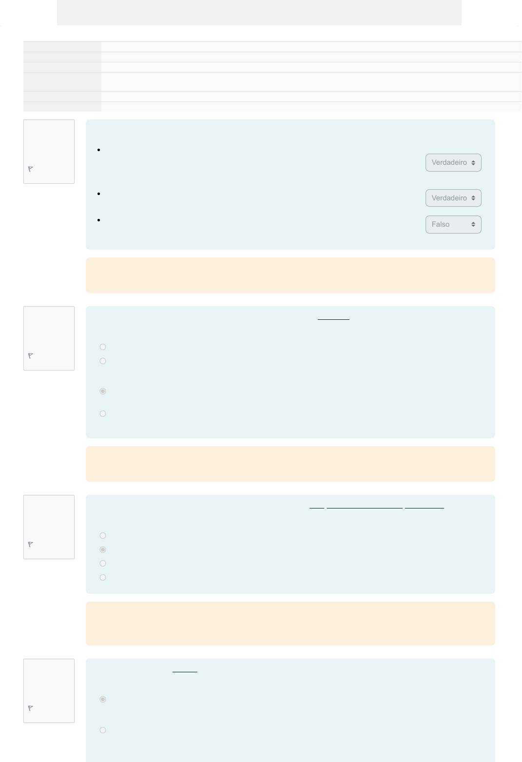 <p>Questão 1</p><p>Correto</p><p>Atingiu 1,00 de</p><p>1,00</p><p>Marcar</p><p>questão</p><p>Questão 2</p><p>Correto</p><p>Atingiu 1,00 de</p><p>1,00</p><p>Marcar</p><p>questão</p><p>Questão 3</p><p>Correto</p><p>Atingiu 1,00 de</p><p>1,00</p><p>Marcar</p><p>questão</p><p>Questão 4</p><p>Correto</p><p>Atingiu 1,00 de</p><p>1,00</p><p>Marcar</p><p>questão</p><p>Iniciado em sábado, 14 set. 2024, 19:53</p><p>Estado Finalizada</p><p>Concluída em sábado, 14 set. 2024, 20:19</p><p>Tempo</p><p>empregado</p><p>26 minutos 21 segundos</p><p>Notas 8,00/8,00</p><p>Avaliar 20,00 de um máximo de 20,00(100%)</p><p>Exercício Avaliativo - Módulo 2</p><p>Em relação ao controle da Administração Pública, julgue as assertivas abaixo:</p><p>O controle da Administração pode ser definido como o poder de fiscalização e correção que</p><p>sobre ela exercem os órgãos do Poder Judiciário, Legislativo e Executivo, com o objetivo</p><p>de garantir a conformidade de sua atuação com os preceitos que lhe são impostos pela</p><p>Constituição, leis e decretos.</p><p>O controle legislativo financeiro é realizado pelo Poder Legislativo, com auxílio do Tribunal</p><p>de Contas.</p><p>Controle administrativo é o poder de fiscalização e correção que o Poder Judiciário tem</p><p>sobre a Administração Pública.</p><p>Verdadeiro</p><p>Verdadeiro</p><p>Falso</p><p>Sua resposta está correta.</p><p>Todos os conceitos apresentados foram abordados no Capítulo 2 da Aula 2.</p><p>Em relação à Controladoria-Geral da União (CGU) assinale a opção incorreta:</p><p>Escolha uma opção:</p><p>a. Possui competência para realizar fiscalizações e auditorias em órgãos e unidades do Poder Executivo Federal.</p><p>b. Ao encontrar irregularidades na aplicação de recursos públicos federais, a Controladoria-Geral da União</p><p>recomenda a adoção de medidas necessárias para a correta aplicação dos valores, a exemplo da instauração</p><p>de processos de Tomada de Contas Especial com vistas à recomposição do prejuízo causado ao erário.</p><p>c. Possui competência para julgar as contas dos administradores públicos federais dos Poderes Executivo,</p><p>Legislativo e Judiciário, aplicando-lhes sanções.</p><p>d. Se comunica constantemente com o Tribunal de Contas da União para evitar a sobreposição de esforços sobre</p><p>determinadas ações da Administração Pública.</p><p>Sua resposta está correta.</p><p>Revise a diferença entre o TCU e a CGU no capítulo 3 da Aula 2.</p><p>Considerando os órgãos e entidades abaixo, assinale aquele que não pertence à Administração Pública:</p><p>Escolha uma opção:</p><p>a. Autarquia pública federal destinada à regulação do mercado de telecomunicações.</p><p>b. Sindicato dos empregados da Petrobrás.</p><p>c. Secretaria de Saúde do Município de João Pessoa/PB.</p><p>d. Caixa Econômica Federal.</p><p>Sua resposta está correta.</p><p>Note que os sindicatos, ainda que formados por servidores ou empregados públicos, são entidades privadas. Reveja o</p><p>tratado no capítulo 1 da aula 2.</p><p>Assinale a única opção correta.</p><p>Escolha uma opção:</p><p>a. A Constituição Federal de 1988, a partir da Emenda Constitucional nº 45/2004, instituiu dois órgãos que</p><p>cuidam do controle da atividade judiciária. São eles: o Conselho Nacional de Justiça (CNJ) e o Conselho</p><p>Nacional do Ministério Público (CNMP).</p><p>b. Ao Conselho Nacional de Justiça, presidido pelo Presidente do Supremo Tribunal Federal, compete o controle</p><p>do cumprimento dos deveres funcionais dos juízes, mas não da atuação administrativa e financeira do Poder</p><p>Judiciário.</p><p>Questão 5</p><p>Correto</p><p>Atingiu 1,00 de</p><p>1,00</p><p>Marcar</p><p>questão</p><p>Questão 6</p><p>Correto</p><p>Atingiu 1,00 de</p><p>1,00</p><p>Marcar</p><p>questão</p><p>Questão 7</p><p>Correto</p><p>Atingiu 1,00 de</p><p>1,00</p><p>Marcar</p><p>questão</p><p>Questão 8</p><p>Correto</p><p>Atingiu 1,00 de</p><p>1,00</p><p>Marcar</p><p>questão</p><p>c. Ao Conselho Nacional do Ministério Público, presidido pelo Procurador-Geral da República, compete o controle</p><p>da atuação administrativa e financeira do Ministério Público, mas não do cumprimento dos deveres funcionais</p><p>de seus membros.</p><p>d. A Advocacia-Geral da União é parte integrante do Ministério Público da União.</p><p>Sua resposta está correta.</p><p>Reveja no capítulo 3, da Aula 2, os diversos órgãos incumbidos de exercer o controle sobre a Administração Pública e</p><p>suas respectivas atribuições.</p><p>Suponha que irregularidades na gestão de recursos públicos municipais tenham sido identificadas no âmbito de uma</p><p>Prefeitura após denúncias na imprensa. Nesse caso:</p><p>Escolha uma opção:</p><p>a. Pode haver atuação da auditoria interna da Prefeitura, o que caracteriza controle interno.</p><p>b. Pode haver atuação da Controladoria-Geral da União (CGU), o que caracteriza controle externo.</p><p>c. Não pode haver atuação do Ministério Público Estadual, o que caracteriza controle externo.</p><p>d. Não pode haver atuação da Câmara Municipal, o que caracteriza controle externo.</p><p>Sua resposta está correta.</p><p>Reveja as espécies de controle estudadas no capítulo 2 da aula 2, bem como as seções 3.1 Ministério Público e 3.4</p><p>Controladoria-Geral da União.</p><p>Em relação à Polícia Federal, assinale a opção incorreta:</p><p>Escolha uma opção:</p><p>a. A Polícia Federal destina-se a apurar infrações contra a ordem política e social ou em detrimento de bens,</p><p>serviços de interesses da União ou de suas entidades autárquicas e empresas públicas, assim como outras</p><p>infrações cuja prática tenha repercussão interestadual ou internacional e exija repressão uniforme.</p><p>b. A Polícia Federal exerce, com exclusividade, as funções de polícia judiciária da União.</p><p>c. A 