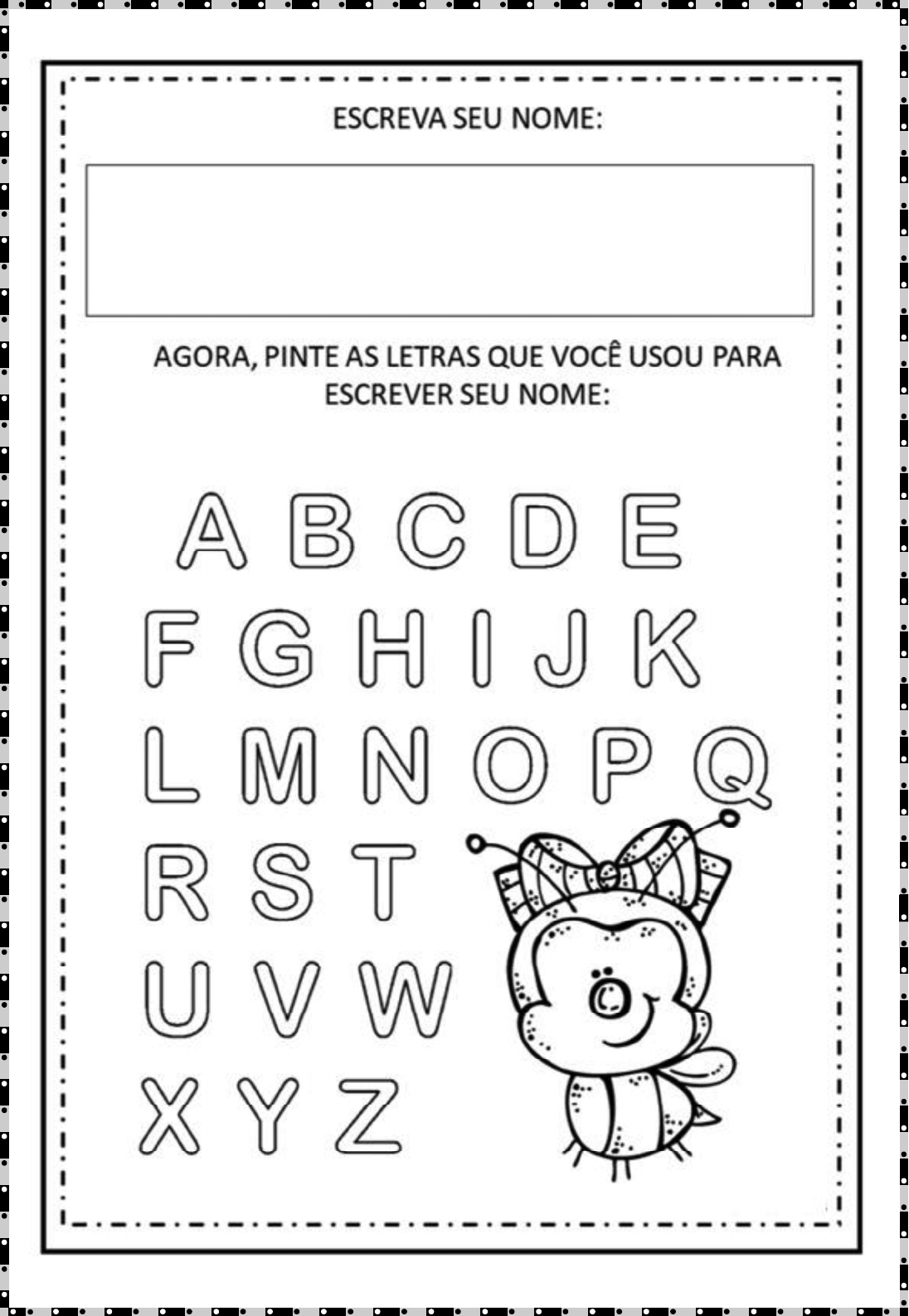 <p>ESCREVA SEU NOME: AGORA, PINTE AS LETRAS QUE VOCÊ USOU PARA ESCREVER SEU NOME: ABCDE FGHIJK L M N O P RST UVW X Y Z</p><p>LIGUE A FIGURA À SUA LETRA INICIAL: B M A F P R T E L</p><p>PINTE A VOGAL INICIAL DAS FIGURAS: AEC UAO E E 0 OE 0 EAI IAU AOE AUE OAU AUI UEA</p>