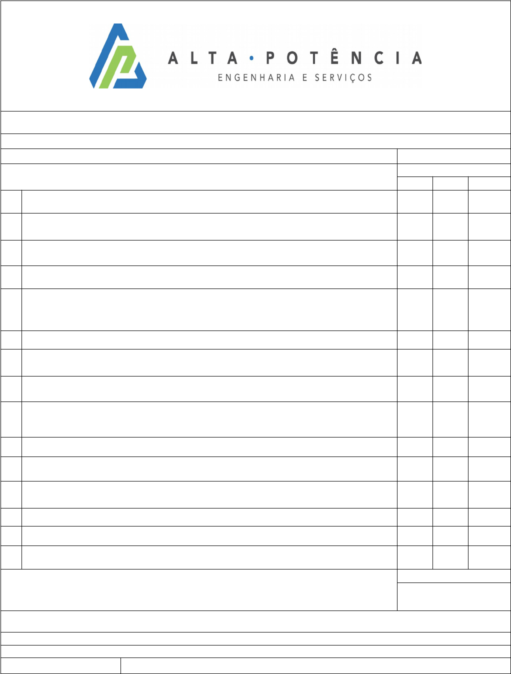 <p>CHECK - LIST - CINTO DE SEGURANÇA</p><p>LOCAL: FABRICANTE: MODELO:</p><p>RESPONSÁVEL:</p><p>DATA</p><p>ITENS A VERIFICAR</p><p>/ /</p><p>C</p><p>NC</p><p>NA</p><p>1</p><p>O cinto encontra-se limpo, isento de óleo e graxa?</p><p>2</p><p>O cinto encontra-se completo? (não existe ausência de partes, componentes)</p><p>3</p><p>O cinto está em perfeito estado de conservação sem partes deformadas, partidas, fendidas ou frouxas?</p><p>4</p><p>As argolas estão em boas condições e sem trincas?</p><p>5</p><p>O talabarte do cinto encontra-se em perfeito estado de conservação, sem cortes, fios rompidos, ilhós oxidado, ressecado ou corroído por produtos químicos?</p><p>6</p><p>O mosquetão está travando corretamente?</p><p>7</p><p>O cadarço encontra-se em boas condições de uso, sem desgaste ou ressecamento?</p><p>8</p><p>Os ilhoses e fivelas do cinto de segurança apresentam sem sinais de ferrugem?</p><p>9</p><p>A trava do gancho encontra-se em perfeito estado? (duplo travamento, molas oxidadas, trava quebrada, parte metálica oxidada)</p><p>11</p><p>O número do CA está identificado com gravação visível?</p><p>12</p><p>A data de fabricação, o lote do cinturão e os talabartes estão identificados de forma visível?</p><p>13</p><p>O absorvedor de energia está em perfeito estado? (sem rompimento da costura)</p><p>14</p><p>A montagem do cinto está correta?</p><p>15</p><p>O cinto está com dois talabartes?</p><p>17</p><p>Possui ponto de ancoragem nos ombros para resgate em espaço confinado?</p><p>Executante:</p><p>Visto</p><p>Estou ciente que todos os itens acima verificados e de minha responsabilidade, e que devo executar atividade com total segurança.</p><p>Observações:</p><p>Condição</p><p>C - Conforme NC - Não Conforme NA - Não se Aplicar</p><p>image1.png</p>