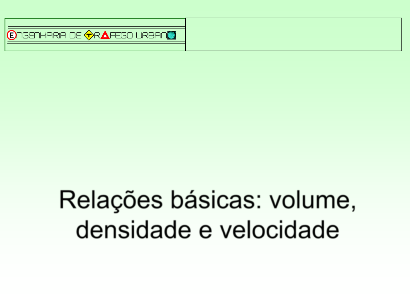 <p>Universidade Presbiteriana Mackenzie</p><p>Escola de Engenharia – Depto. de Engenharia Civil</p><p>10 semestre de 2.013</p><p>Aula 7</p><p>Relações básicas: volume,</p><p>densidade e velocidade</p><p>1</p><p>o s</p><p>e</p><p>m</p><p>e</p><p>s</p><p>tre</p><p>d</p><p>e</p><p>2</p><p>.0</p><p>1</p><p>3</p><p>7.1. Relações básicas: modelo linear de</p><p>Greenshields</p><p>• modelos são formas de se reproduzir</p><p>experimentalmente a realidade</p><p>• existem os modelos em escala, os matemáticos</p><p>e os simuladores computacionais</p><p>Exemplo de tela do</p><p>simulador</p><p>microscópico</p><p>(Vissim)</p><p>Fonte: Traffic Technology</p><p>1</p><p>o s</p><p>e</p><p>m</p><p>e</p><p>s</p><p>tre</p><p>d</p><p>e</p><p>2</p><p>.0</p><p>1</p><p>3</p><p>7.1. Relações básicas: modelo linear de</p><p>Greenshields (cont.)</p><p>• as situações apresentadas a seguir são</p><p>generalizações do modelo matemático</p><p>pioneiro na teoria do fluxo de tráfego,</p><p>estabelecido por Greenshields em 1.934,</p><p>nos Estados Unidos</p><p>1</p><p>o s</p><p>e</p><p>m</p><p>e</p><p>s</p><p>tre</p><p>d</p><p>e</p><p>2</p><p>.0</p><p>1</p><p>3</p><p>• trata-se de modelo macroscópico teórico, cujo</p><p>objeto é a corrente de tráfego como um todo,</p><p>ou seja, considera que as correntes de tráfego</p><p>são um meio contínuo</p><p>• foi idealizado para aplicação em situações de</p><p>fluxo ininterrupto (vias expressas e rodovias)</p><p>• parte do embasamento teórico vem das leis</p><p>da hidrodinâmica (conhecido como Analogia</p><p>Hidrodinâmica do Tráfego)</p><p>7.1. Relações básicas: modelo linear de</p><p>Greenshields (cont.)</p><p>1</p><p>o s</p><p>e</p><p>m</p><p>e</p><p>s</p><p>tre</p><p>d</p><p>e</p><p>2</p><p>.0</p><p>1</p><p>3</p><p>• desde o modelo de Greenshields, vários outros</p><p>modelos de simulação do fluxo de tráfego</p><p>surgiram, aproximando-se cada vez mais da</p><p>realidade</p><p>• surgiram, também, modelos com outras</p><p>abordagens, como as microscópicas, relativas às</p><p>interações entre veículos determinados dentro de</p><p>um fluxo de tráfego e as mesoscópicas, que</p><p>analisam os comportamentos dos pelotões de</p><p>veículos que se formam no deslocamento em</p><p>uma via (por exemplo, o SIRI – ver Aula 15)</p><p>7.1. Relações básicas: modelo linear de</p><p>Greenshields (cont.)</p><p>1</p><p>o s</p><p>e</p><p>m</p><p>e</p><p>s</p><p>tre</p><p>d</p><p>e</p><p>2</p><p>.0</p><p>1</p><p>3</p><p>7.2. Densidade, espaçamento, intervalo</p><p>• Densidade (D) = distribuição dos veículos em</p><p>um trecho de via</p><p>D = N / L</p><p>• onde N = número de veículos</p><p>• L = extensão ou trecho considerado</p><p>• normalmente “D” é expressa em veíc/km</p><p>7.2. Densidade, espaçamento, intervalo (cont.)</p><p>Exemplo de baixa densidade</p><p>7.2. Densidade, espaçamento, intervalo (cont.)</p><p>Exemplo de alta densidade</p><p>1</p><p>o s</p><p>e</p><p>m</p><p>e</p><p>s</p><p>tre</p><p>d</p><p>e</p><p>2</p><p>.0</p><p>1</p><p>3</p><p>• Espaçamento (E) = distância entre as partes</p><p>dianteiras de 2 veículos sucessivos, na mesma</p><p>faixa</p><p>D = 1 / E</p><p>Onde E = espaçamento médio dos veículos em</p><p>um trecho de via, em um determinado período de</p><p>tempo (unidade de E = m/veíc)</p><p>7.2. Densidade, espaçamento, intervalo (cont.)</p><p>E</p><p>1</p><p>o s</p><p>e</p><p>m</p><p>e</p><p>s</p><p>tre</p><p>d</p><p>e</p><p>2</p><p>.0</p><p>1</p><p>3</p><p>• Intervalo (I) = tempo decorrido entre as</p><p>passagens de 2 veículos sucessivos por uma</p><p>seção de via, na mesma faixa</p><p>• Densidade, intervalo e espaçamento são</p><p>variáveis de difícil mensuração</p><p>• embora seja possível relacionar essas variáveis à</p><p>capacidade, em geral esta última é obtida por</p><p>outras formas (modelos matemáticos, tabelas ou</p><p>coletas de dados em campo)</p><p>7.2. Densidade, espaçamento, intervalo (cont.)</p><p>7.3. Relação Velocidade X Densidade</p><p>• considerando um trecho com extensão “L”; “N”</p><p>veículos trafegando com velocidade “V” e uma seção</p><p>“A” da via</p><p>L</p><p>A</p><p>V</p><p>1</p><p>o s</p><p>e</p><p>m</p><p>e</p><p>s</p><p>tre</p><p>d</p><p>e</p><p>2</p><p>.0</p><p>1</p><p>3</p><p>7.3. Relação Velocidade X Densidade (cont.)</p><p>• em um determinado intervalo “I”, todos os</p><p>veículos terão passado pela seção “A”, ou seja,</p><p>I = L / V</p><p>• sabemos que: F = N / I (o fluxo é a quantidade</p><p>de veículos que passa em uma seção, em um</p><p>determinado período de tempo)</p><p>• portanto: F = N / I = N / (L / V) = N / L . V = D . V</p><p>ou seja, F = V . D</p><p>1</p><p>o s</p><p>e</p><p>m</p><p>e</p><p>s</p><p>tre</p><p>d</p><p>e</p><p>2</p><p>.0</p><p>1</p><p>3</p><p>A partir de analogia com a teoria da</p><p>hidrodinâmica, foi estabelecida a equação da</p><p>continuidade do fluxo de tráfego, também</p><p>conhecida como “relação fundamental do</p><p>tráfego”</p><p>Volume = Fluxo = Velocidade x Densidade</p><p>F = V x D (1)</p><p>de (1), temos: F = V / E</p><p>7.3. Relação Velocidade X Densidade (cont.)</p><p>1</p><p>o s</p><p>e</p><p>m</p><p>e</p><p>s</p><p>tre</p><p>d</p><p>e</p><p>2</p><p>.0</p><p>1</p><p>3</p><p>7.3. Relação Velocidade X Densidade (cont.)</p><p>• O modelo linear de Greenshields está</p><p>representado na figura abaixo</p><p>Velocidade</p><p>Vlivre</p><p>Densidade</p><p>V</p><p>D Dsaturação</p><p>regime</p><p>não congestionado</p><p>regime</p><p>congestionado</p><p>C</p><p>1</p><p>o s</p><p>e</p><p>m</p><p>e</p><p>s</p><p>tre</p><p>d</p><p>e</p><p>2</p><p>.0</p><p>1</p><p>3</p><p>7.3. Relação Velocidade X Densidade (cont.)</p><p>• Representação mais realista da relação</p><p>Velocidade (V) X Densidade (K)</p><p>Fonte: Leutzbach</p><p>1</p><p>o s</p><p>e</p><p>m</p><p>e</p><p>s</p><p>tre</p><p>d</p><p>e</p><p>2