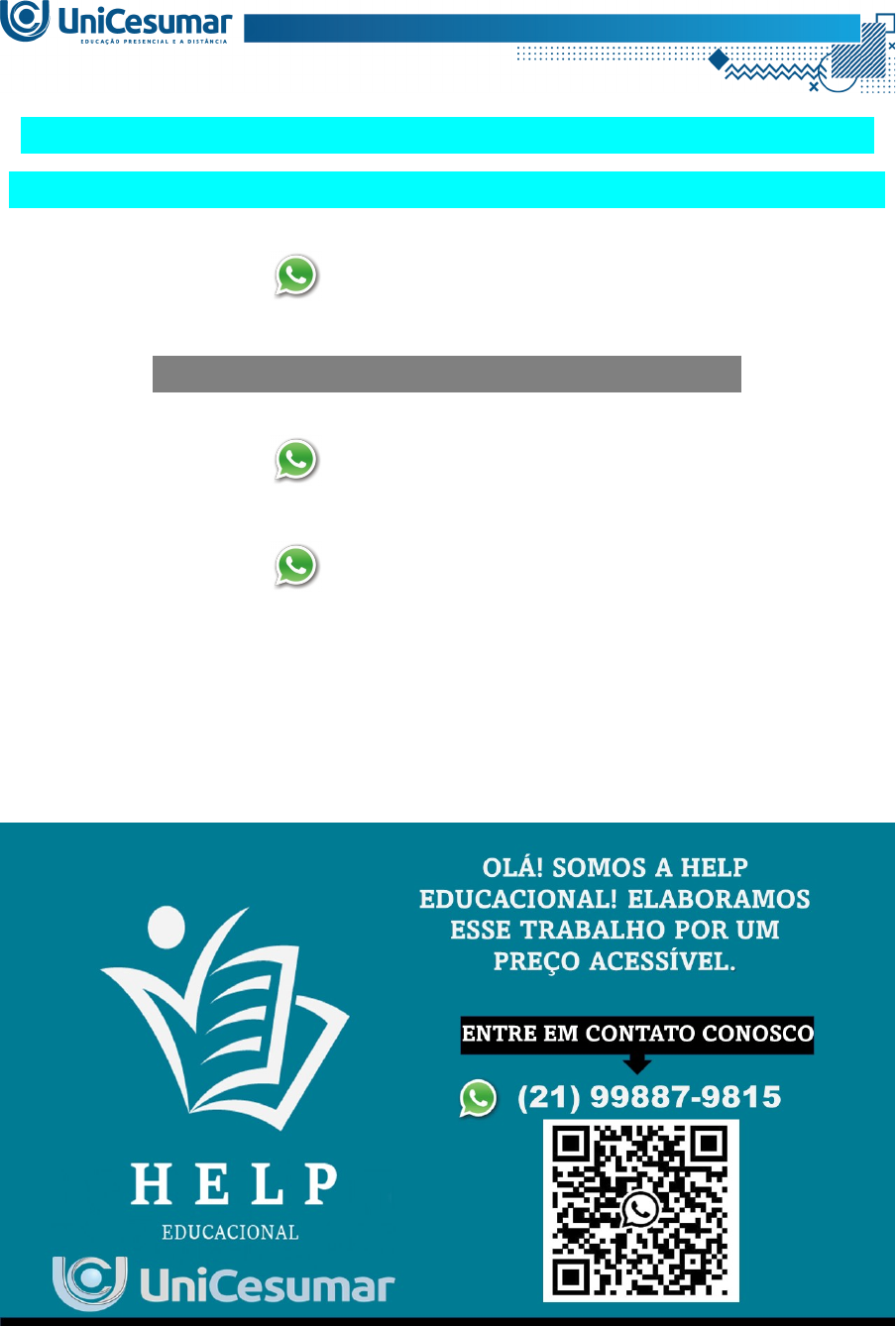 <p>MAPA/PORTFÓLIO – ECOS - IMERSÃO PROFISSIONAL_ EMPREENDEDORISMO NA ÁREA DE ESTÉTICA - 53_2024</p><p>(21) 99887-9815</p><p>ASSESSORIA NOS SEUS TRABALHOS</p><p>(21) 99887-9815</p><p>(21) 99887-9815</p><p>Olá, aluno! Seja bem-vindo a esta atividade.</p><p>O marketing é considerado de grande importância, pois é uma ferramenta crucial para analisar tanto as oportunidades quanto as ameaças que envolvem qualquer tipo de empreendimento. Os clientes de hoje não compram apenas aquilo de que precisam, mas também produtos e serviços que, segundo a mídia, possuem atributos desejáveis. Eles compram expectativas e aquilo que desejam.</p><p>Essa capacidade de entender e influenciar o comportamento do consumidor é o que torna o marketing indispensável. Ele permite que os empreendedores identifiquem tendências, entendam as preferências do público-alvo e ajustem suas estratégias para atender a essas demandas. Ao promover uma imagem positiva e desejável dos produtos e serviços, o marketing não apenas atrai clientes, mas também cria um vínculo emocional com eles.</p><p>Além disso, o marketing ajuda as empresas a se diferenciarem da concorrência, destacando o valor único de seus produtos e serviços. Em um mercado saturado, essa diferenciação pode ser a chave para o sucesso. Portanto, o marketing não só impulsiona as vendas, mas também constrói a lealdade do cliente e fortalece a marca a longo prazo.</p><p>Adaptado: CARVALHO, B. M. SANCHES, E. Q. A importância do marketing na área da estética. Revista Científica Multidisciplinar Núcleo do Conhecimento. Ano 05, Ed. 11, Vol. 23, pp. 156-165. Novembro de 2020. ISSN: 2448-0959, Link de acesso: https://www.nucleodoconhecimento.com.br/marketing/area-da-estetica. Acesso em: 3 jul. 2024.</p><p>Para ingressar no ramo da estética, é de suma importância estar atualizado sobre as novidades que surgem anualmente no mercado e utilizar estratégias de marketing para divulgar o seu trabalho. Manter-se informado sobre as últimas tendências e inovações permite que os profissionais da estética ofereçam serviços modernos e de alta qualidade, atendendo às expectativas dos clientes e se destacando da concorrência</p><p>Pensando em sua futura atuação, analise a situação a seguir:</p><p>Imagine-se recém-formado, prestes a ingressar no mercado de trabalho. Este é o momento em que você colocará em prática todas as técnicas aprendidas durante a sua formação. É aqui que você percebe a importância crucial de saber divulgar o seu trabalho. Ao aplicar suas habilidades e conhecimentos no mundo real, você também entende que a qualidade do seu trabalho precisa ser visível para os outros. As estratégias de marketing tornam-se fundamentais para destacar suas competências e atrair a atenção de potenciais clientes ou empregadores. Para reforçar ainda mais a importância dessa estratégia, te apresento o artigo intitulado: “A IMPORTÂNCIA DO MARKETING NA ÁREA DA ESTÉTICA” que será a base para responder as questões a seguir</p><p>1. Ao analisar o artigo, apresente os argumentos de como a comunicação eficaz pode transformar a maneira em como você interage com seus clientes e impulsiona as suas vendas.</p><p>2. Segundo os autores, como a escolha da vestimenta pode influenciar a imagem profissional e o sucesso no ambiente de trabalho?</p><p>3. Um meio de fidelizar o seu cliente é a organização do espaço de atuação. Apresente as características que são essenciais para uma sala de atendimento, e que visam proporcionar conforto, eficiência e boa aparência.</p><p>4. Apresente quais são os elementos decisivos para alcançar uma vantagem competitiva sobre os concorrentes na área de estética?</p><p>5. Segundo os autores, como a satisfação ou insatisfação dos clientes podem impactar o seu desempenho profissional?</p><p>Orientações para desenvolver sua atividade MAPA/PORTFÓLIO</p><p>1. Leia os materiais disponibilizados na disciplina;</p><p>2. Assista às aulas;</p><p>3. Baixe o "Modelo de entrega do MAPA/PORTFÓLIO, disponível no ambiente Studeo na pasta “Material da Disciplina” e preencha corretamente todos os campos solicitados;</p><p>4. Anexe seu modelo de entrega do MAPA/PORTFÓLIO respondido no espaço específico da atividade MAPA;</p><p>5. Lembre-se de clicar em “Finalizar” para efetivar sua participação;</p><p>6. Evite plágio de informações, neste caso, insira a referência utilizada para consulta das respostas.</p><p>*Essa atividade faz parte da composição de notas da disciplina. Sua realização é muito importante</p><p>**Em caso de dúvidas, entre em contato com sua professora mediadora. Bons estudos!</p><p>OLÁ! SOMOS A HELP EDUCACIONAL! ELABORAMOS ESSE TRABALHO POR UM PREÇO ACESSÍVEL.</p><p>ENTRE EM CONTATO CONOSCO</p><p>(21) 99887-9815</p><p>image1.png</p><p>image2.png</p><p>image3.png</p>