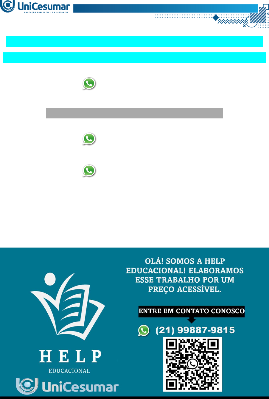 <p>MAPA/PORTFÓLIO – ECOS - IMERSÃO PROFISSIONAL_</p><p>EMPREENDEDORISMO NA ÁREA DE ESTÉTICA - 53_2024</p><p>(21) 99887-9815</p><p>ASSESSORIA NOS SEUS TRABALHOS</p><p>(21) 99887-9815</p><p>(21) 99887-9815</p><p>Olá, aluno! Seja bem-vindo a esta atividade.</p><p>O marketing é considerado de grande importância, pois é uma ferramenta crucial para anali-</p><p>sar tanto as oportunidades quanto as ameaças que envolvem qualquer tipo de empreendi-</p><p>mento. Os clientes de hoje não compram apenas aquilo de que precisam, mas também pro-</p><p>dutos e serviços que, segundo a mídia, possuem atributos desejáveis. Eles compram ex-</p><p>pectativas e aquilo que desejam.</p><p>Essa capacidade de entender e influenciar o comportamento do consumidor é o que torna o</p><p>marketing indispensável. Ele permite que os empreendedores identifiquem tendências, en</p><p>tendam as preferências do público-alvo e ajustem suas estratégias para atender a essas de-</p><p>mandas. Ao promover uma imagem positiva e desejável dos produtos e serviços, o marke-</p><p>ting não apenas atrai clientes, mas também cria um vínculo emocional com eles.</p><p>Além disso, o marketing ajuda as empresas a se diferenciarem da concorrência, destacando</p><p>o valor único de seus produtos e serviços. Em um mercado saturado, essa diferenciação</p><p>pode ser a chave para o sucesso. Portanto, o marketing não só impulsiona as vendas, mas</p><p>também constrói a lealdade do cliente e fortalece a marca a longo prazo.</p><p>Adaptado: CARVALHO, B. M. SANCHES, E. Q. A importância do marketing na área da estética. Revista Científica Multidisciplinar Núcleo do Conhecimento. Ano 05, Ed. 11, Vol. 23, pp. 156-165. Novembro de 2020. ISSN: 2448-0959, Link de acesso:</p><p>https://www.nucleodoconhecimento.com.br/marketing/area-da-estetica. Acesso em: 3 jul. 2024.</p><p>Para ingressar no ramo da estética, é de suma importância estar atualizado sobre as novi-</p><p>dades que surgem anualmente no mercado e utilizar estratégias de marketing para divulgar</p><p>o seu trabalho. Manter-se informado sobre as últimas tendências e inovações permite que</p><p>os profissionais da estética ofereçam serviços modernos e de alta qualidade, atendendo às</p><p>expectativas dos clientes e se destacando da concorrência</p><p>Pensando em sua futura atuação, analise a situação a seguir:</p><p>Imagine-se recém-formado, prestes a ingressar no mercado de trabalho. Este é o momento</p><p>em que você colocará em prática todas as técnicas aprendidas durante a sua formação. É</p><p>aqui que você percebe a importância crucial de saber divulgar o seu trabalho. Ao aplicar</p><p>suas habilidades e conhecimentos no mundo real, você também entende que a qualidade</p><p>do seu trabalho precisa ser visível para os outros. As estratégias de marketing tornam-se</p><p>fundamentais para destacar suas competências e atrair a atenção de potenciais clientes ou</p><p>empregadores. Para reforçar ainda mais a importância dessa estratégia, te apresento o ar-</p><p>tigo intitulado: “A IMPORTÂNCIA DO MARKETING NA ÁREA DA ESTÉTICA” que será a</p><p>base para responder as questões a seguir</p><p>1. Ao analisar o artigo, apresente os argumentos de como a comunicação eficaz pode trans-</p><p>formar a maneira em como você interage com seus clientes e impulsiona as suas vendas.</p><p>2. Segundo os autores, como a escolha da vestimenta pode influenciar a imagem profissio-</p><p>nal e o sucesso no ambiente de trabalho?</p><p>3. Um meio de fidelizar o seu cliente é a organização do espaço de atuação. Apresente as</p><p>características que são essenciais para uma sala de atendimento, e que visam proporcionar</p><p>conforto, eficiência e boa aparência.</p><p>4. Apresente quais são os elementos decisivos para alcançar uma vantagem competitiva</p><p>sobre os concorrentes na área de estética?</p><p>5. Segundo os autores, como a satisfação ou insatisfação dos clientes podem impactar o</p><p>seu desempenho profissional?</p><p>Orientações para desenvolver sua atividade MAPA/PORTFÓLIO</p><p>1. Leia os materiais disponibilizados na disciplina;</p><p>2. Assista às aulas;</p><p>3. Baixe o "Modelo de entrega do MAPA/PORTFÓLIO, disponível no ambiente Studeo na</p><p>pasta “Material da Disciplina” e preencha corretamente todos os campos solicitados;</p><p>4. Anexe seu modelo de entrega do MAPA/PORTFÓLIO respondido no espaço específico</p><p>da atividade MAPA;</p><p>5. Lembre-se de clicar em “Finalizar” para efetivar sua participação;</p><p>6. Evite plágio de informações, neste caso, insira a referência utilizada para consulta das</p><p>respostas.</p><p>*Essa atividade faz parte da composição de notas da disciplina. Sua realização é muito im-</p><p>portante</p><p>**Em caso de dúvidas, entre em contato com sua professora mediadora. Bons estudos!</p><p>OLÁ! SOMOS A HELP EDUCACIONAL!</p><p>ELABORAMOS ESSE TRABALHO POR UM PREÇO</p><p>ACESSÍVEL.</p><p>ENTRE EM CONTATO CONOSCO</p><p>(21) 99887-9815</p>